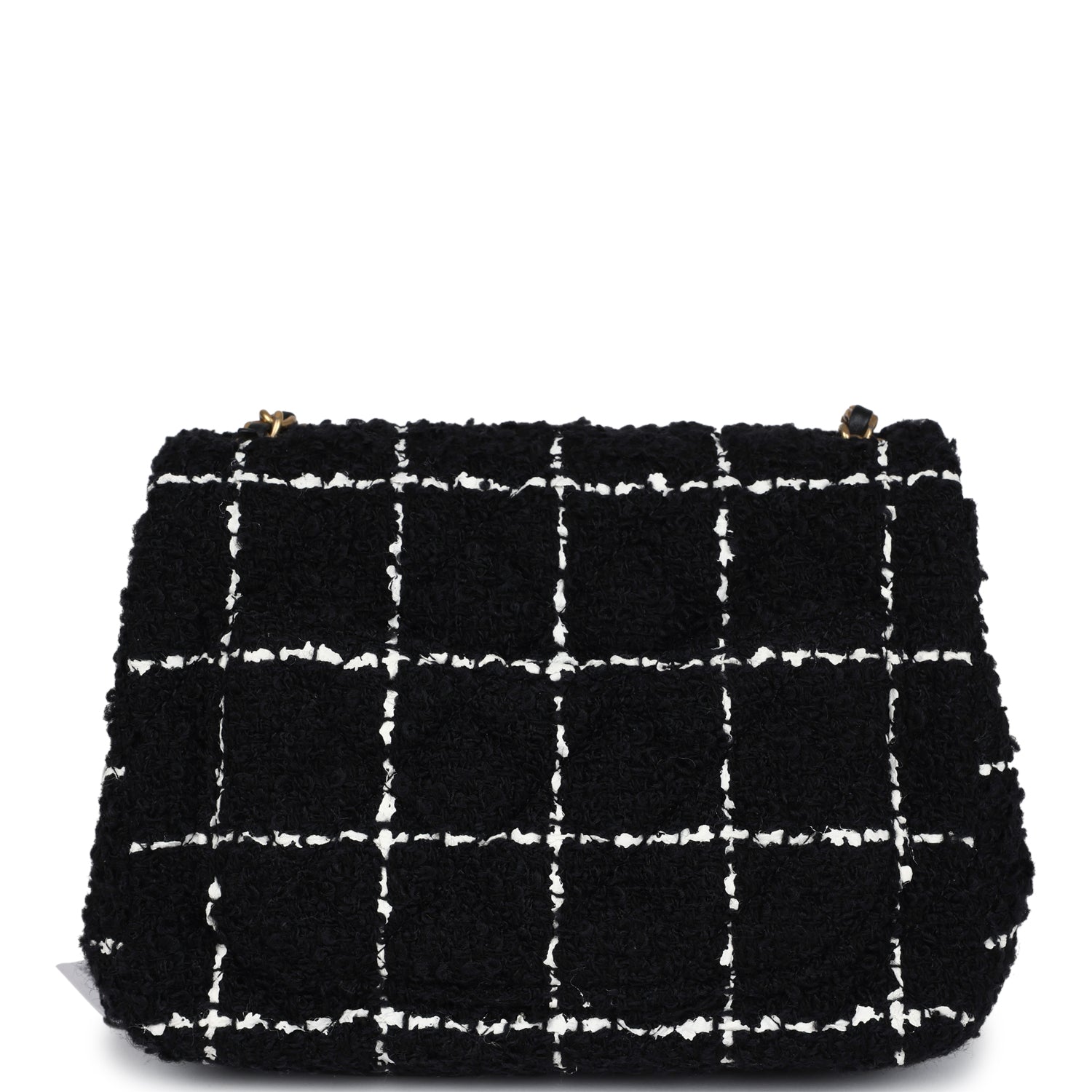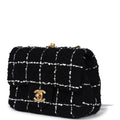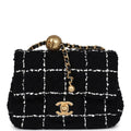 Chanel Mini Pearl Crush Square Flap Bag White and Black Tweed Antique Gold Hardware