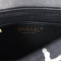 The interior is lined in black leather and features a zipper pocket with Chanel pull and an open pocket below.
