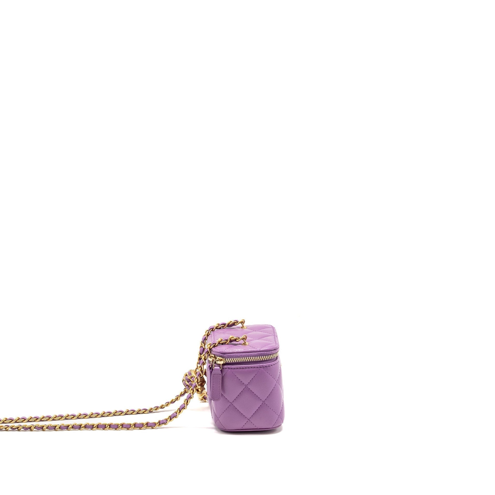 CHANEL Pearl Crush Mini Vanity With Chain Lambskin Purple GHW