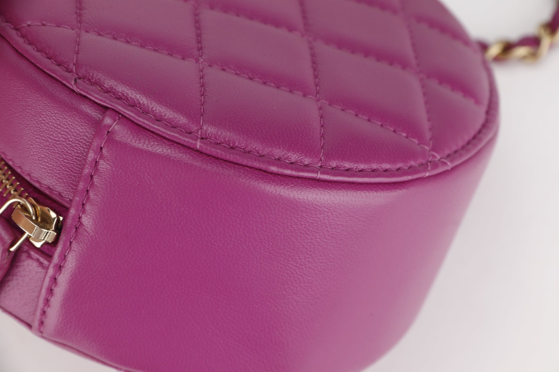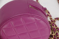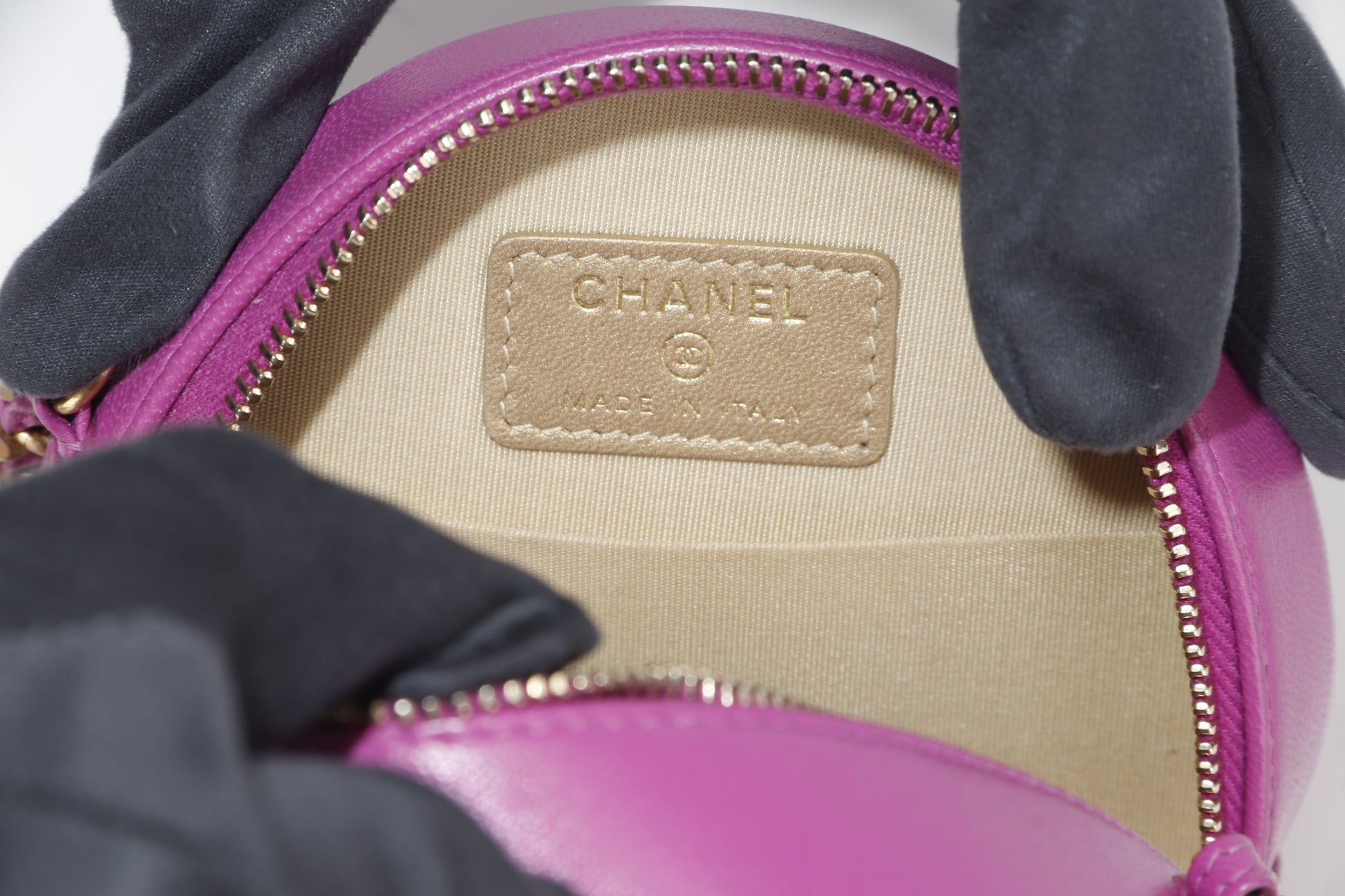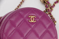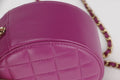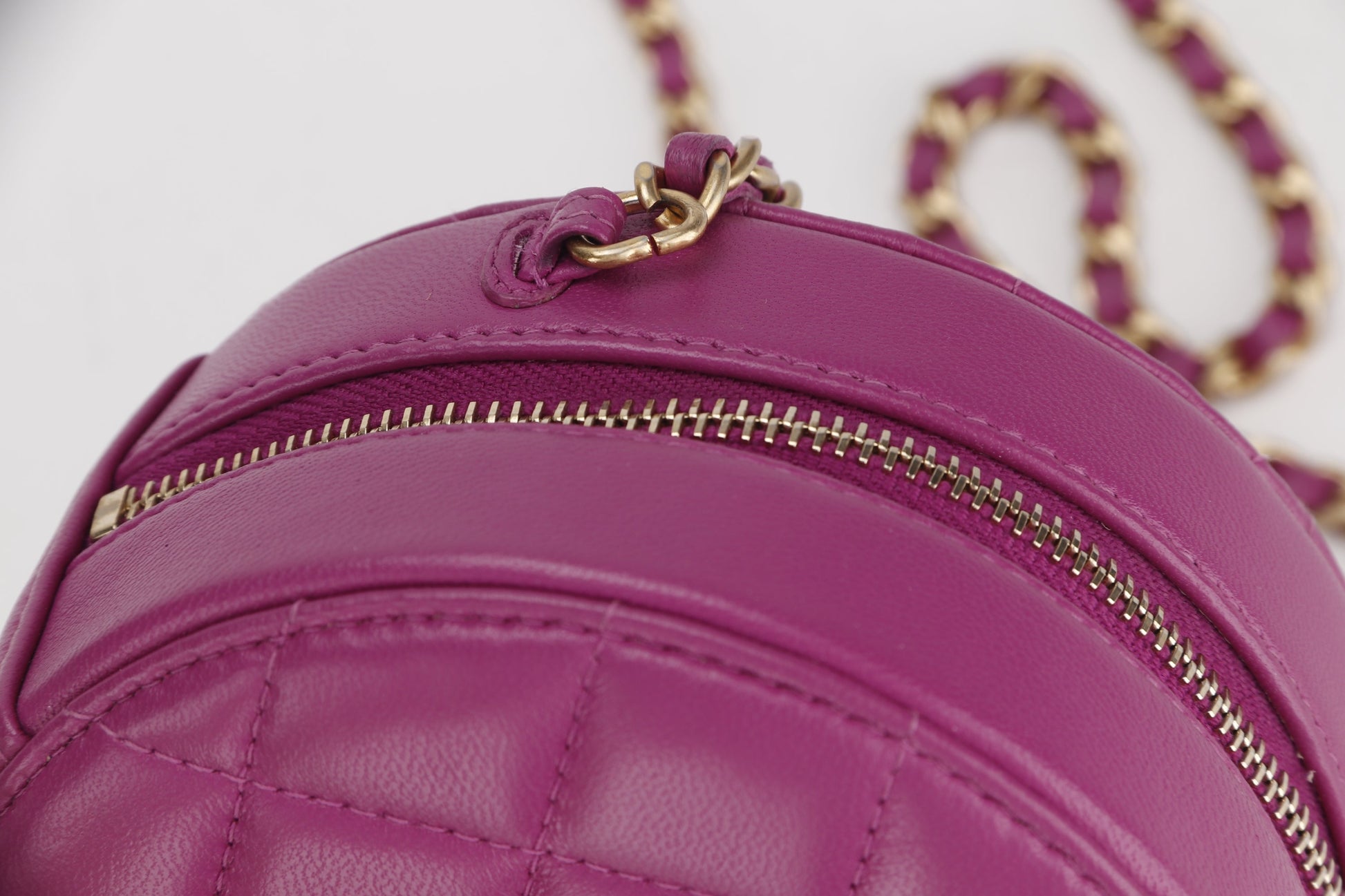 CHANEL PEARL CRUSH ROUND CLUTCH WITH CHAIN (3086xxxx) PURPLE LAMBSKIN GOLD HARDWARE, WITH , DUST COVER & BOX