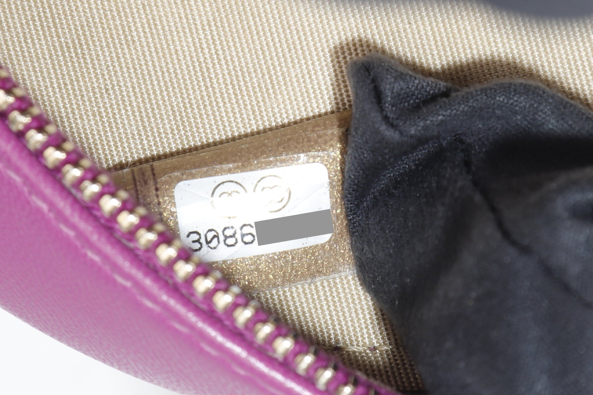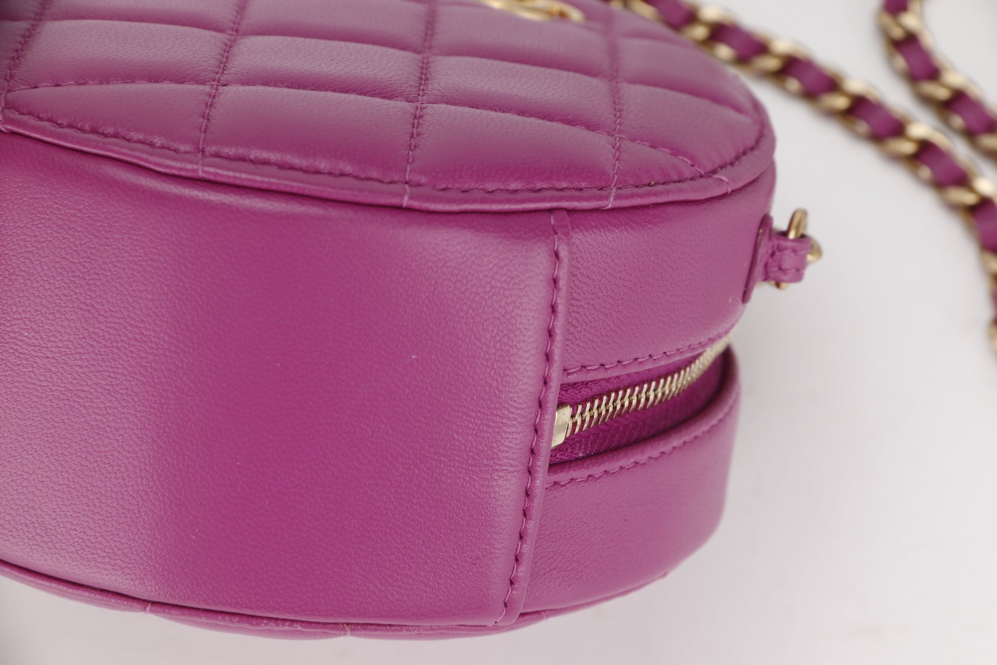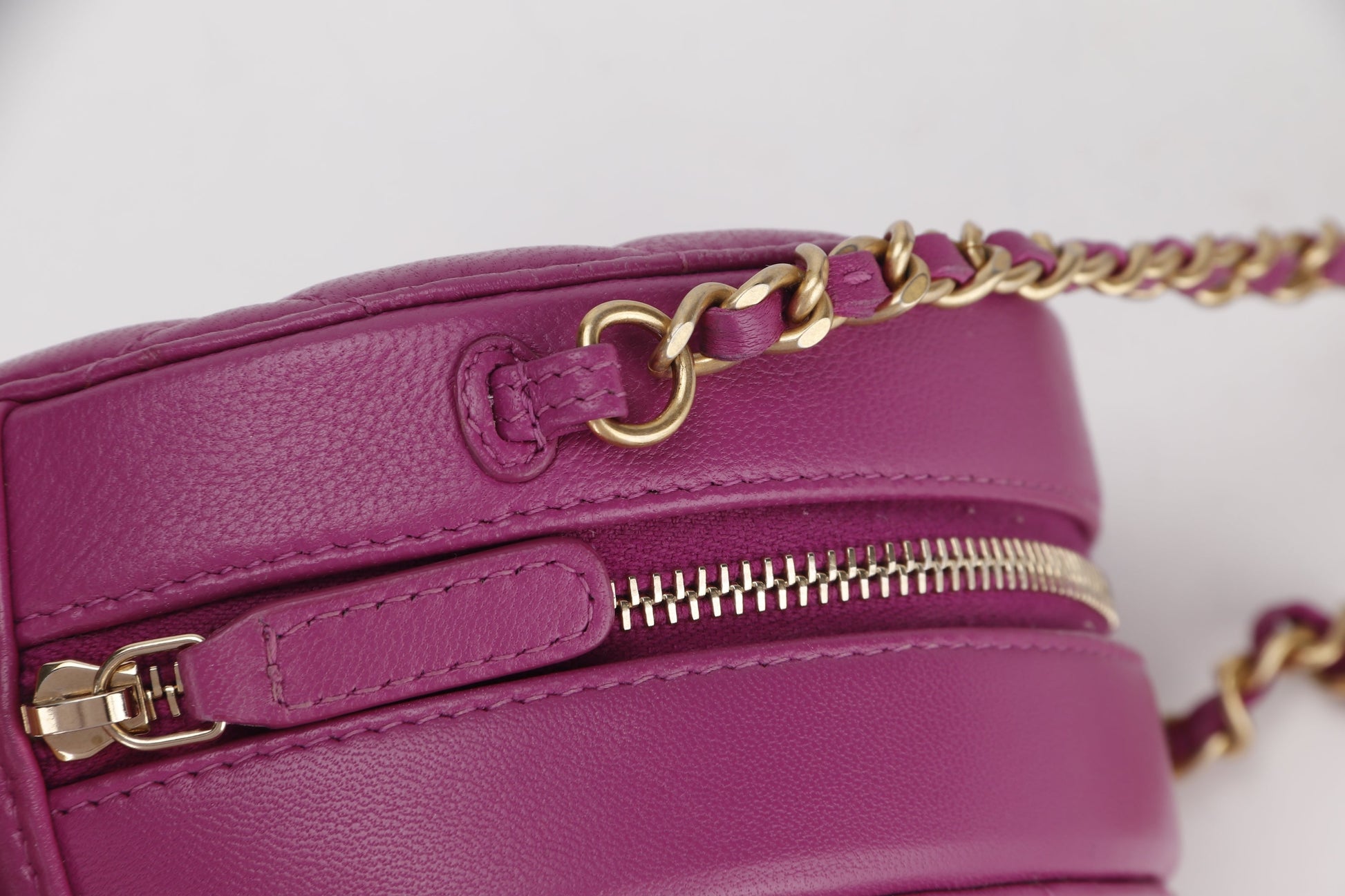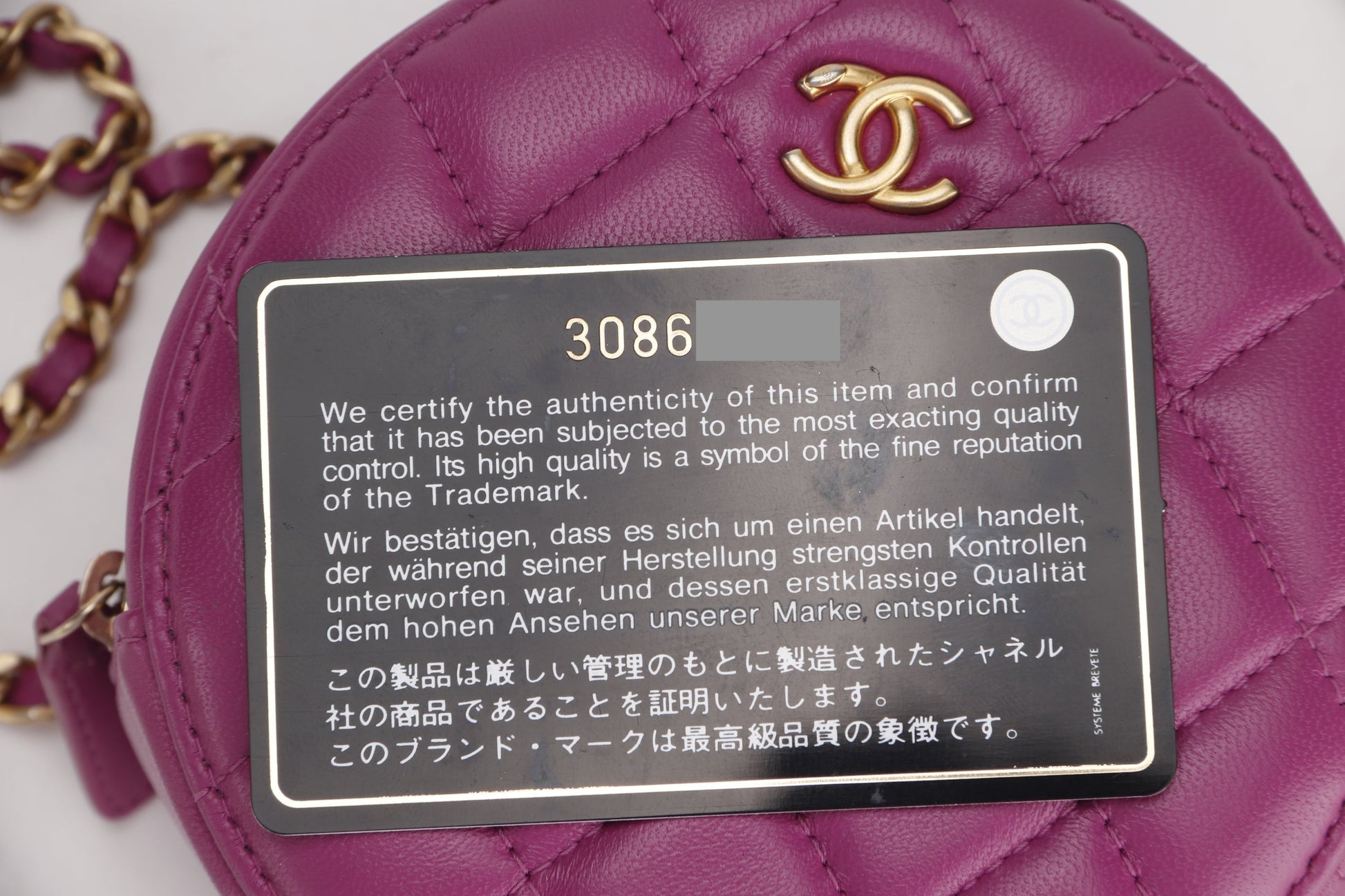 CHANEL PEARL CRUSH ROUND CLUTCH WITH CHAIN (3086xxxx) PURPLE LAMBSKIN GOLD HARDWARE, WITH , DUST COVER & BOX