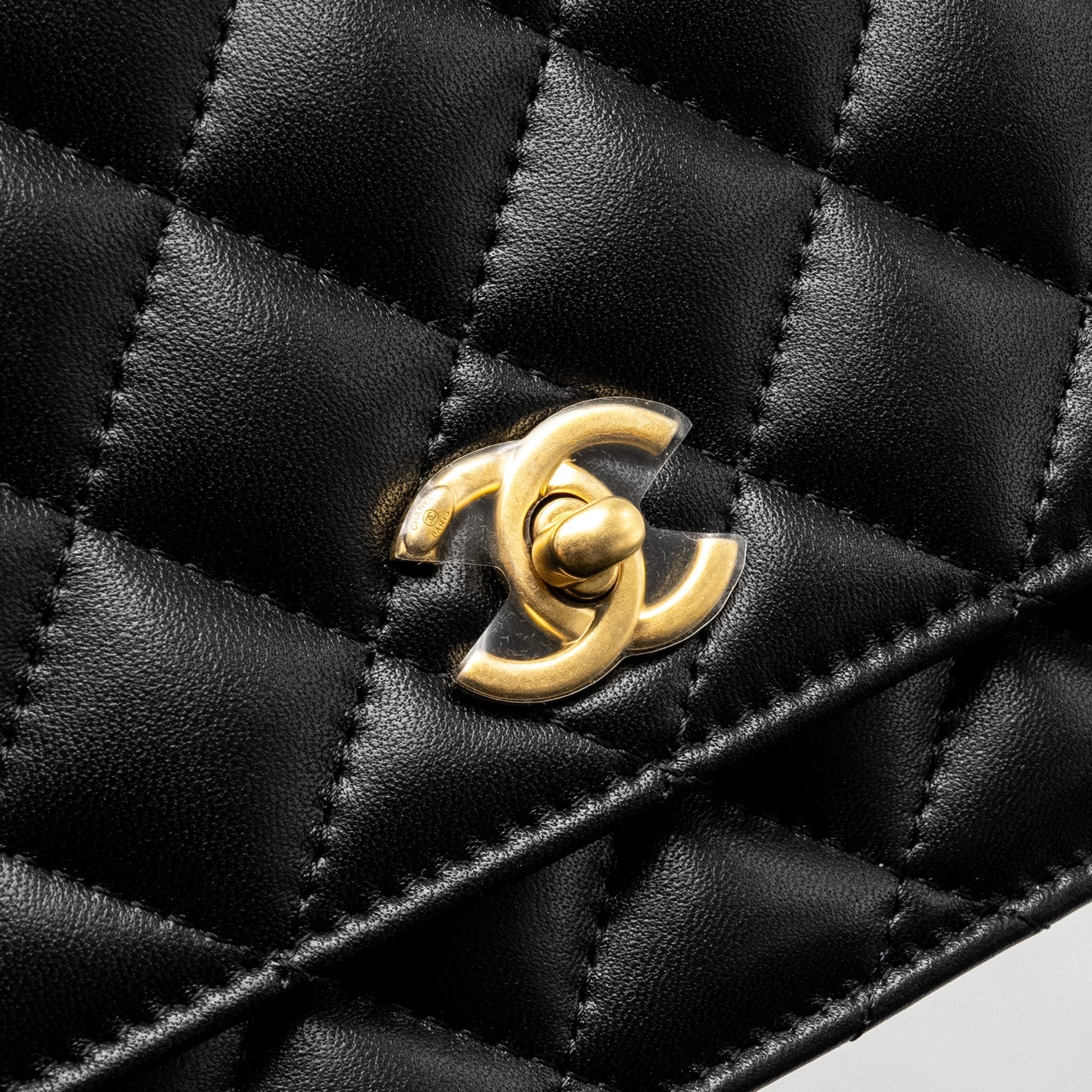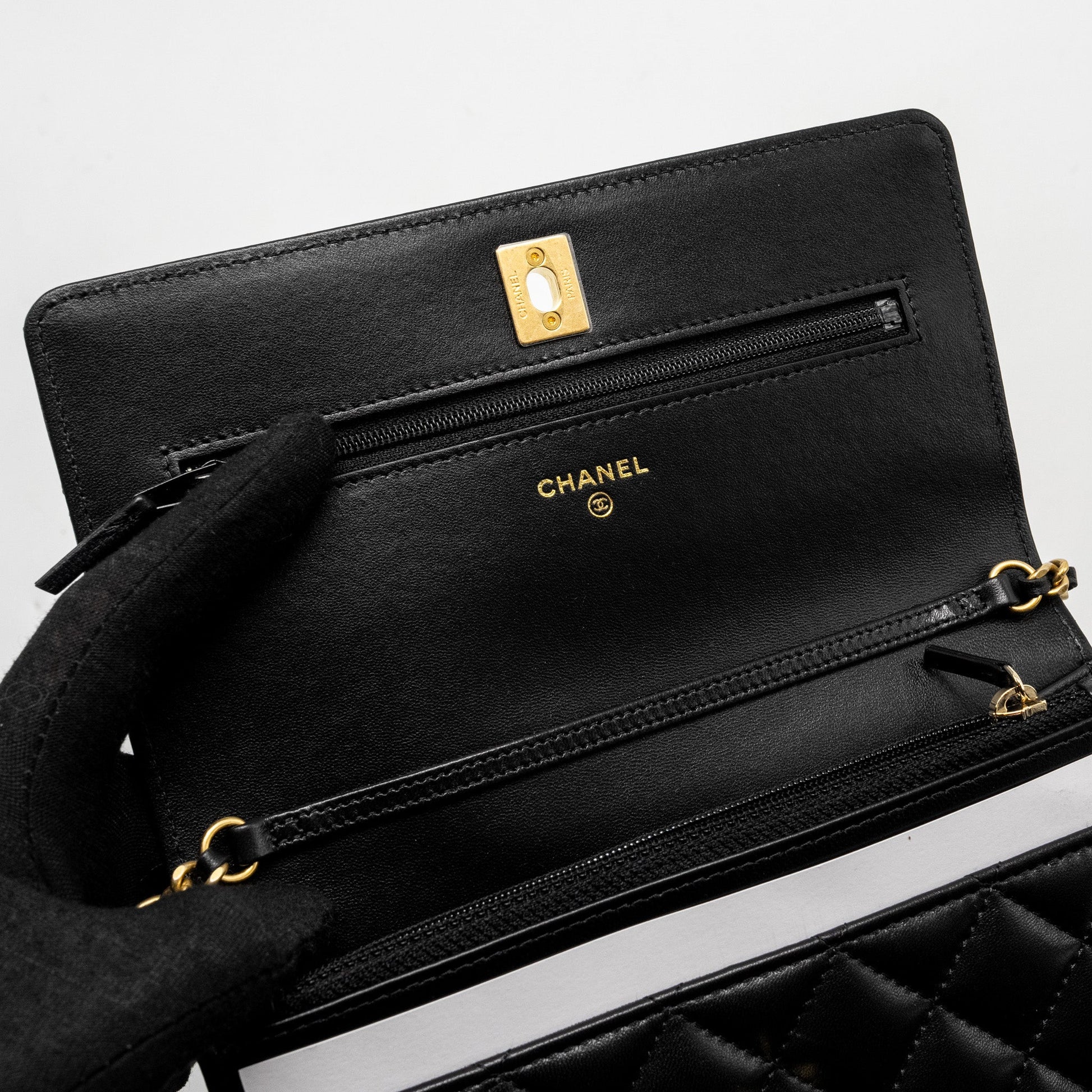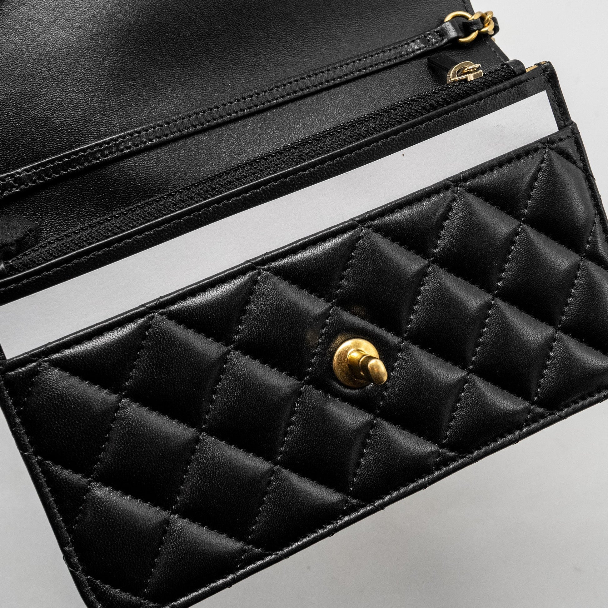 Chanel Pearl Crush Wallet on Chain Lambskin Black GHW (Microchip)