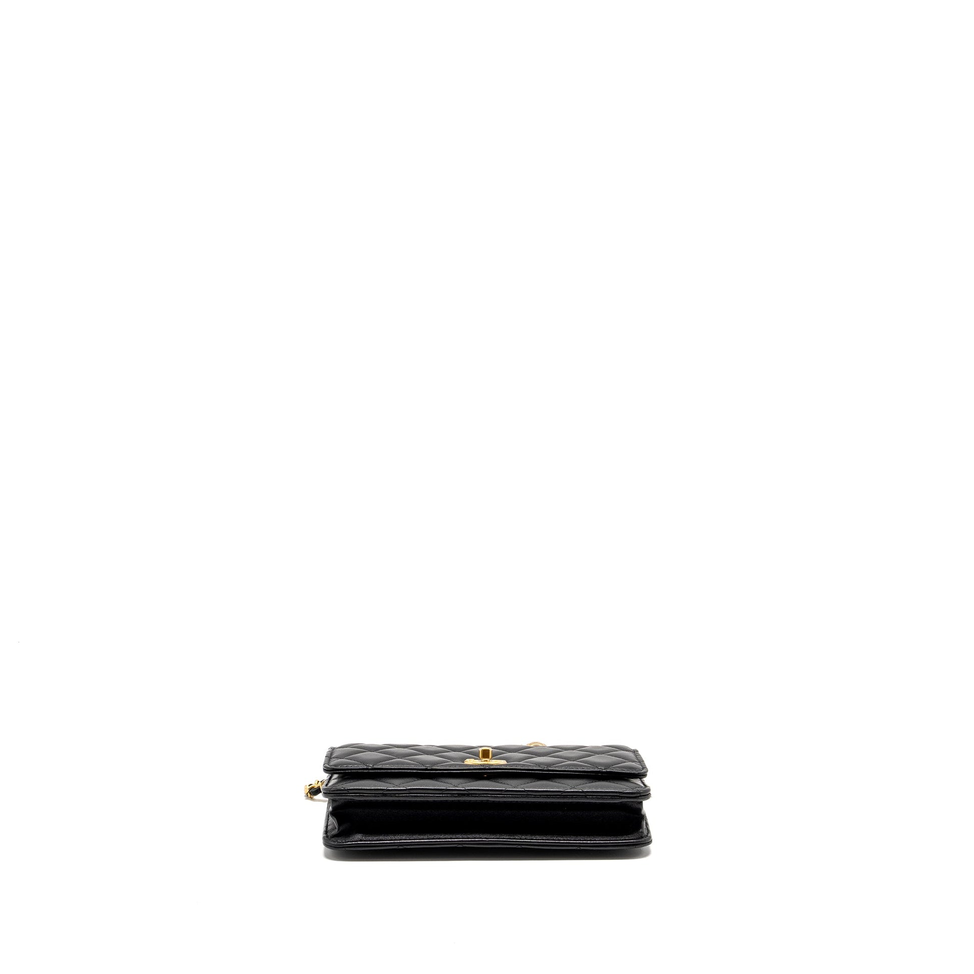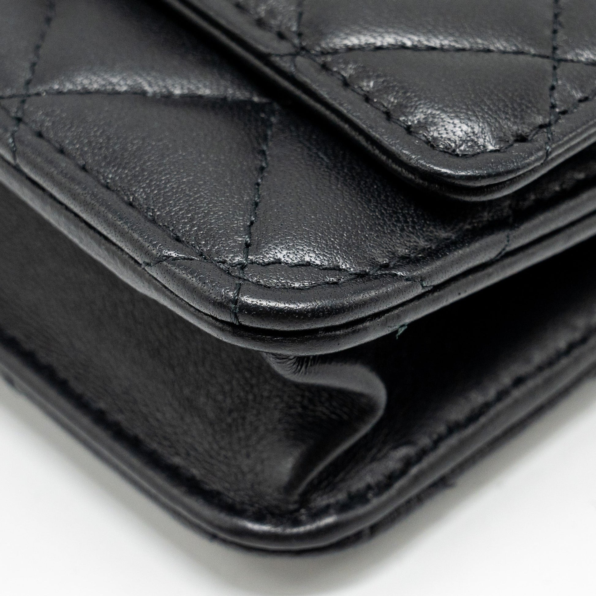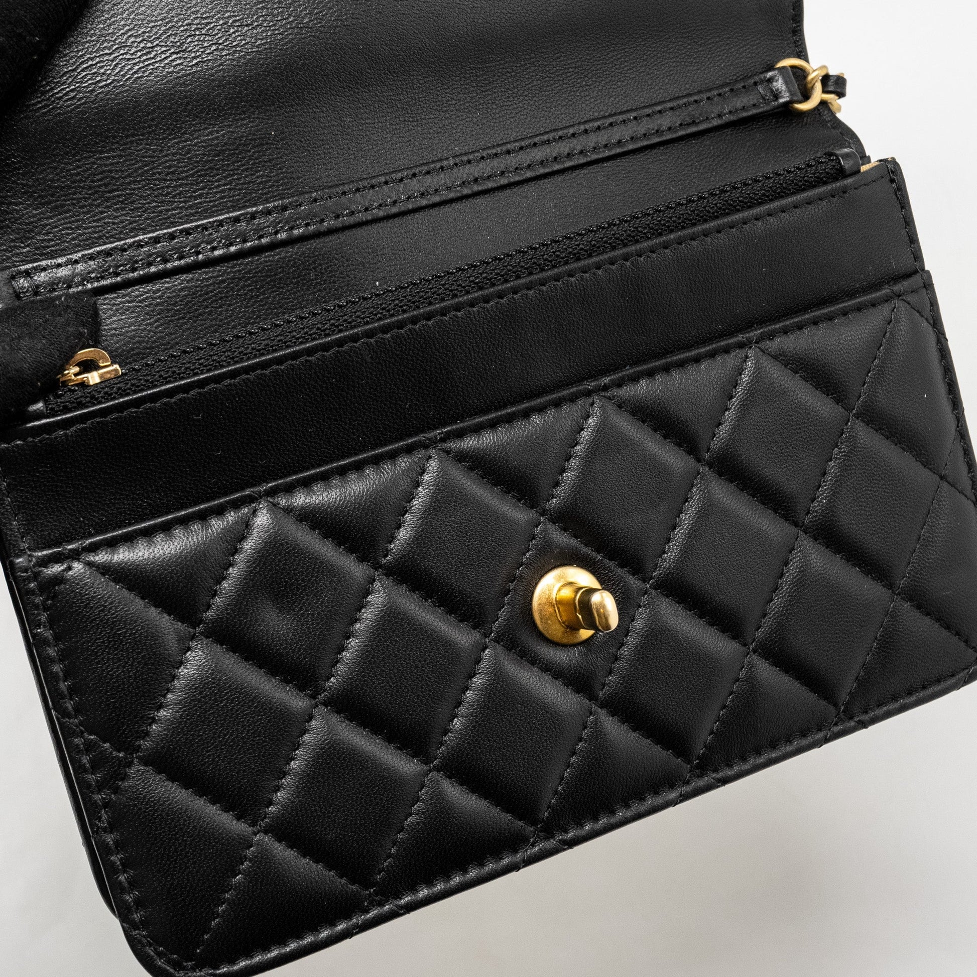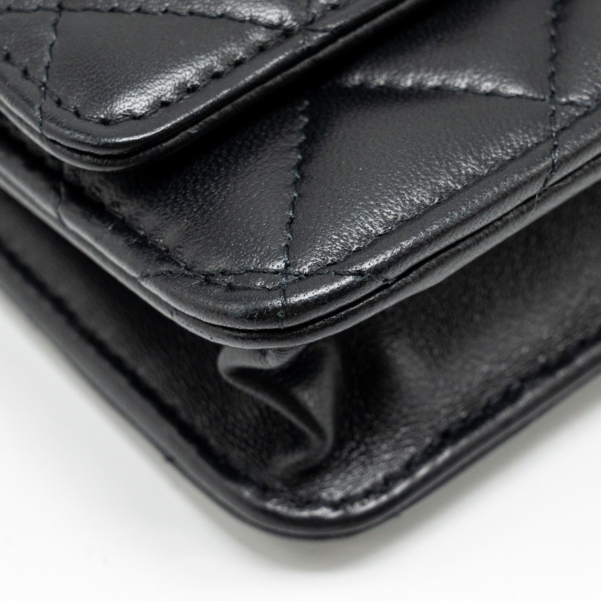 CHANEL Pearl Crush Wallet on Chain Lambskin Black GHW (Microchip)