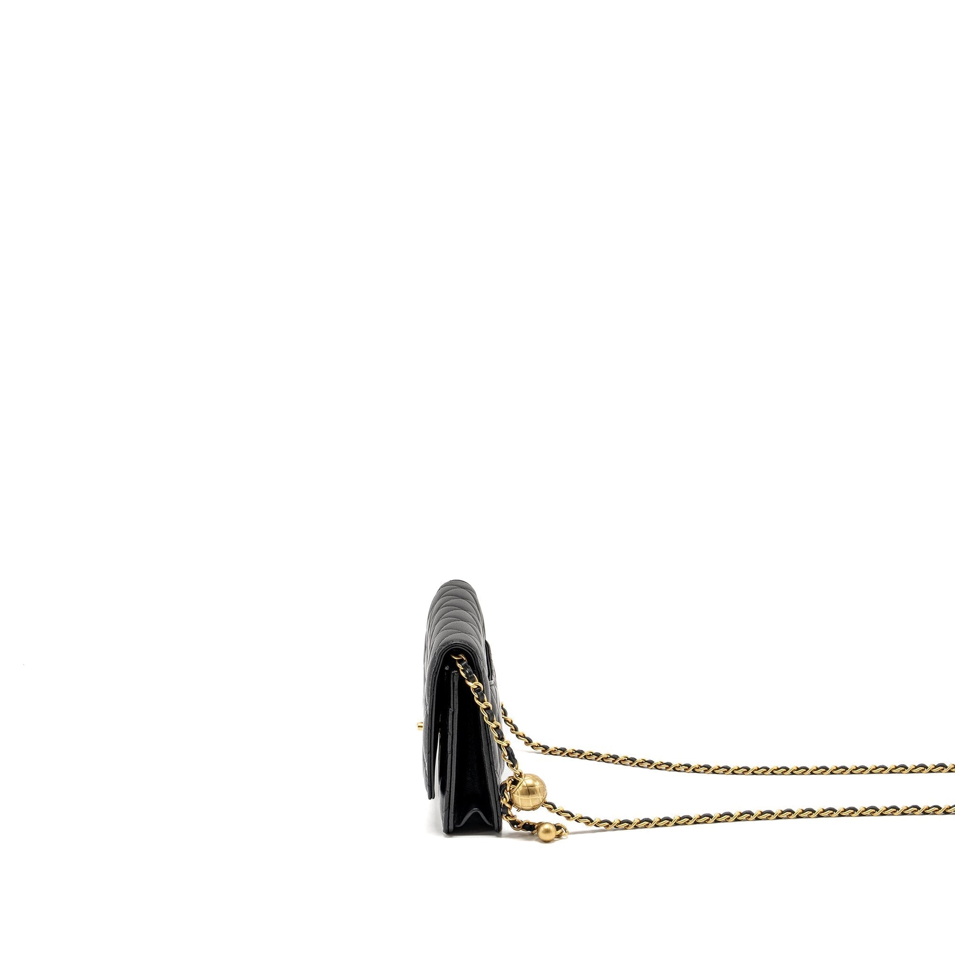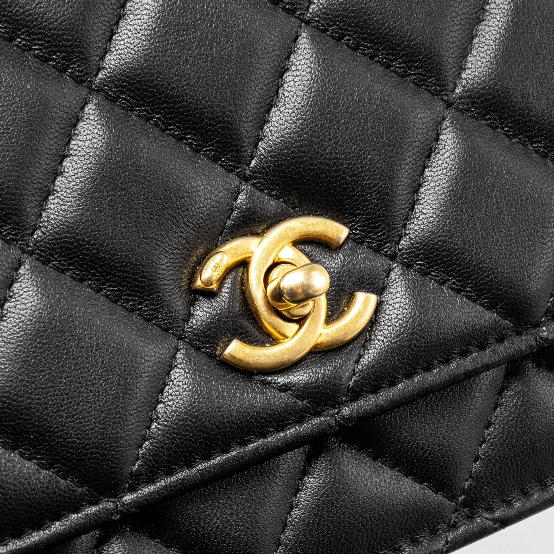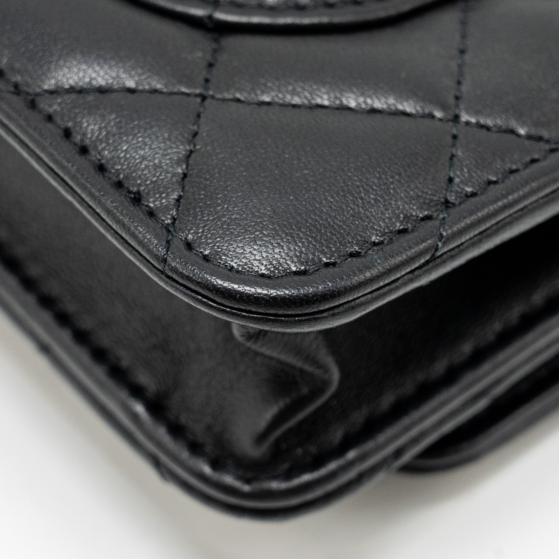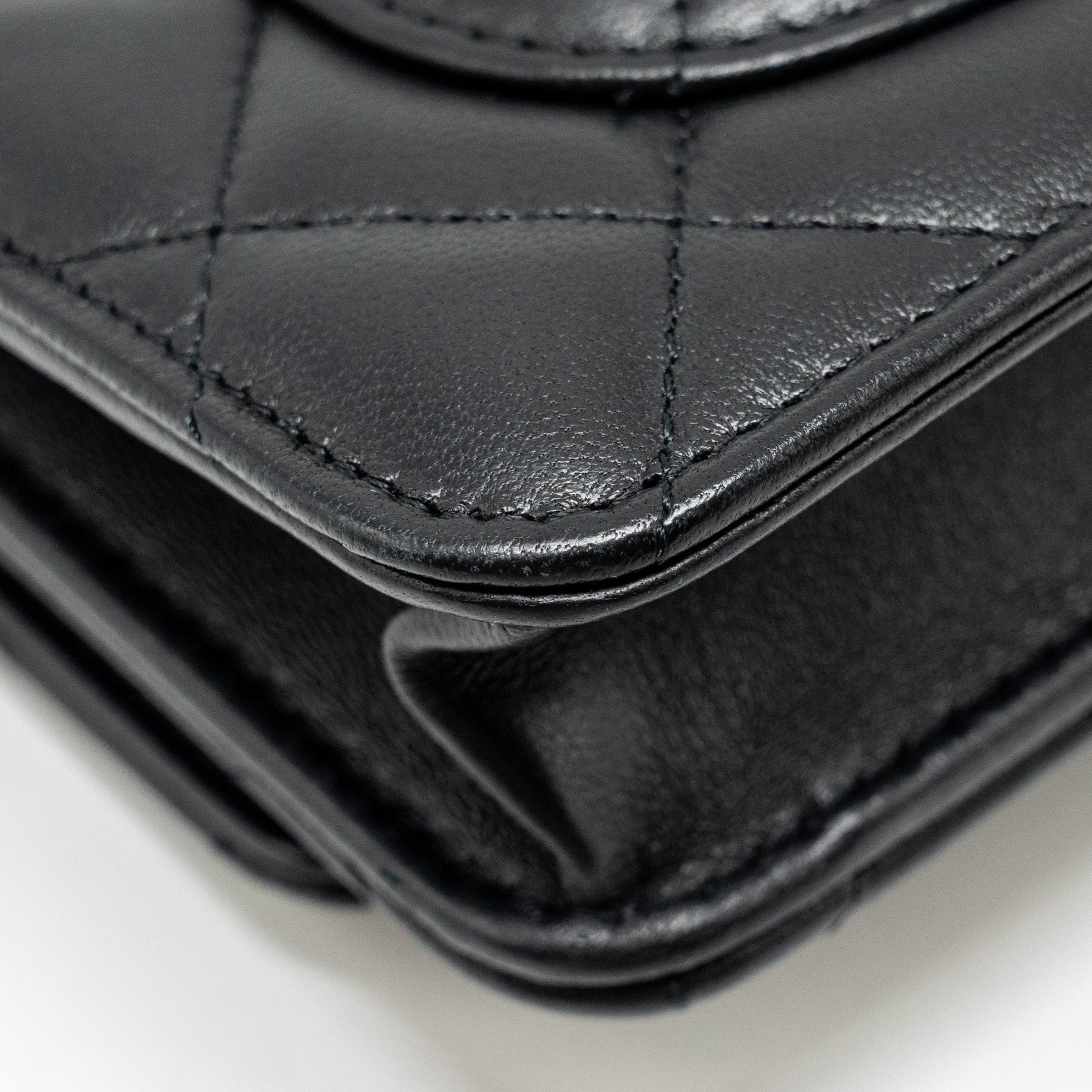 CHANEL Pearl Crush Wallet on Chain Lambskin Black GHW (Microchip)