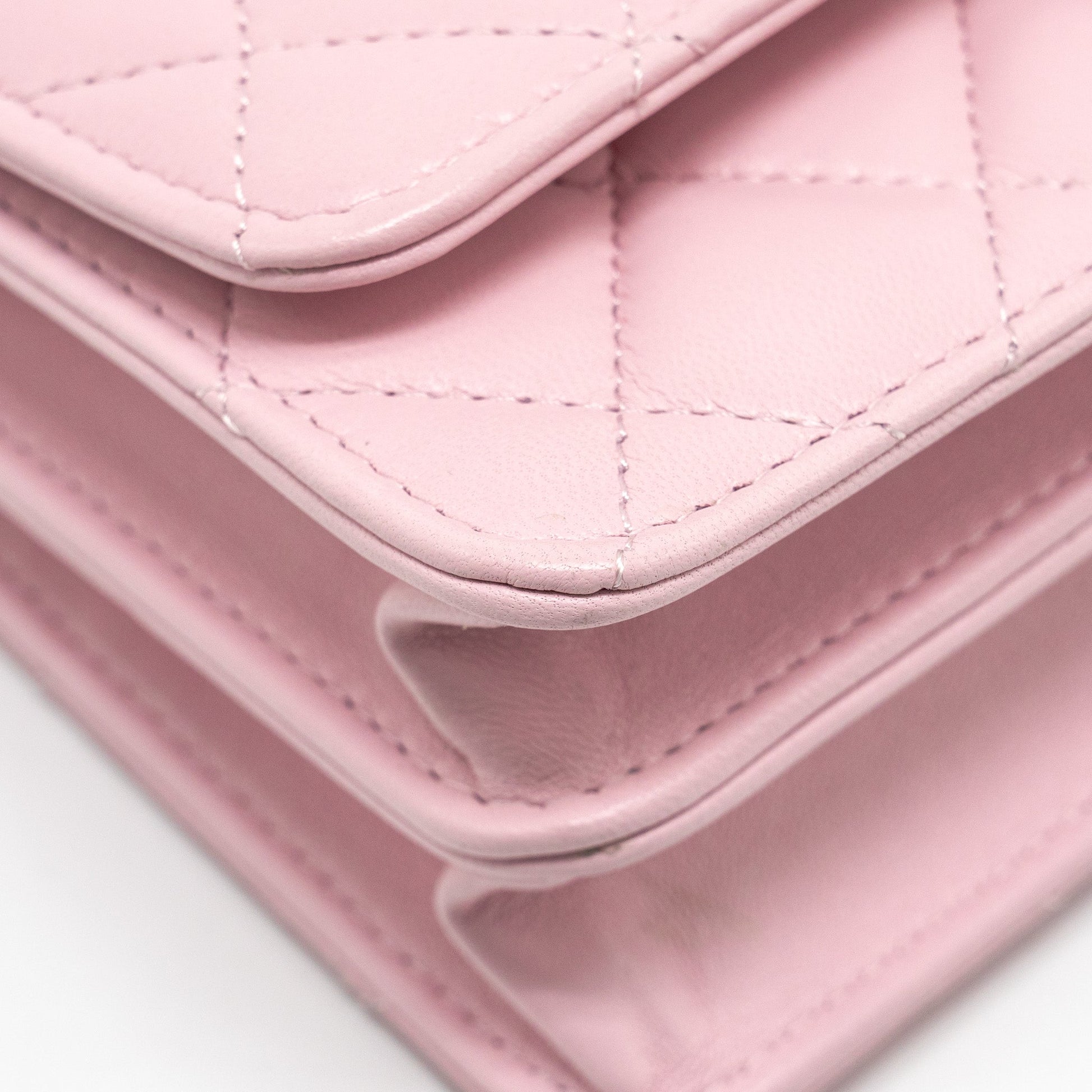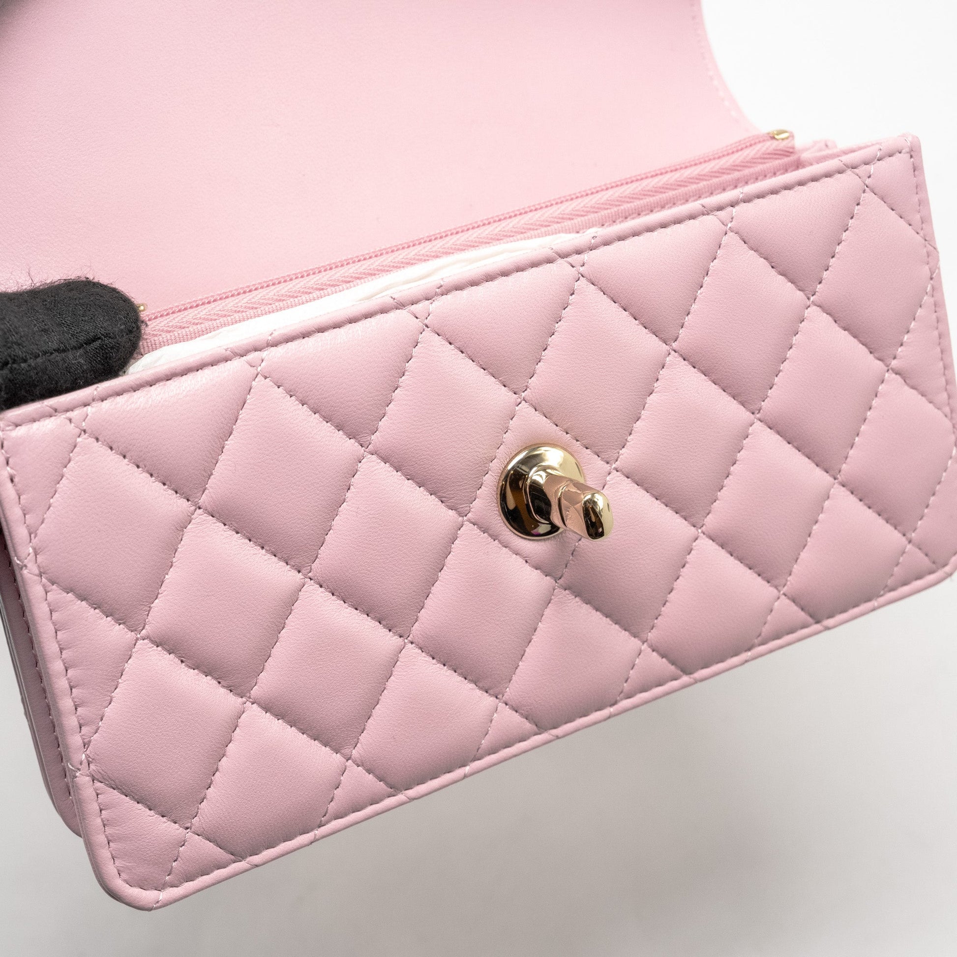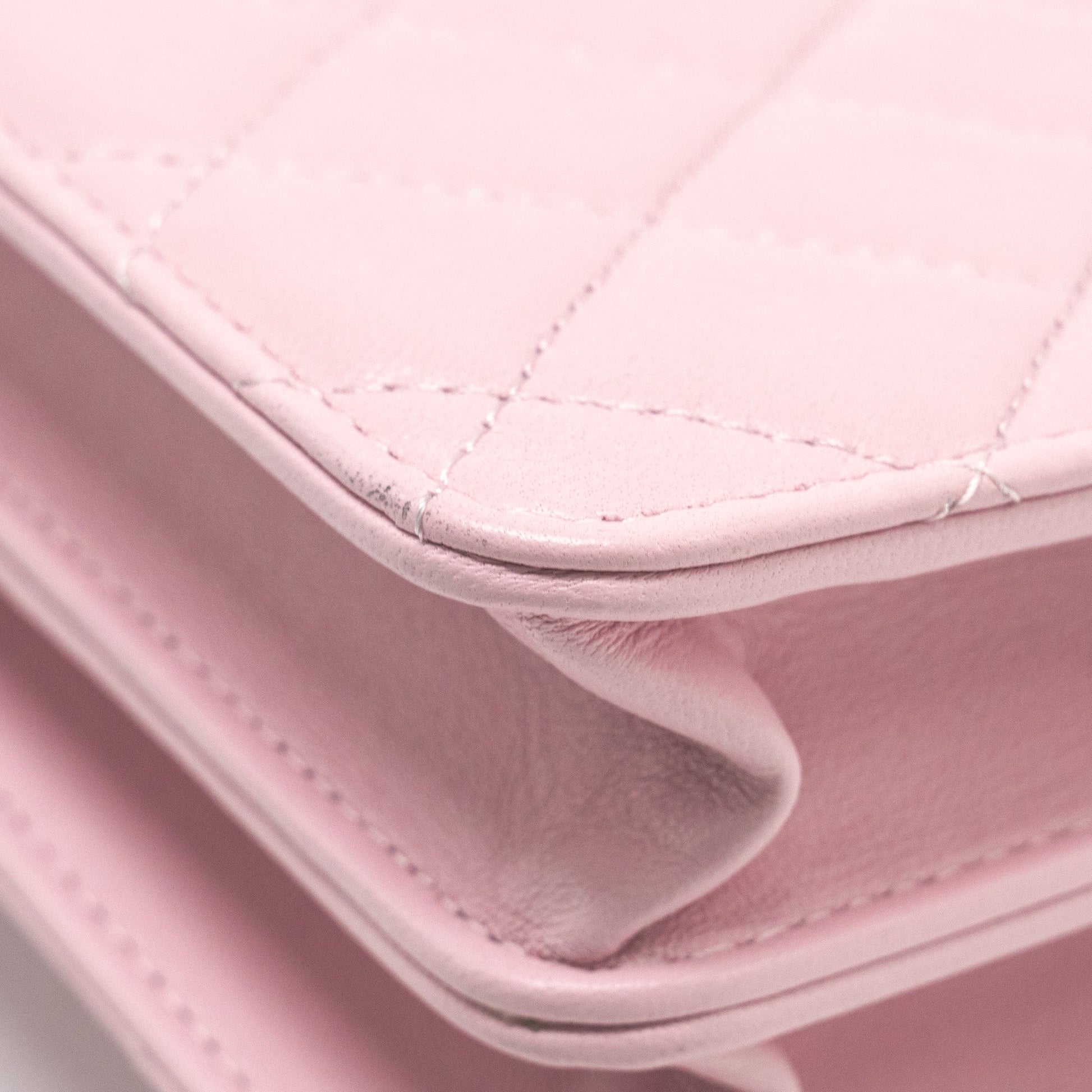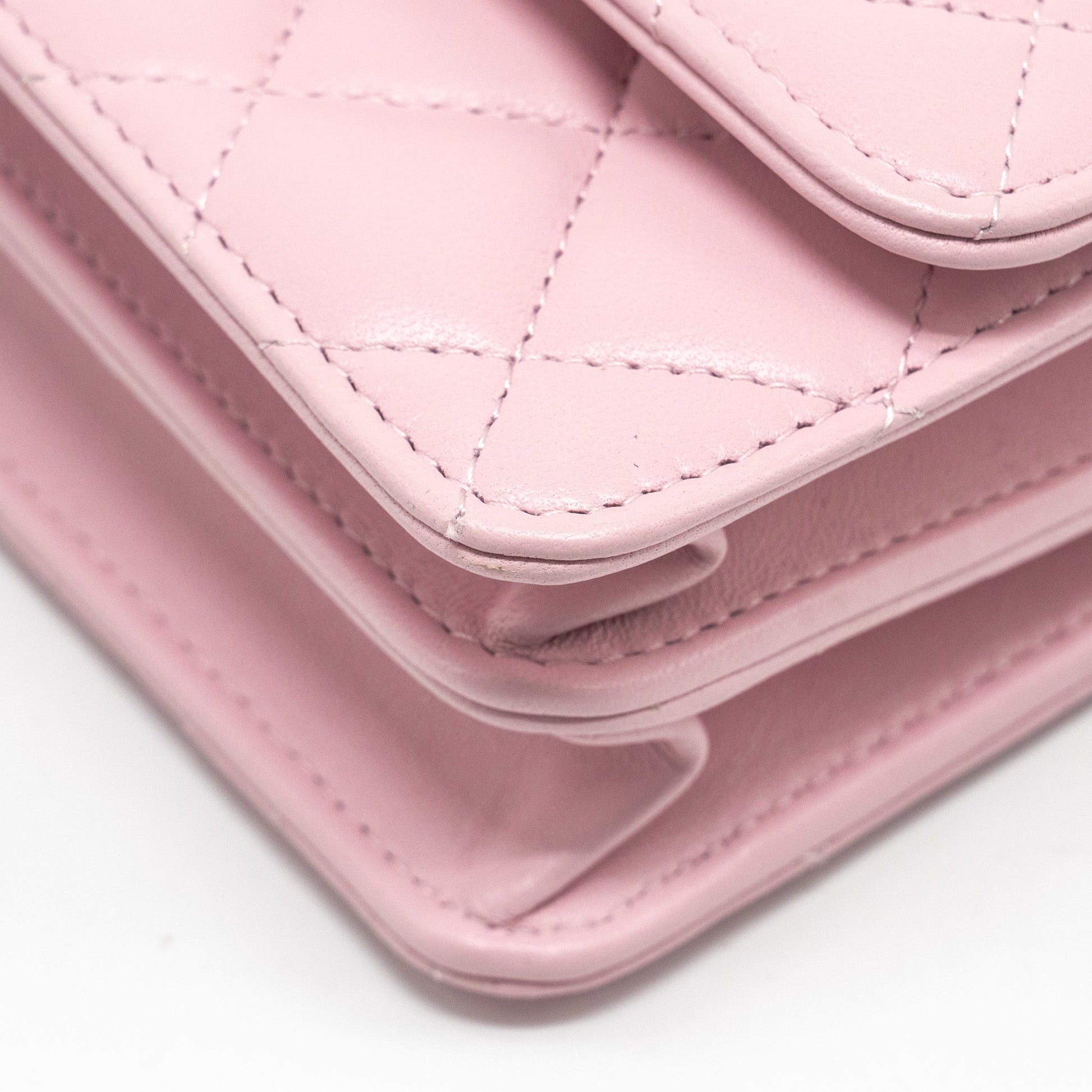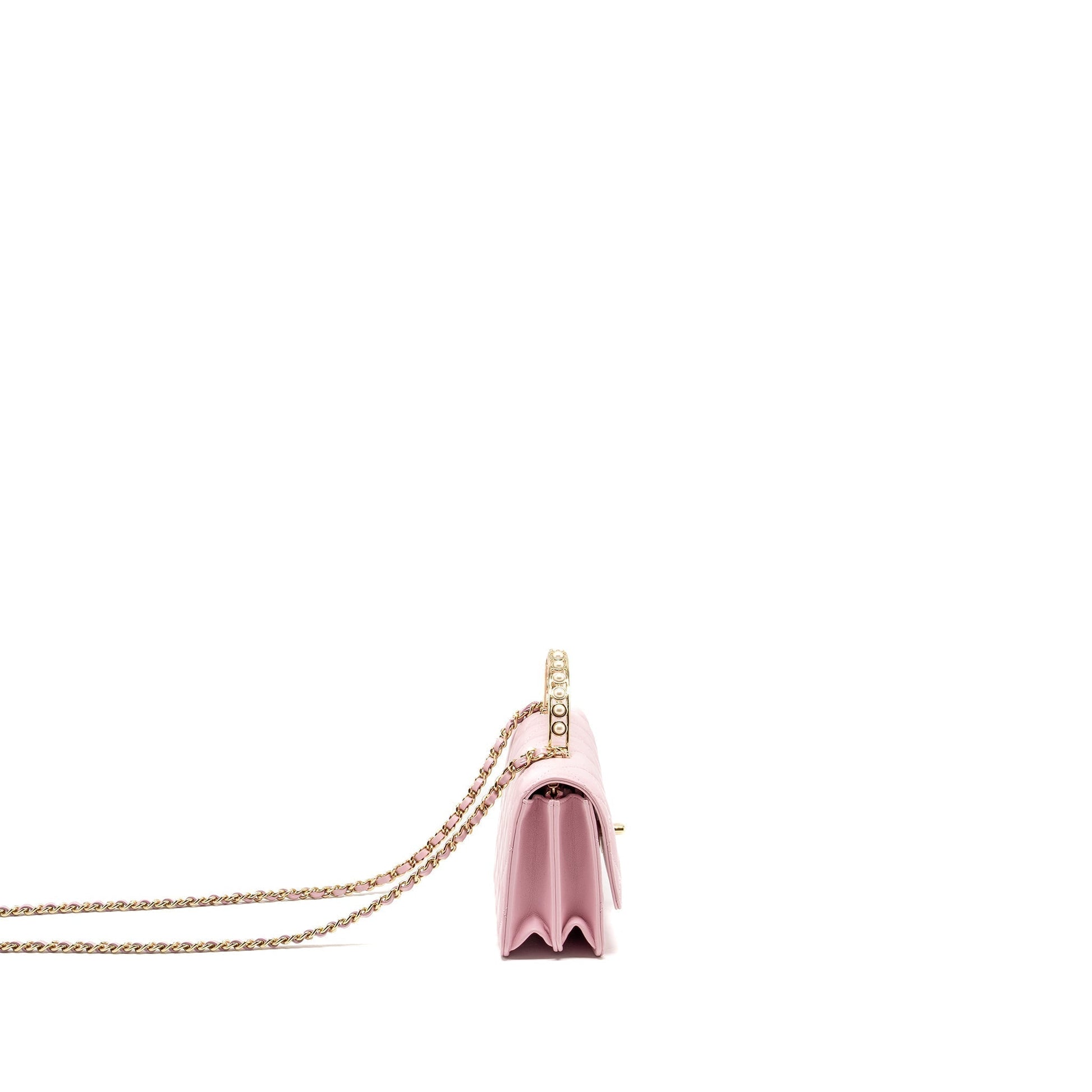 Chanel Pearl Detailed Top Handel Wallet On Chain Lambskin Pink LGHW (Microchip)