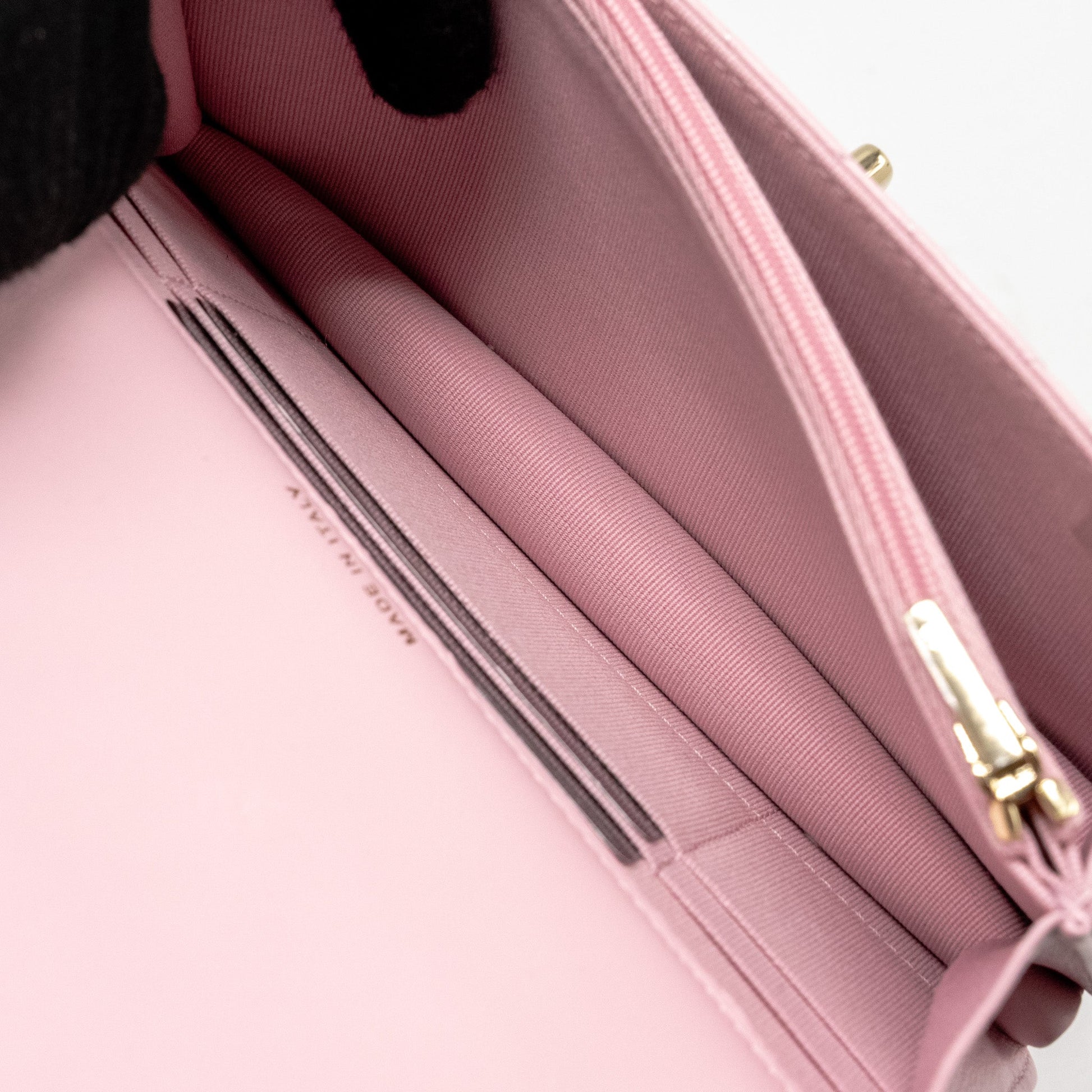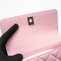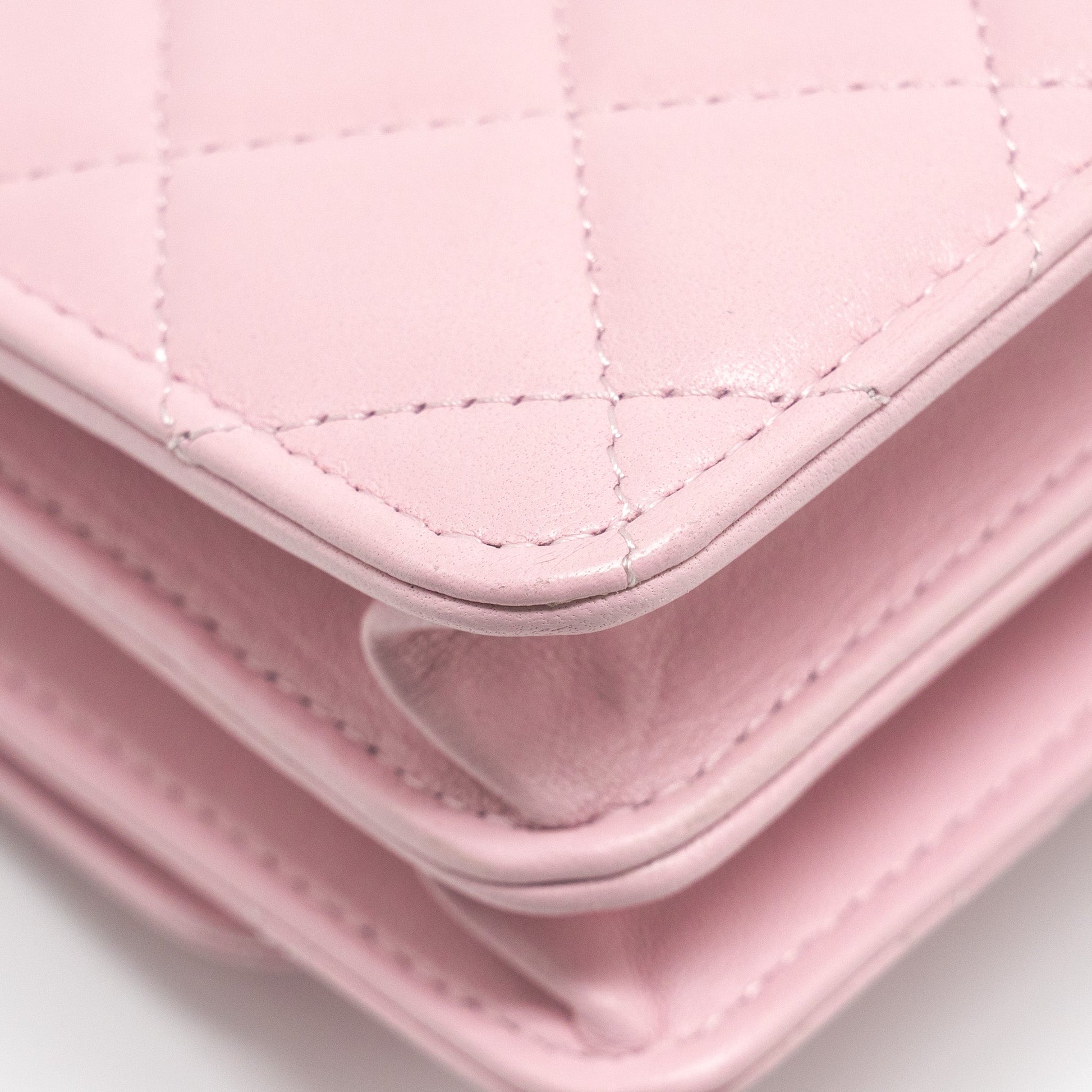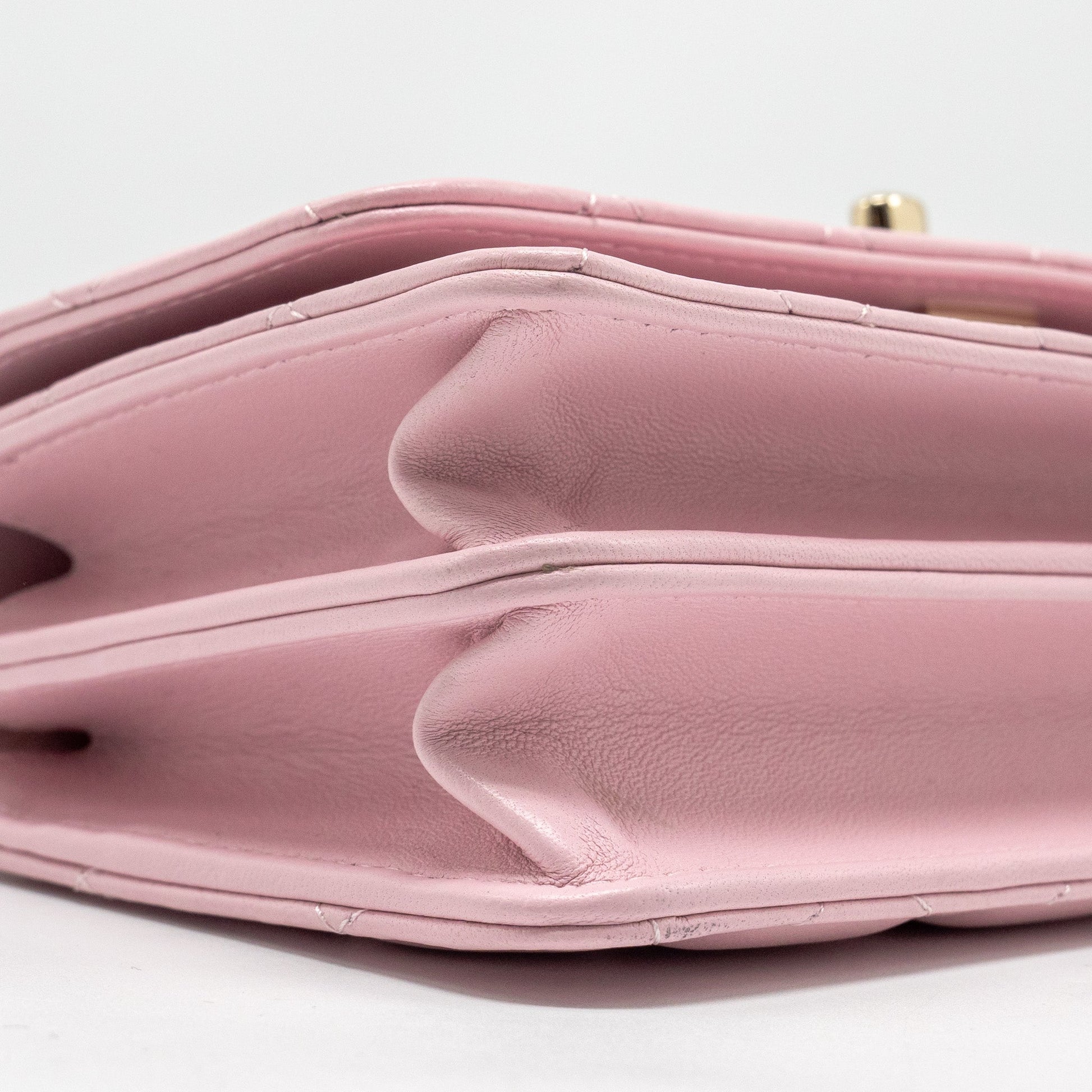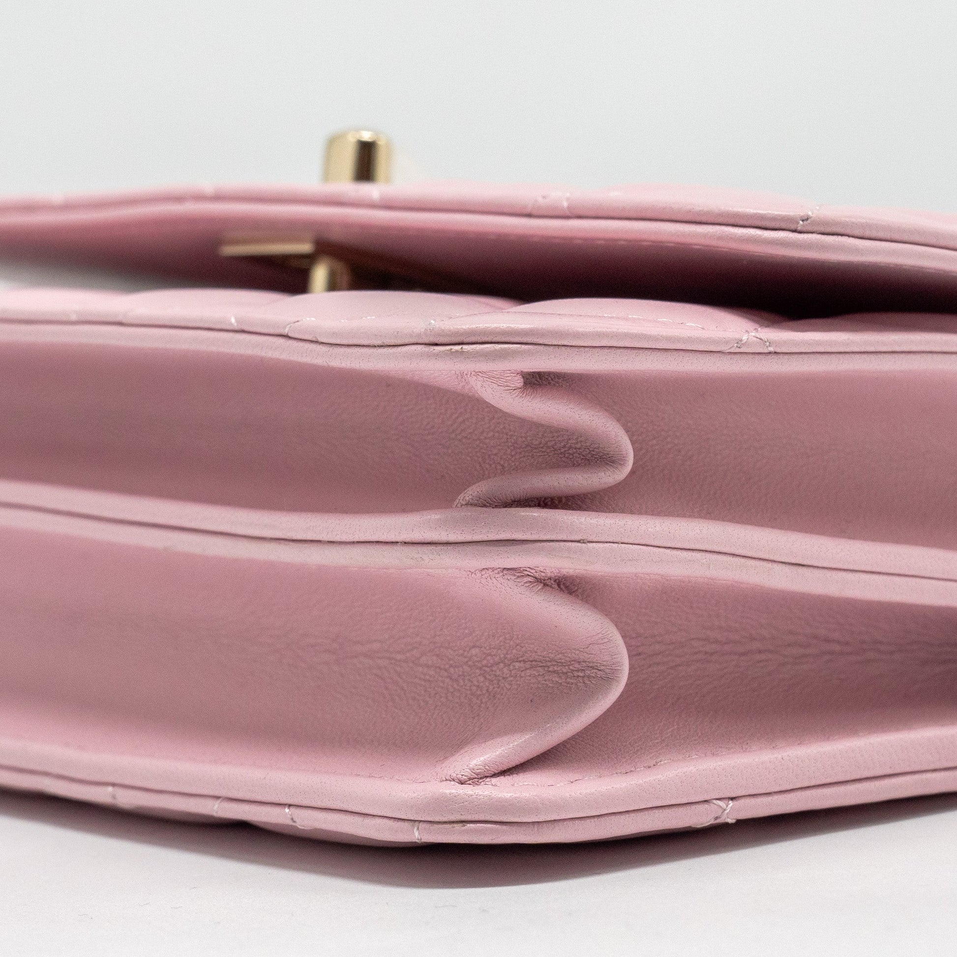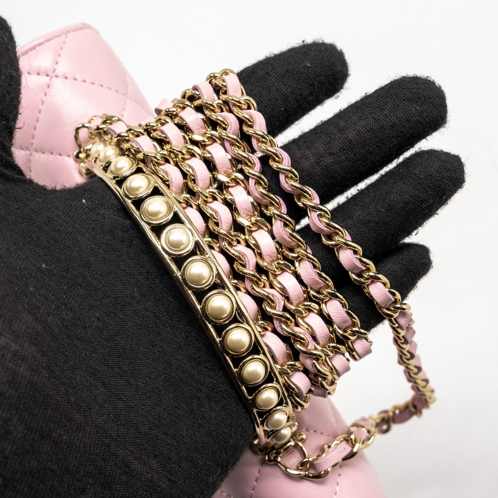 Chanel Pearl Detailed Top Handel Wallet On Chain Lambskin Pink LGHW (Microchip)