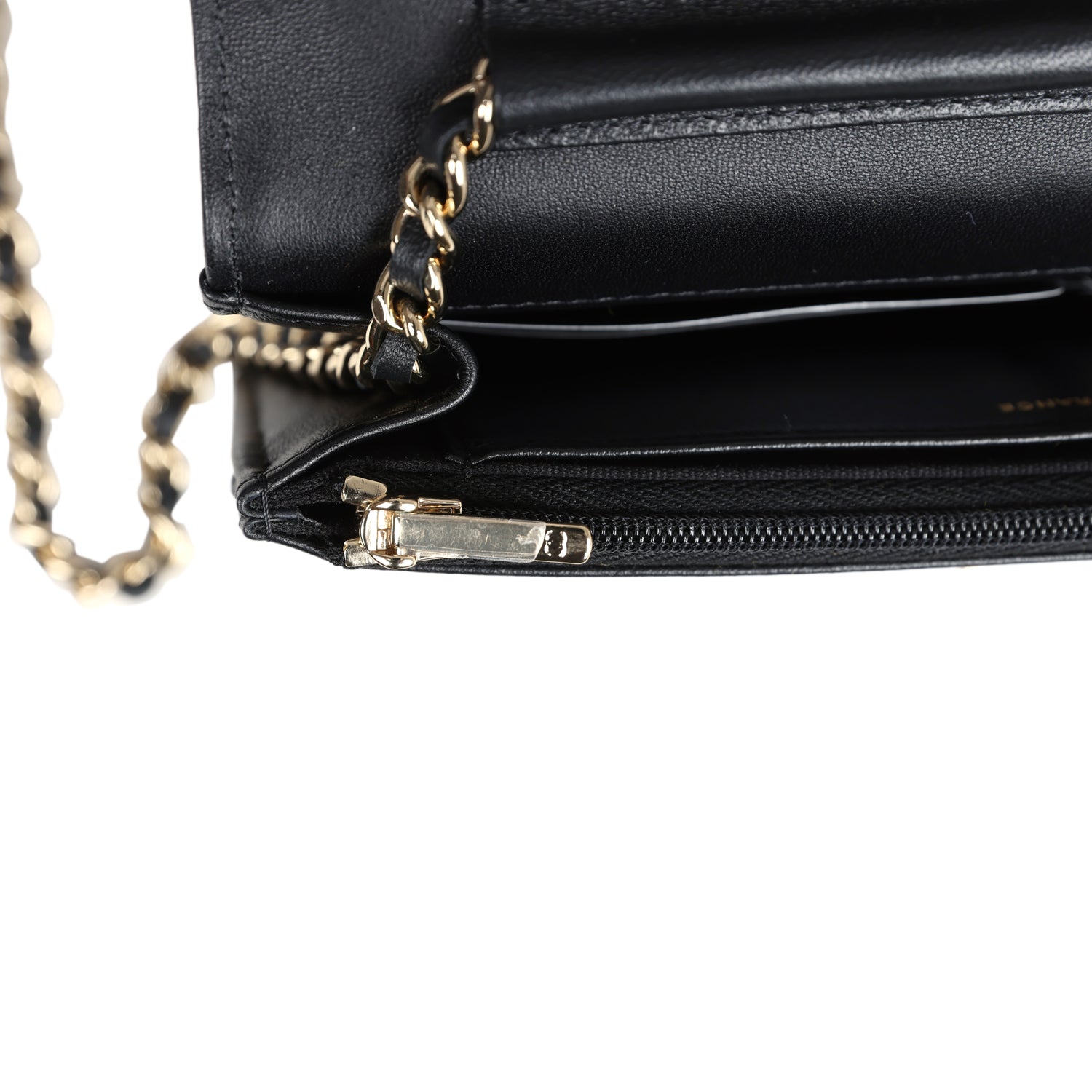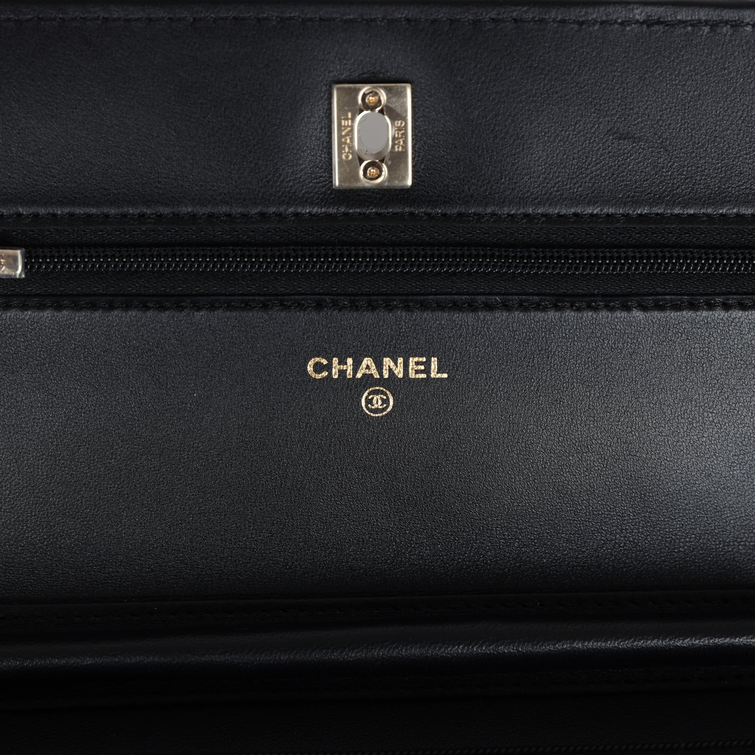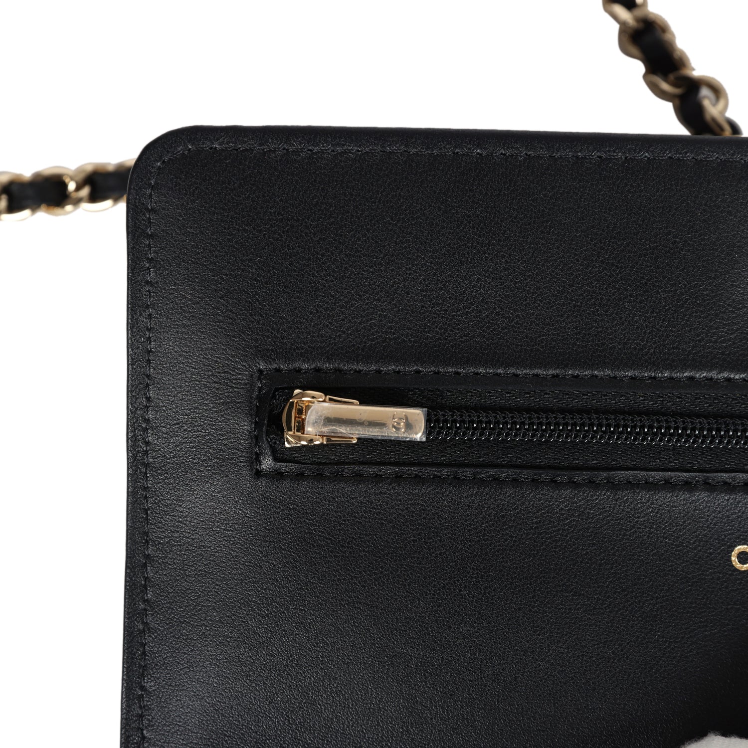 Chanel Pearl Studded Wallet On Chain (WOC) Black Lambskin Light Gold Hardware
