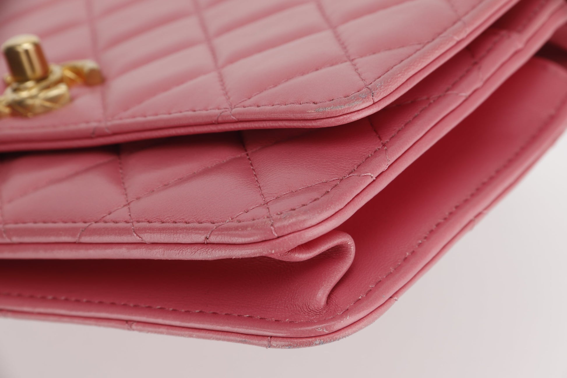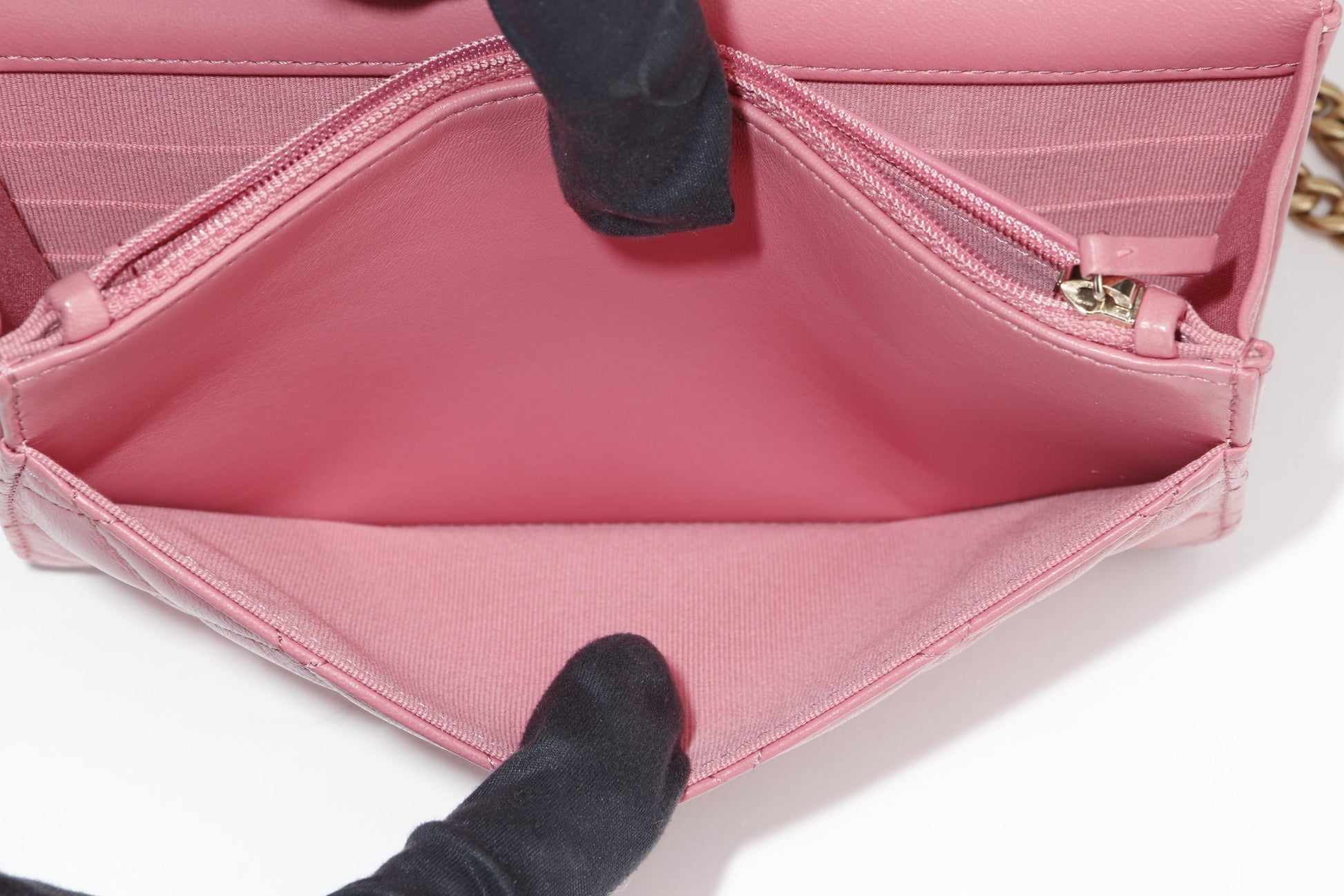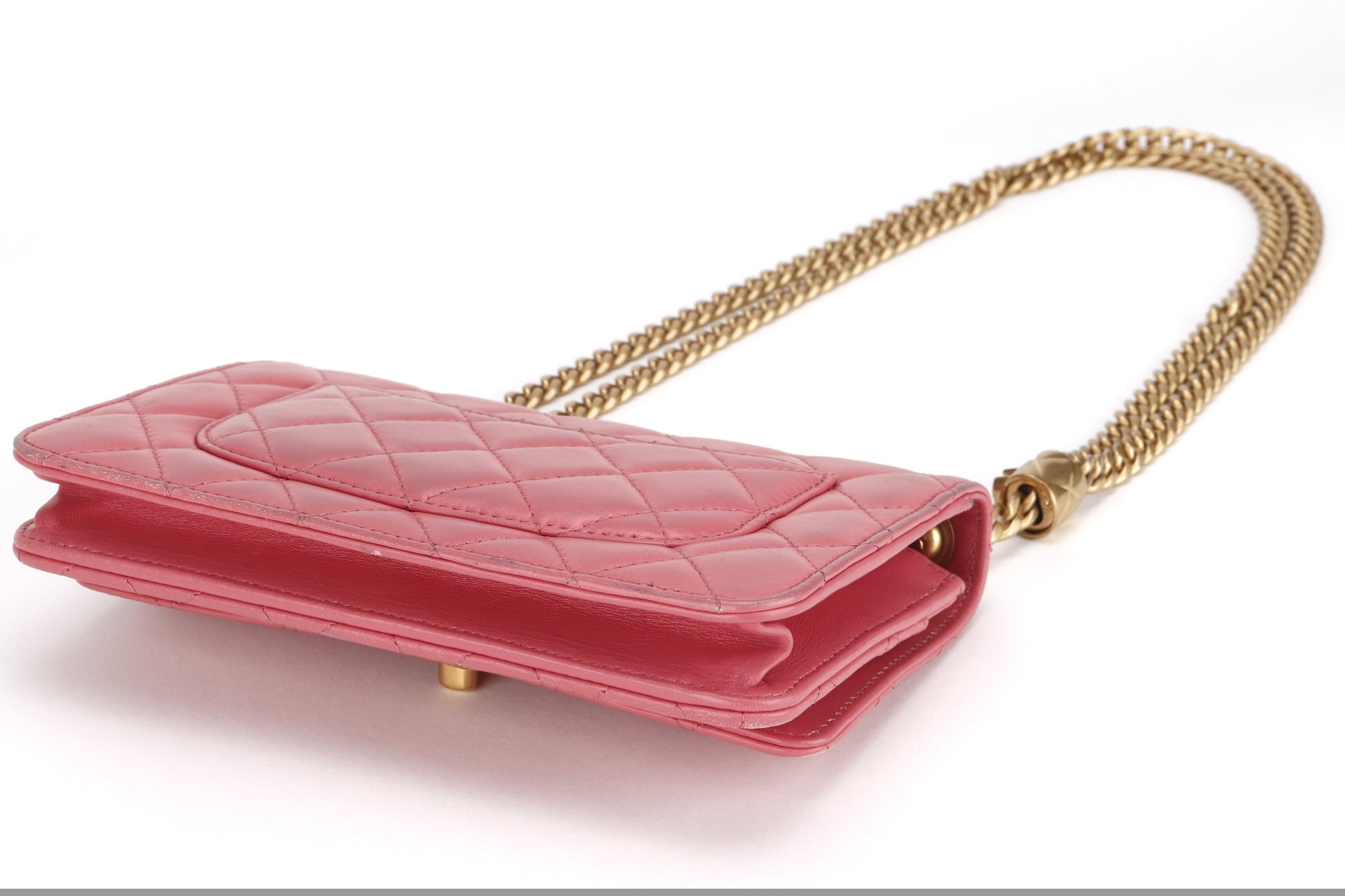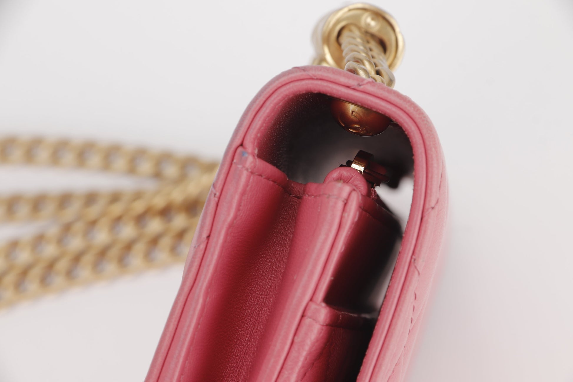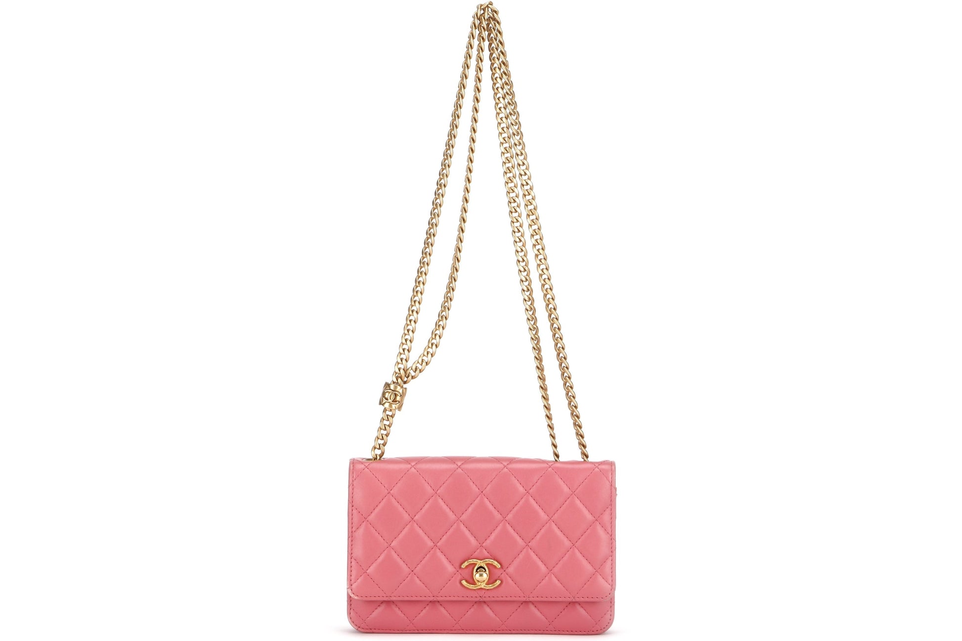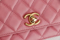 CHANEL PILLOW CRUSH WALLET ON CHAIN (A7U5xxxx) PINK LAMBSKIN GOLD HARDWARE, WITH DUST COVER BOX
