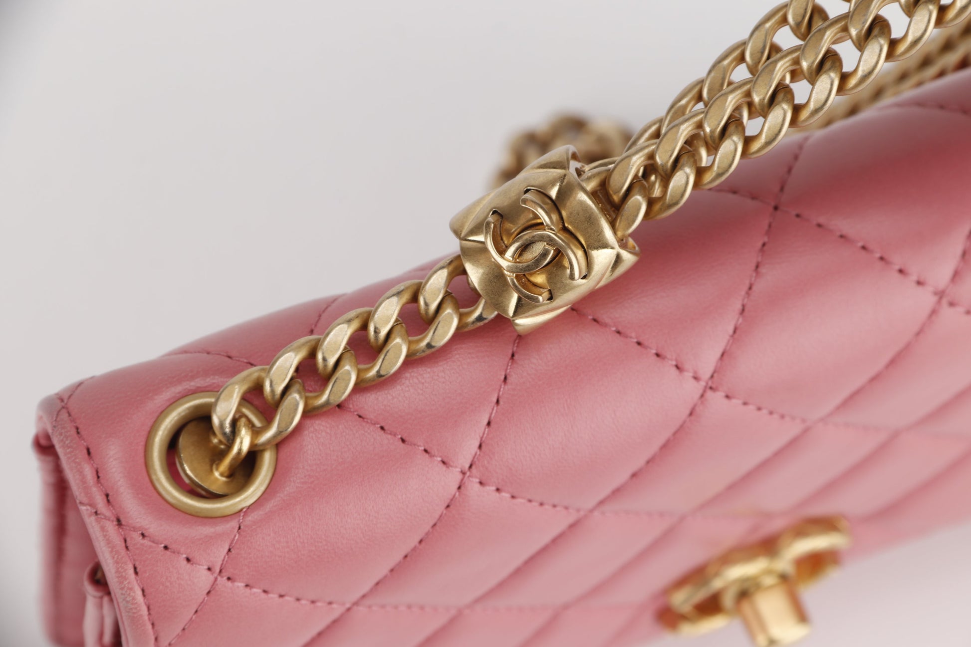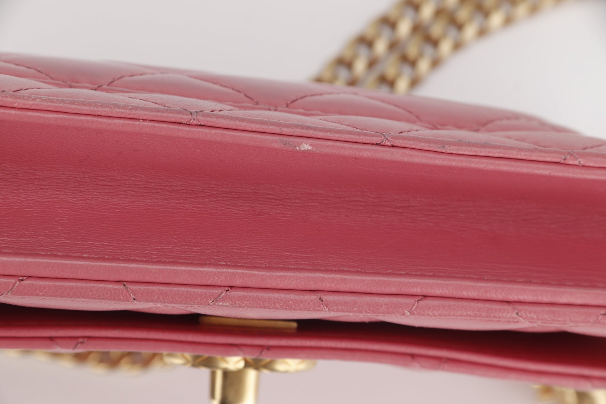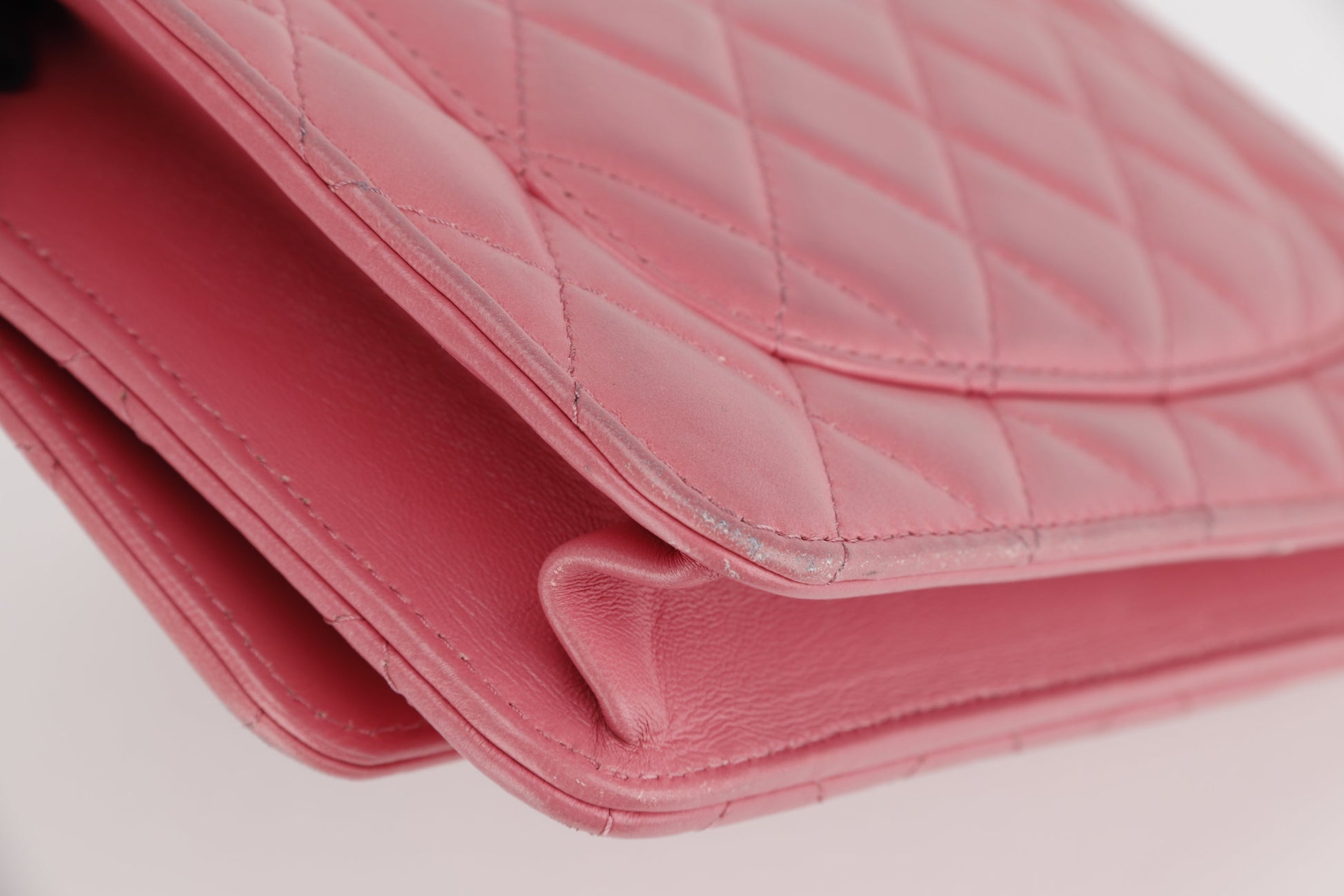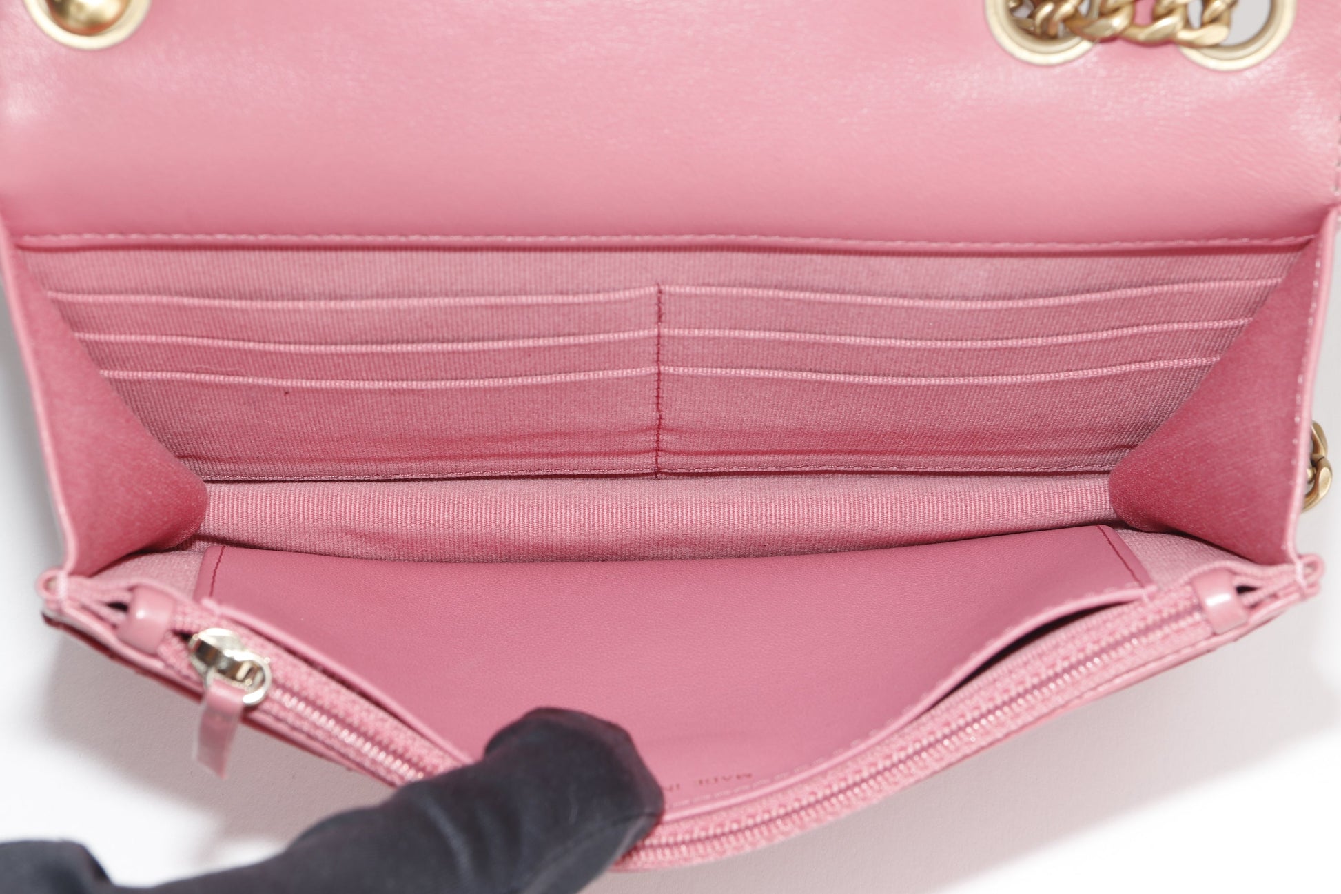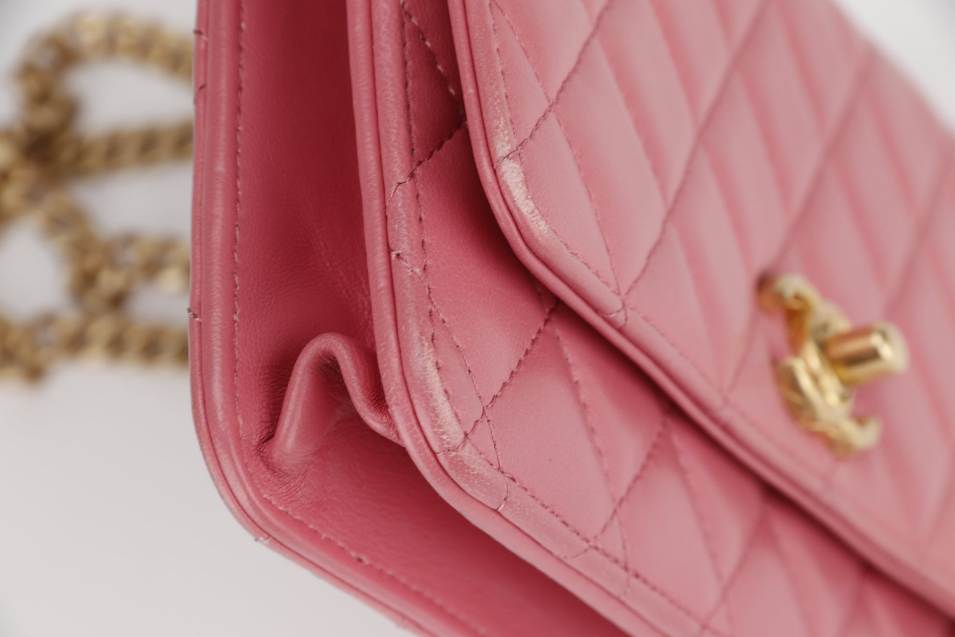 CHANEL PILLOW CRUSH WALLET ON CHAIN (A7U5xxxx) PINK LAMBSKIN GOLD HARDWARE, WITH DUST COVER BOX