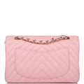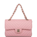 Chanel Pink Chevron Caviar Small Classic Double Flap Bag Light Gold Hardware
