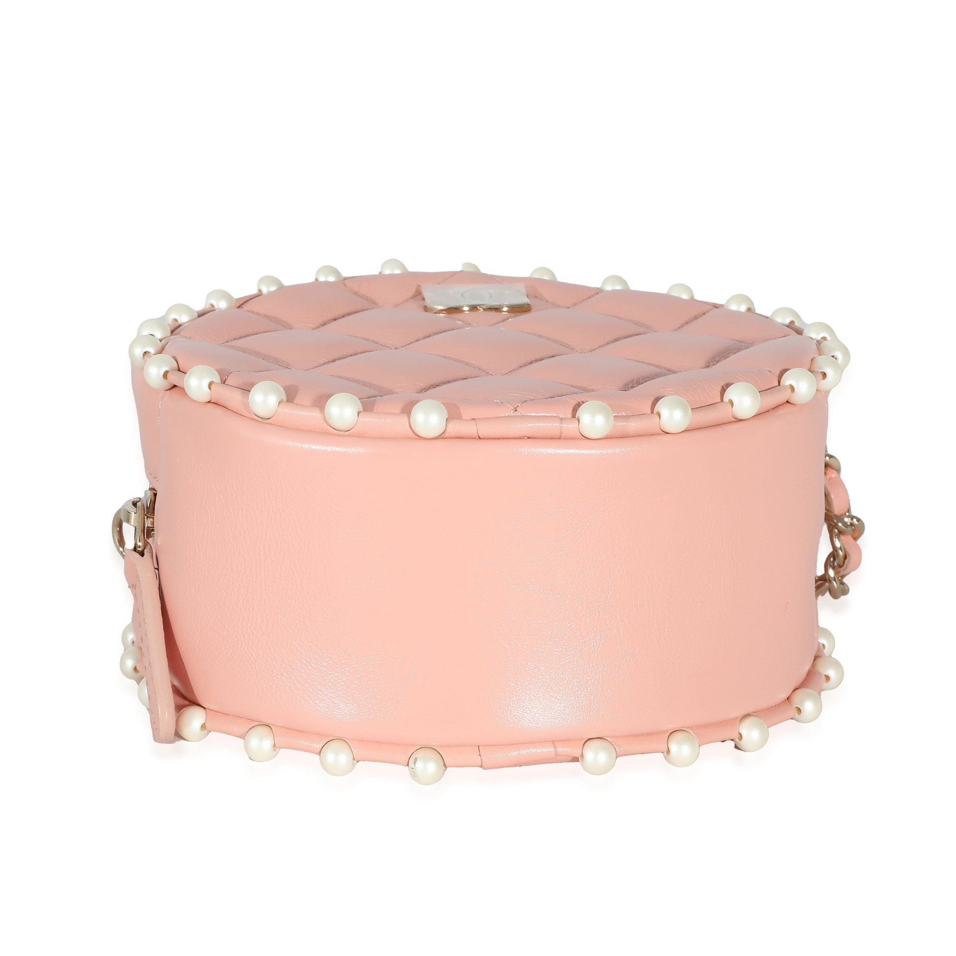 Chanel Pink Quilted Calfskin Pearl Round Clutch With Chain