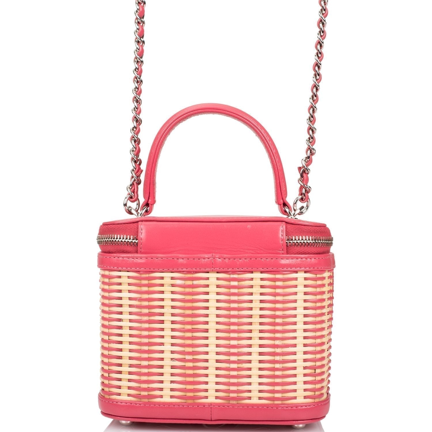 - Chanel Pink Small Vanity Case of Leather and Rattan with Silver Tone Hardware, 2019