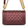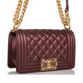 Chanel Plum Metallic Quilted Calfskin Small Boy Bag Antique Gold Hardware