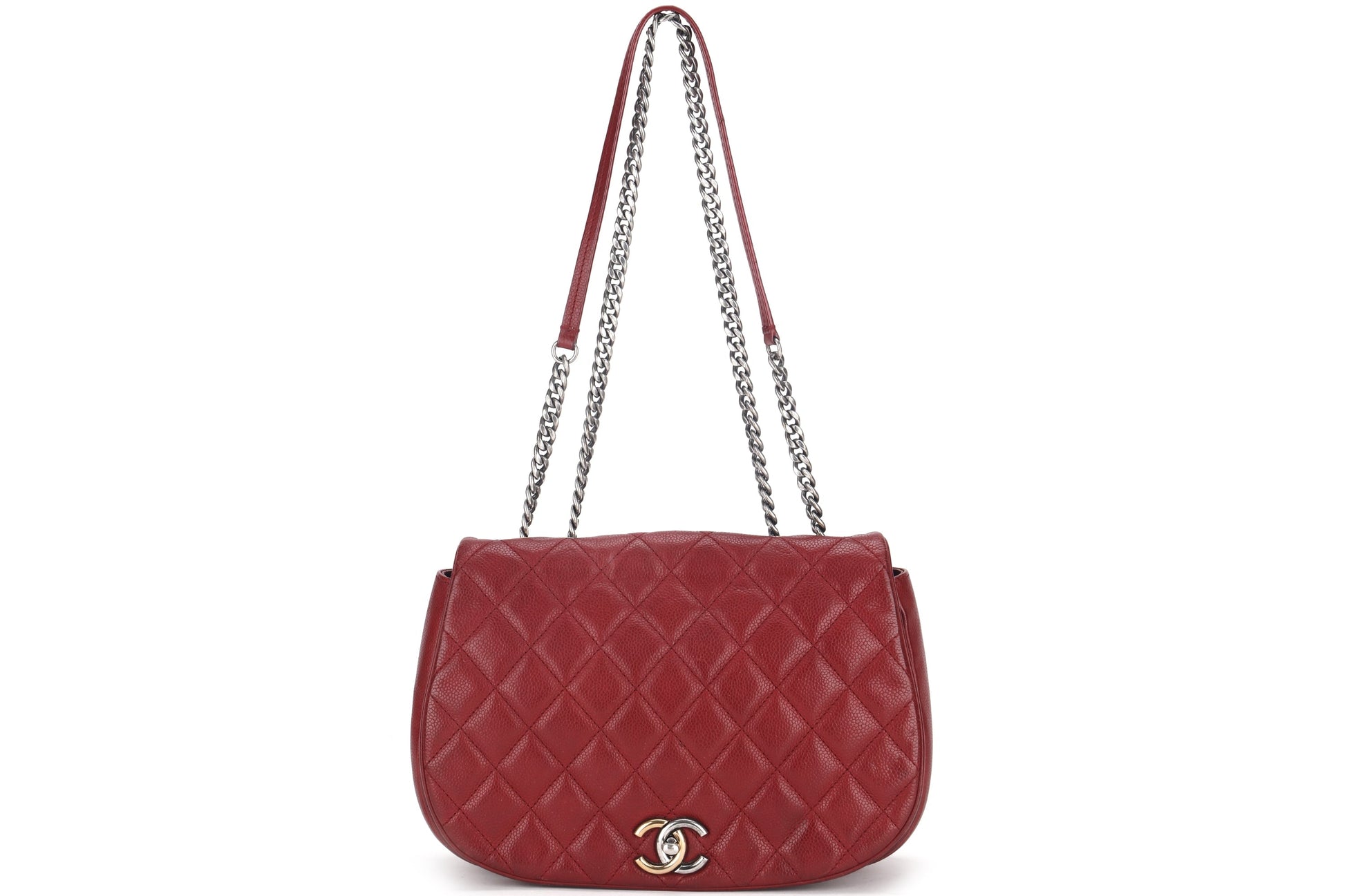 CHANEL POCKET FLAP MESSENGER BAG 26CM (2322xxxx) RED CAVIAR LEATHER GOLD & SILVER HARDWARE, WITH , NO DUST COVER