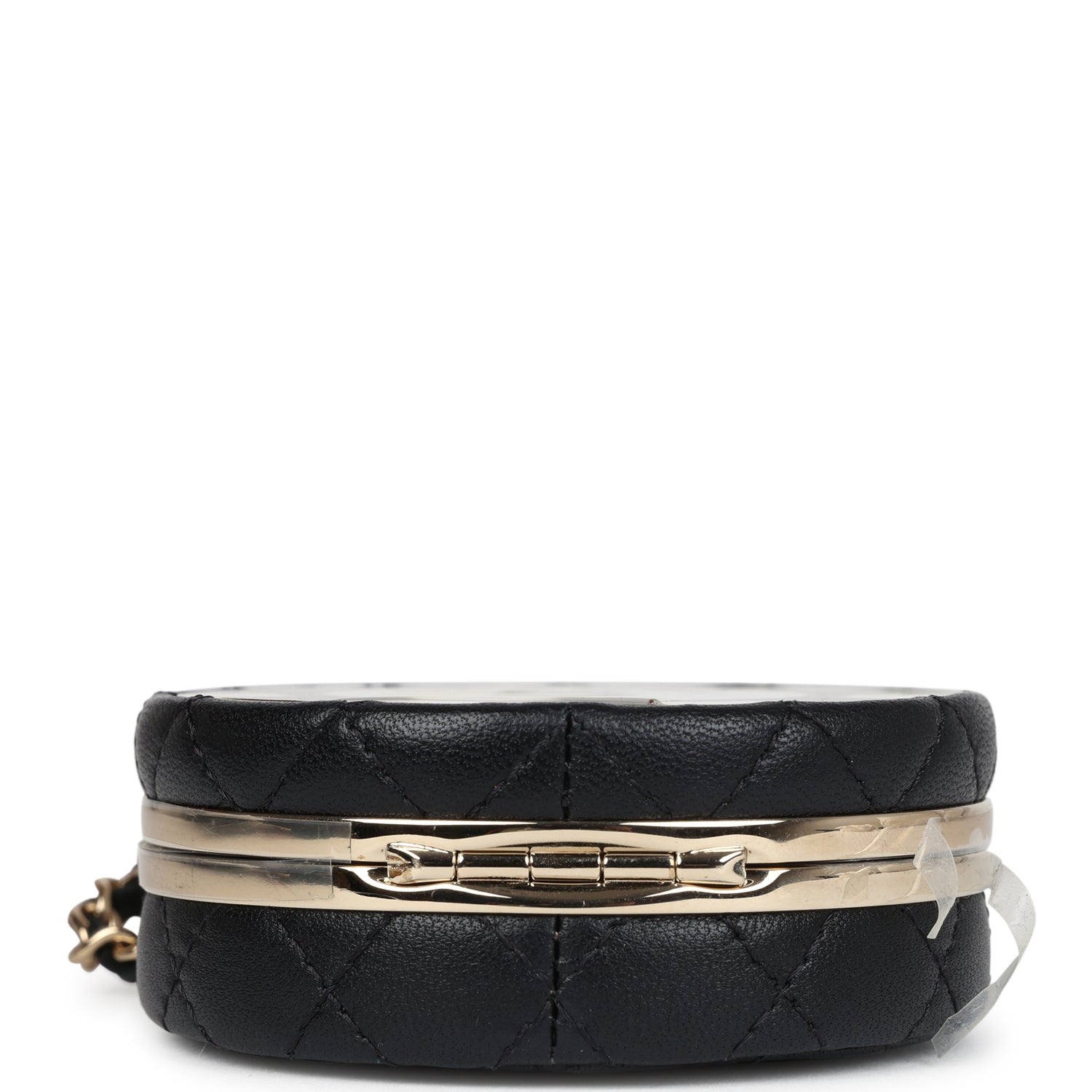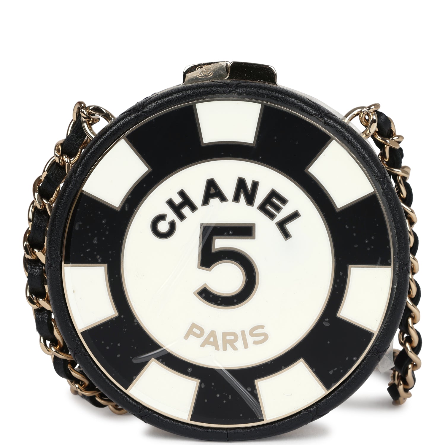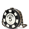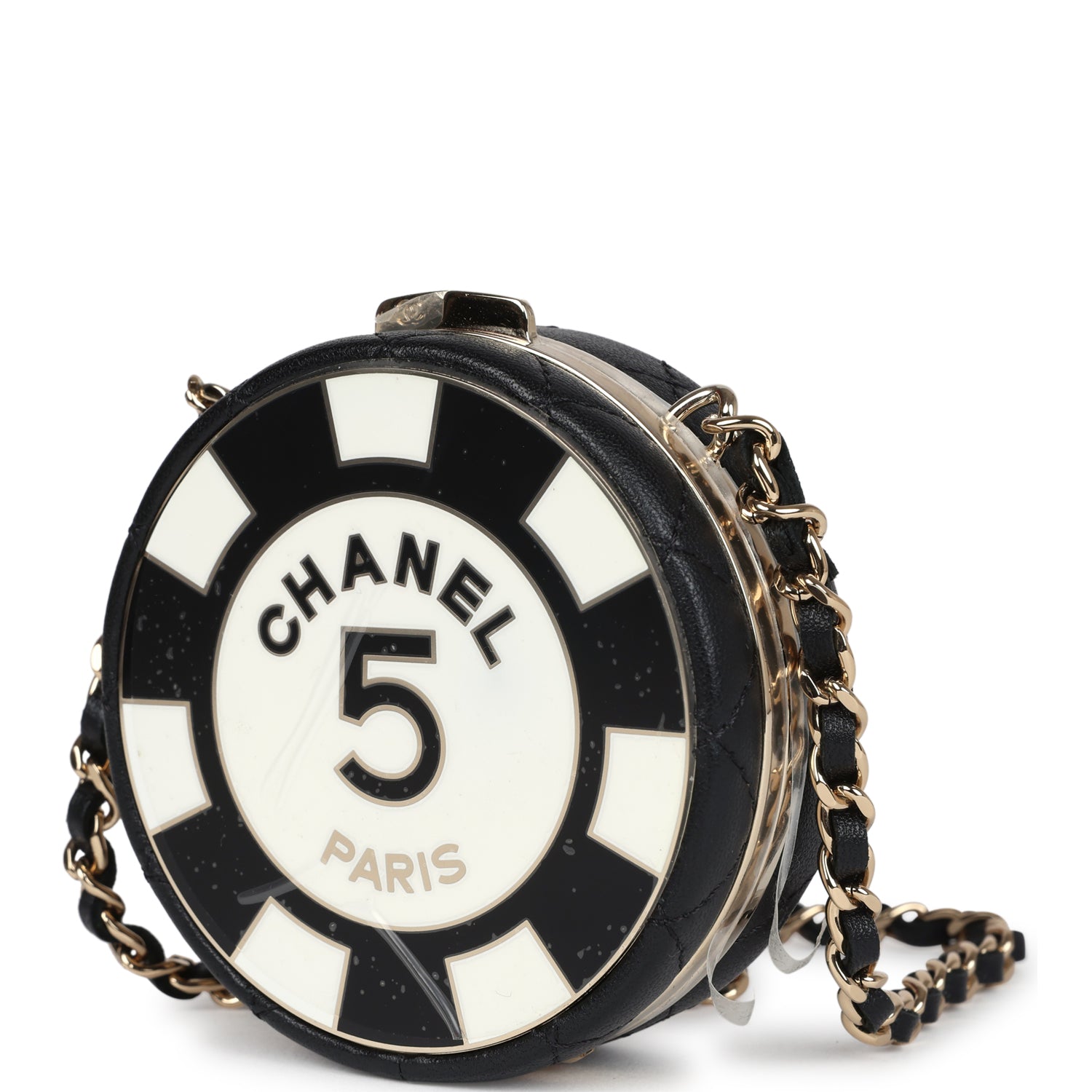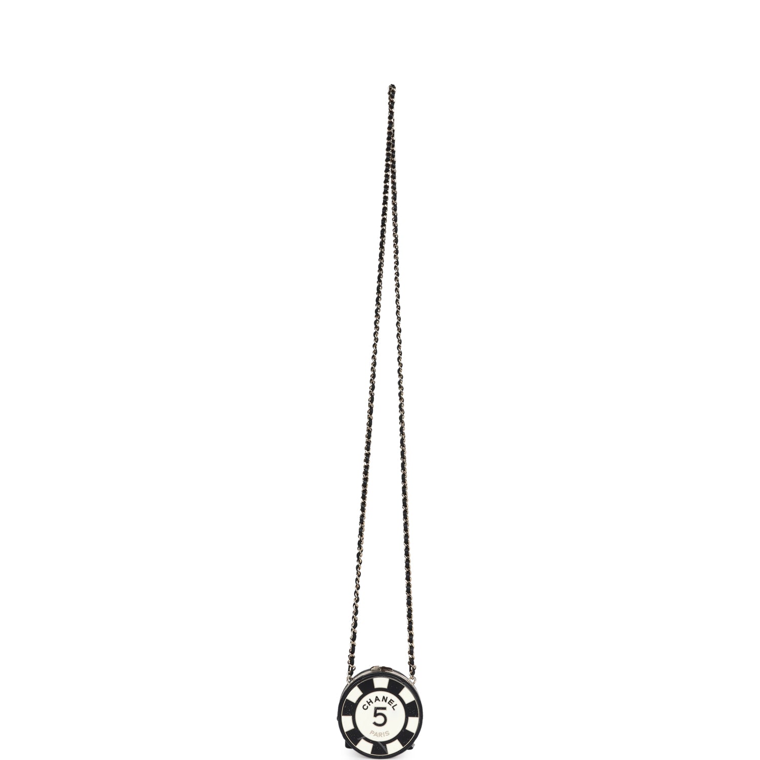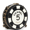 Chanel Poker Chip Minaudiere Clutch with Chain Black and White Enamel and Lambskin Gold Hardware