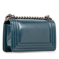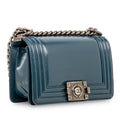 An absolute must-have for any fashion lover with a soft spot for Chanel, it basically goes without saying a Chanel Boy bag is a necessity in any luxury handbag collection. The Boy bag is not only an iconic piece that will remain in style forever, but it's the perfect balance between classic elegance and modern edge. Wear this bag with absolutely anything in your wardrobe, from casual jeans and a basic tee to a dressy skirt and blazer - you'll be sure to compliment any look with the Small Boy by your side. Carefully crafted from smooth, plain Patent leather, in a wonderful Turkish blue hue and complimented by ruthenium tone hardware, this bag is the ideal investment for any modern woman with a fashion forward sense of style and a love for classic luxury. A well-worthy investment piece that will never decrease in value, this Boy is one you’ll never want to break up with.