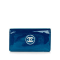 This timeless wallet from Chanel is the ideal option for any woman with a love for luxury and colour. Crafted from Sea Blue patent leather, with a prominent, white CC circular logo, this open flap wallet is perfect for carrying, cards, receipts and all those excess things one always ends up with in their wallet.