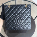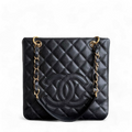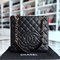 Chanel PST Petite Shopping Tote - Caivar Quilted Black Gold Hardware Series 11