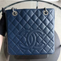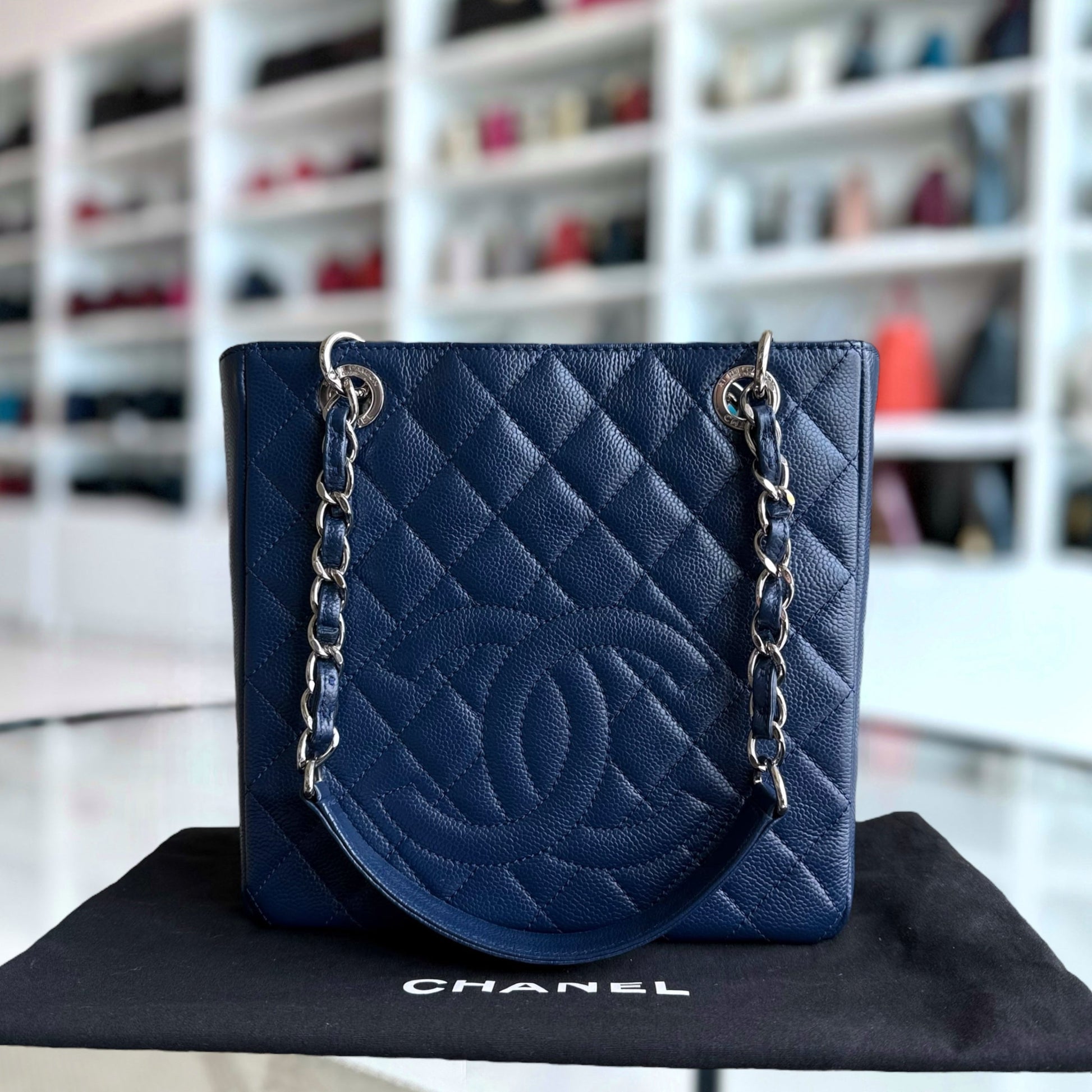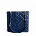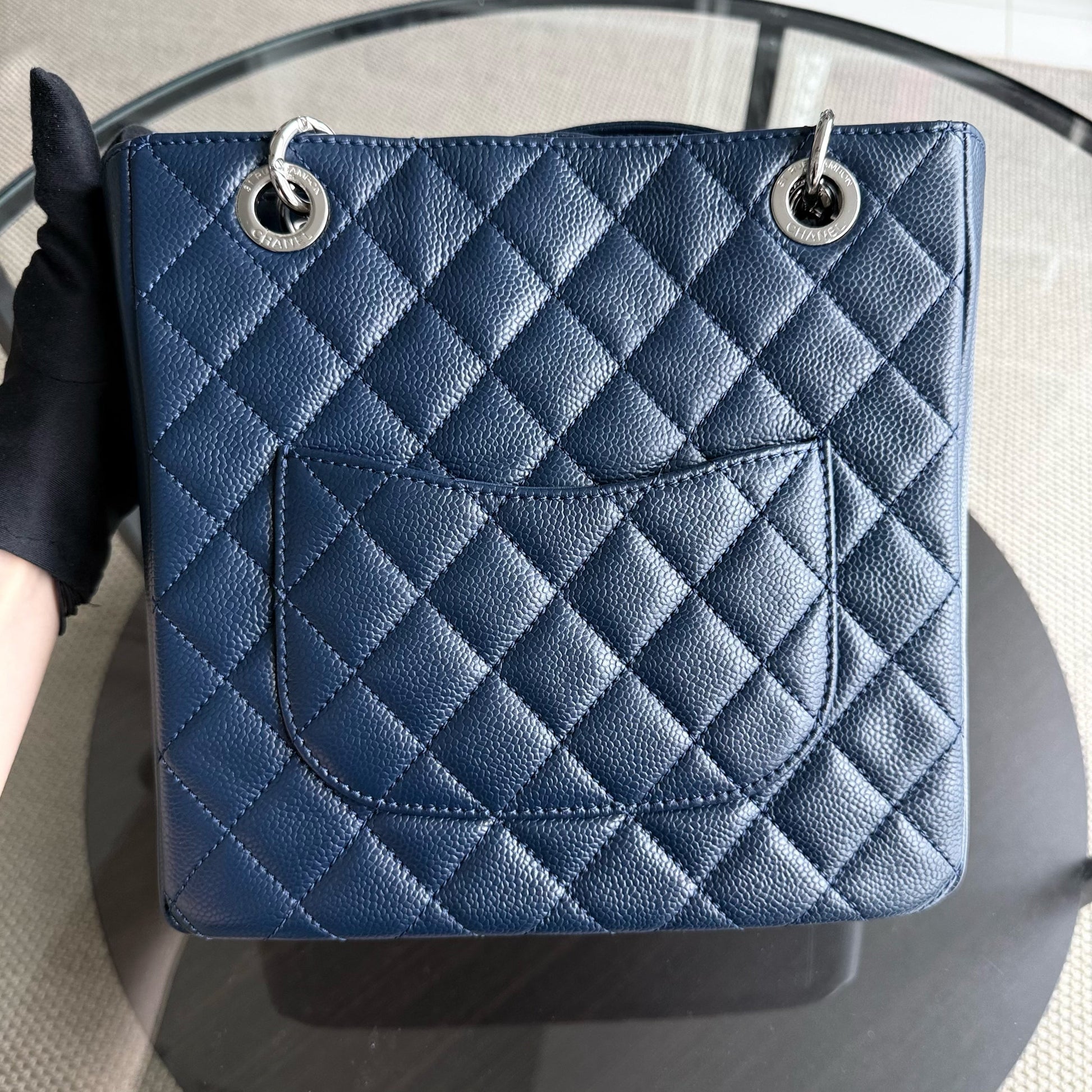 Chanel PST Petite Shopping Tote - Caviar 24CM Quilted Dark Blue Silver Hardware Series 15