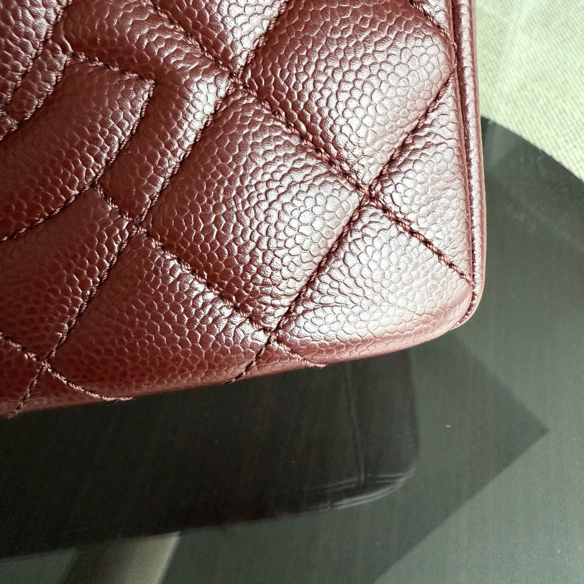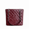 Chanel PST Petite Shopping Tote - Caviar Quilted Burgundy Dark Red Silver Hardware Series 18