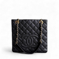 Chanel PST Petite Shopping Tote - Caviar Quilted Grained Calfskin Black Gold Hardware