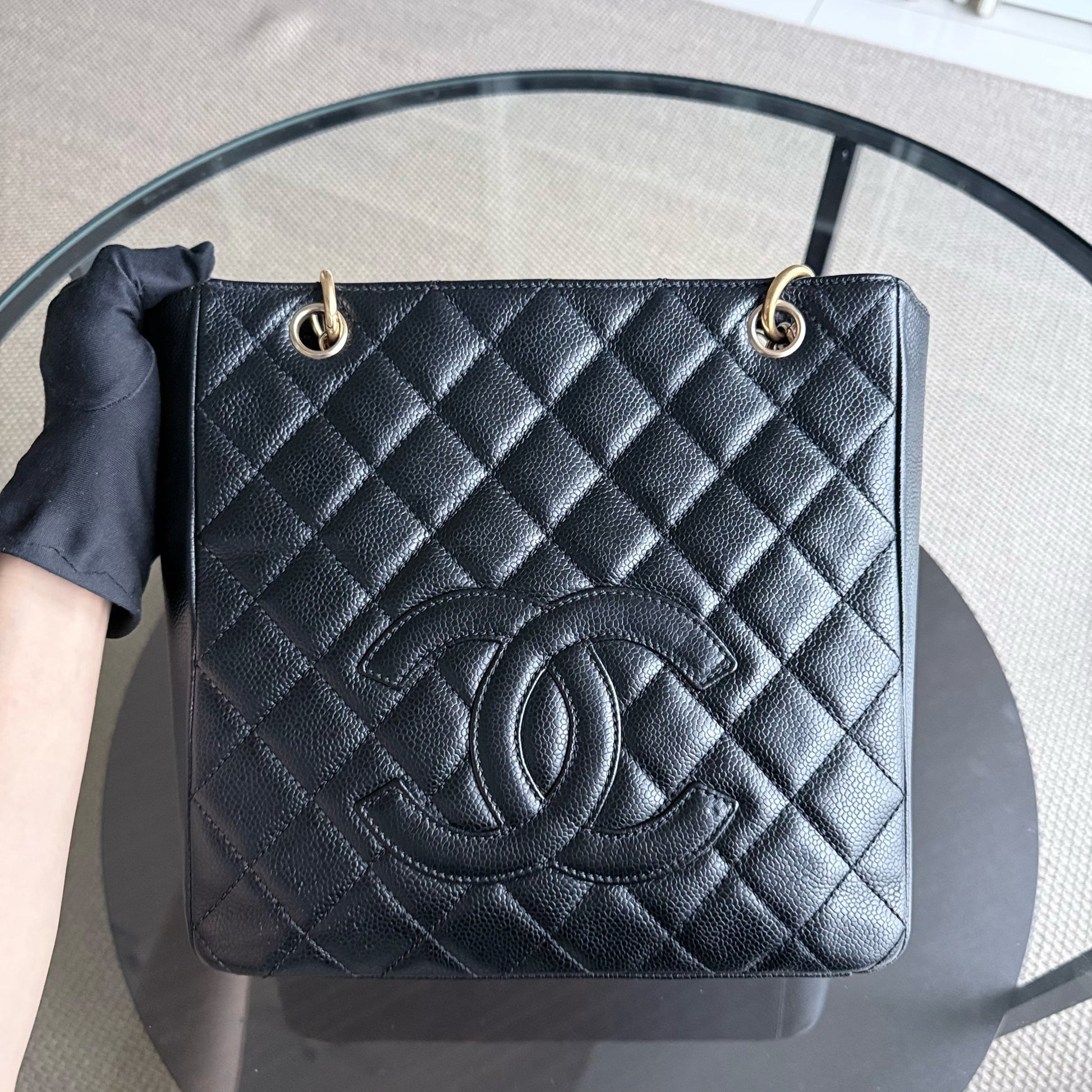 Chanel PST Petite Shopping Tote - Caviar Quilted Grained Calfskin Black Gold Hardware Series 11