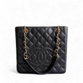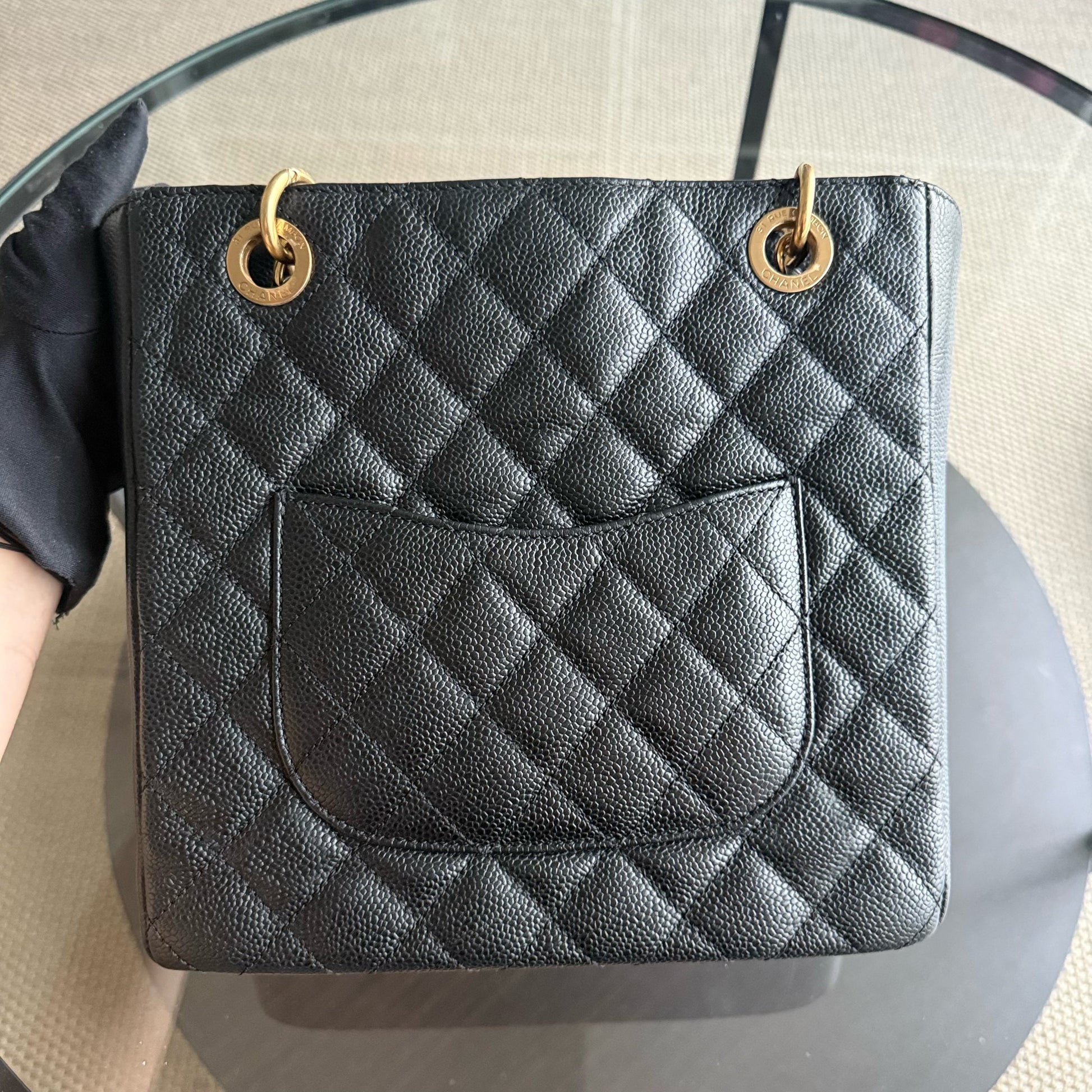 Chanel PST Petite Shopping Tote - Caviar Quilted Grained Calfskin Black Gold Hardware Series 15