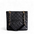 Chanel PST Petite Shopping Tote - Caviar Quilted Grained Calfskin Black Gold Hardware Series 8