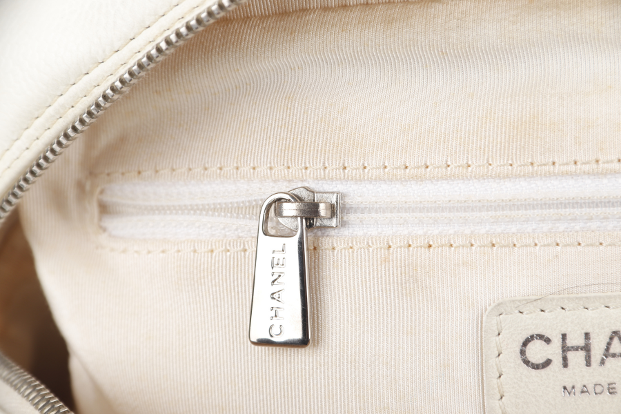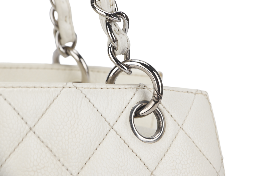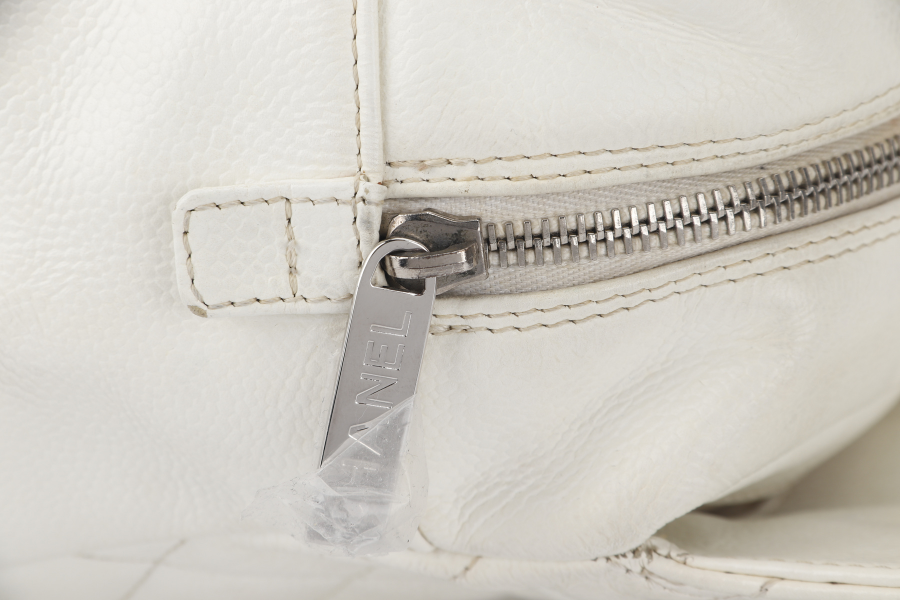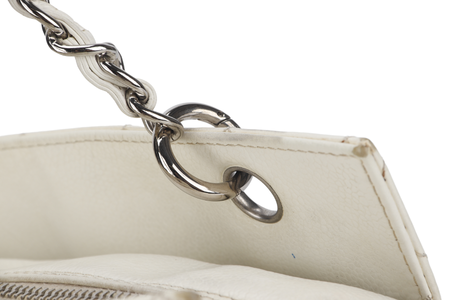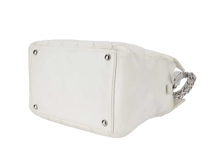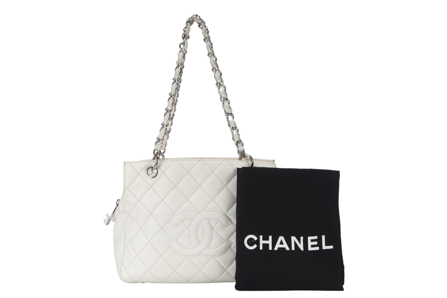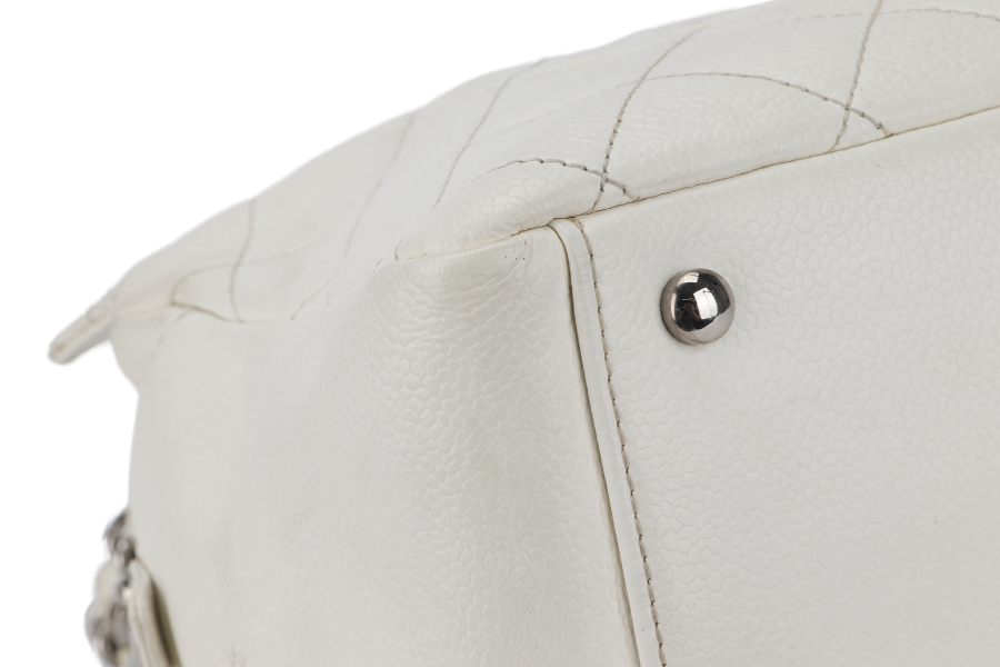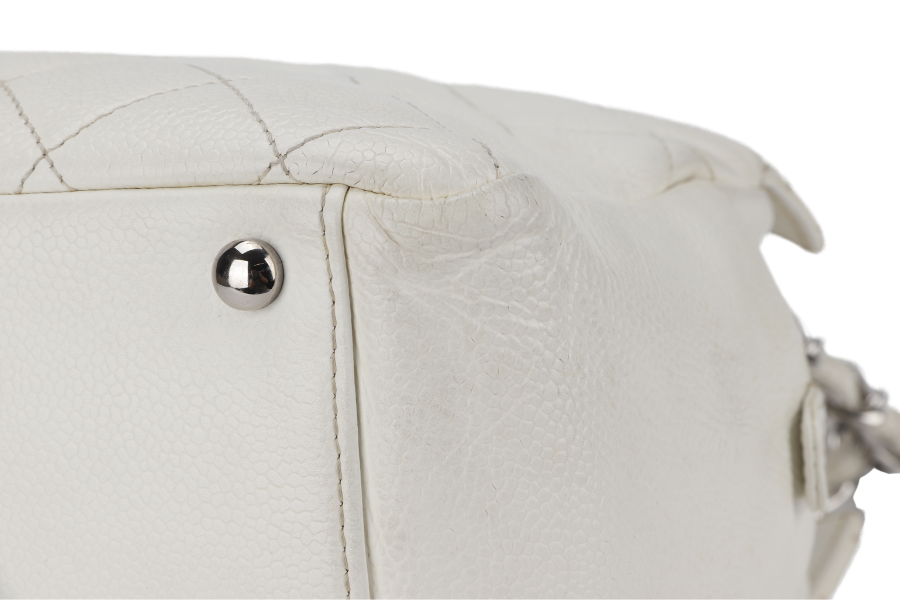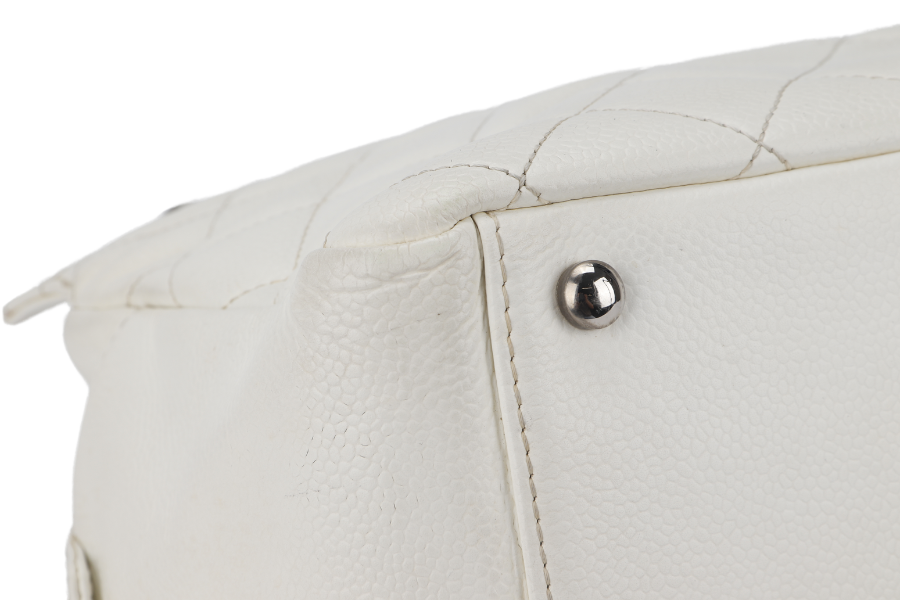 CHANEL PST WHITE (1044xxxx) CAVIAR LEATHER SILVER HARDWARE WITH DUST COVER