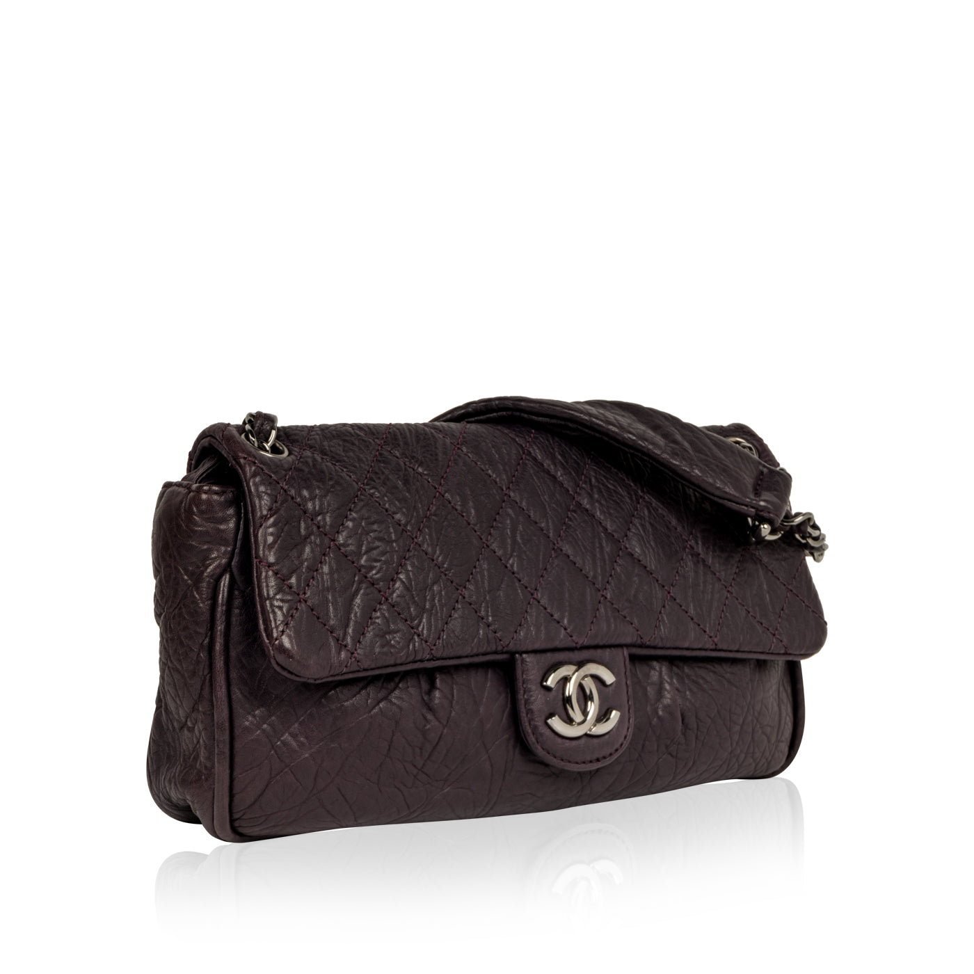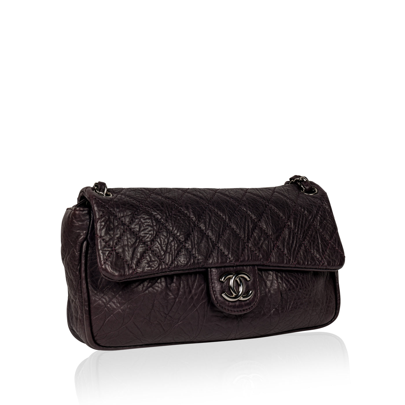 Yes ladies, long baguette bags are back and they're better than ever. A prime example of how fashion is constantly recycling trends from decades past, this purple Chanel shoulder bag represents the early 2000s eras in the best way possible. We know you may be shuddering just thinking about dresses over low waisted flares, flip flops and thin glitter scarves - but you have to admit, the bags were pretty iconic. Crafted from distressed calfskin, this purple bag features Chanel's iconic quilted design and interwoven chain / leather straps with a large leather shoulder pad. Complimented by dark silver-tone hardware, the bag offers a spacious interior that can easily hold all your essentials comfortably inside. A huge throwback piece that seemingly remains in style today, this timeless piece is worth investing in.
