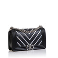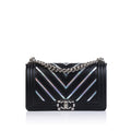 A true must-have for any major Chanel collector! Presented in their Spring/Summer 2017 collection, Chanel's PVC Rainbow Chevron Boy bag wowed fashion lovers globally. Crafted in smooth, black lambskin leather with rainbow PVC chevron detailing, this Boy bag is both extremely unique and rare. The perfect compliment to any neutral-toned outfit, this piece is perfect for any woman who wants to make a statement.