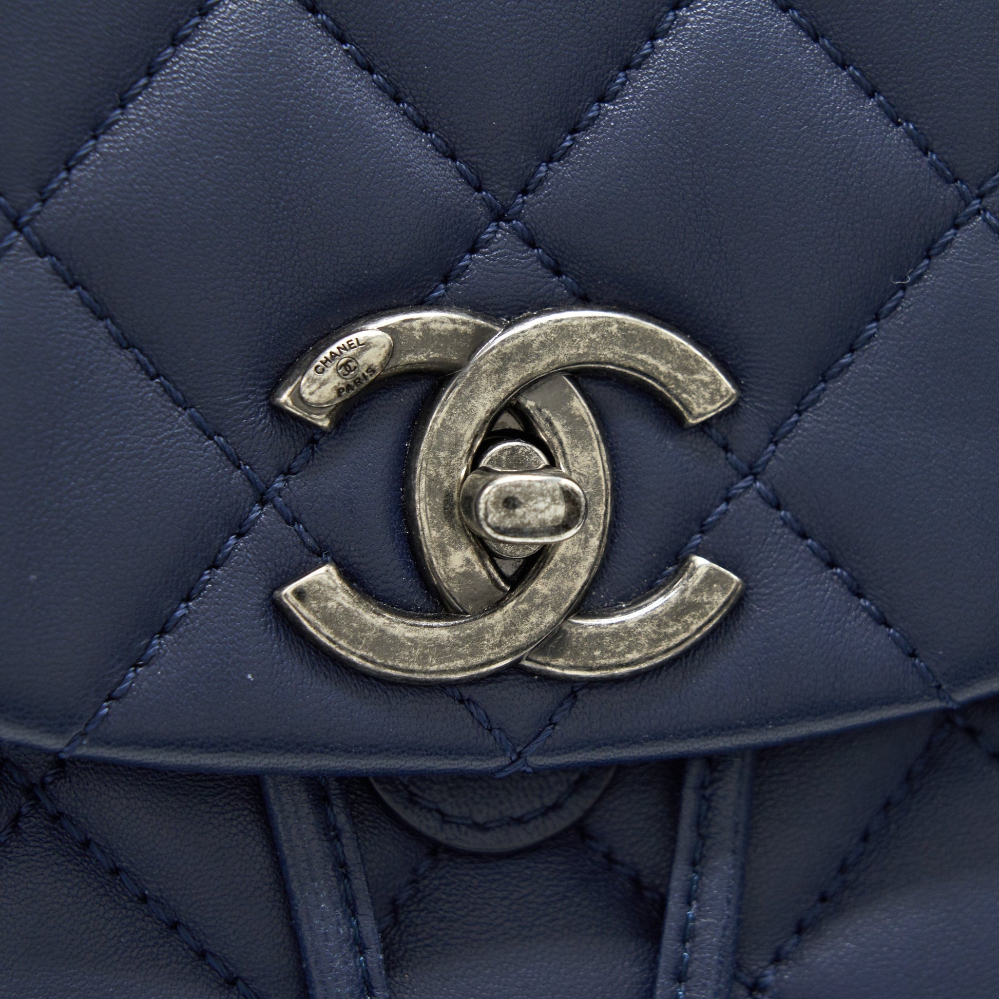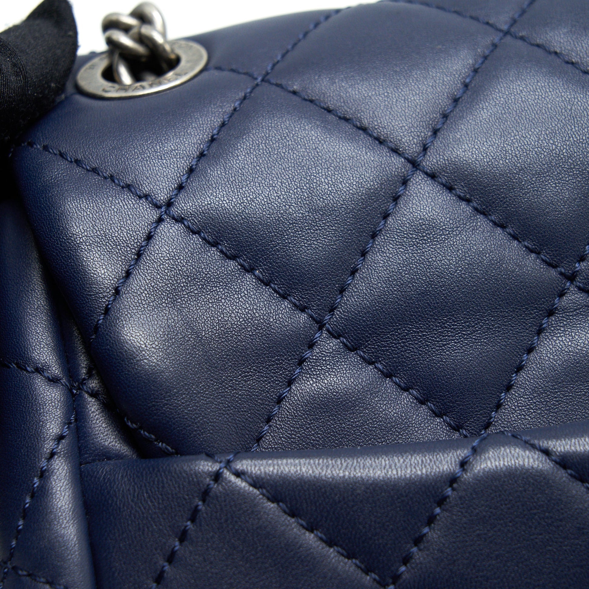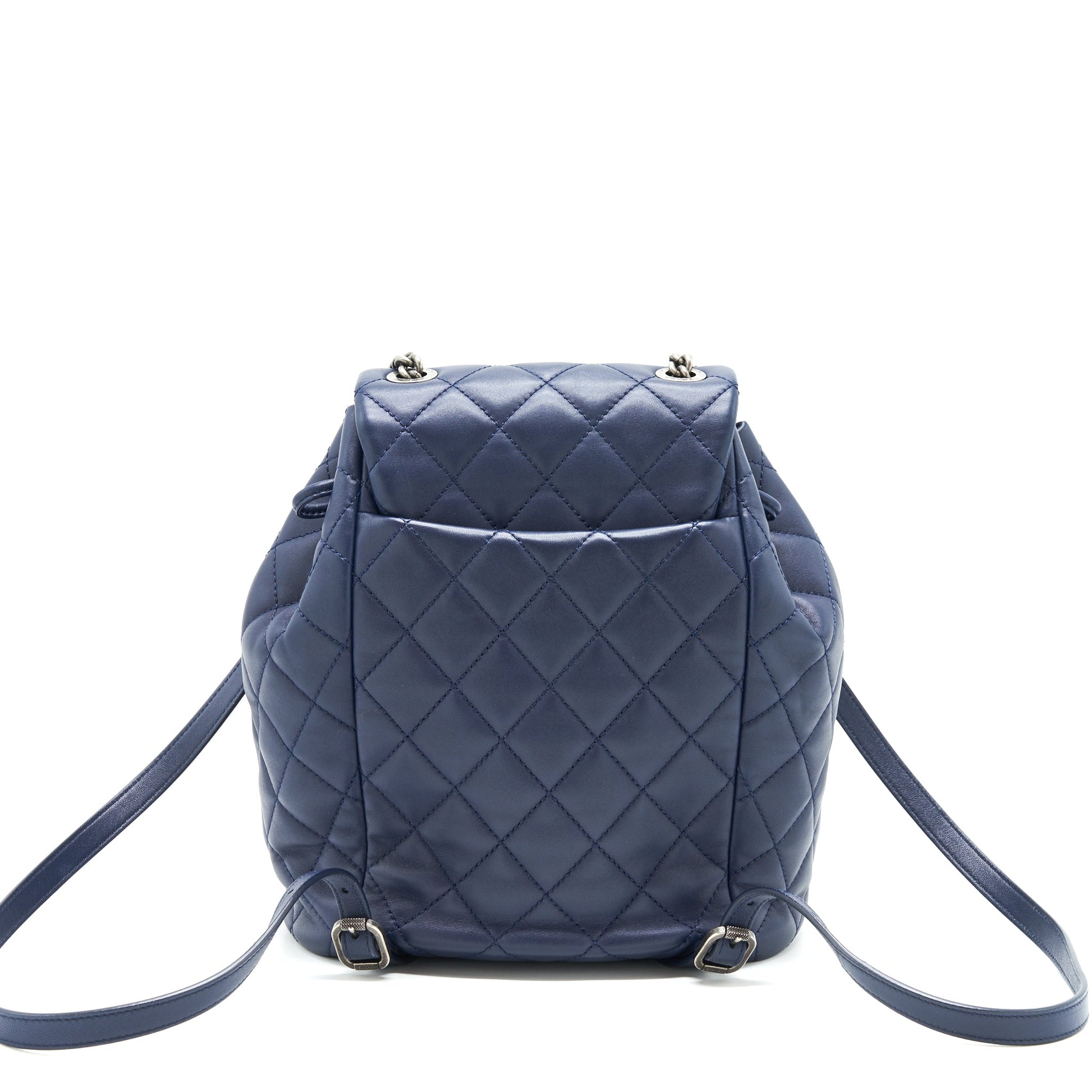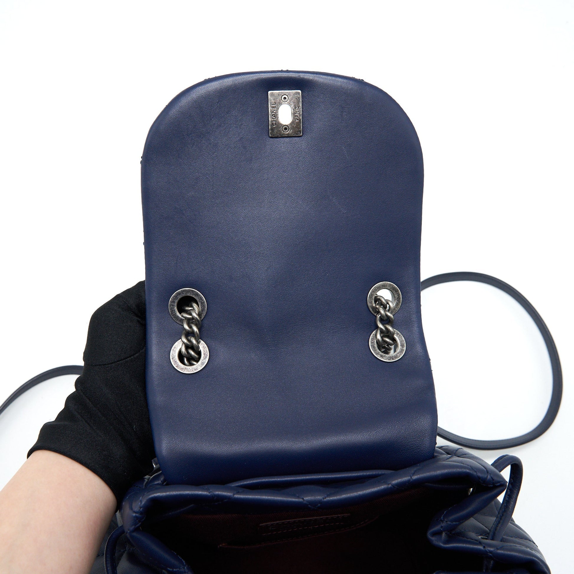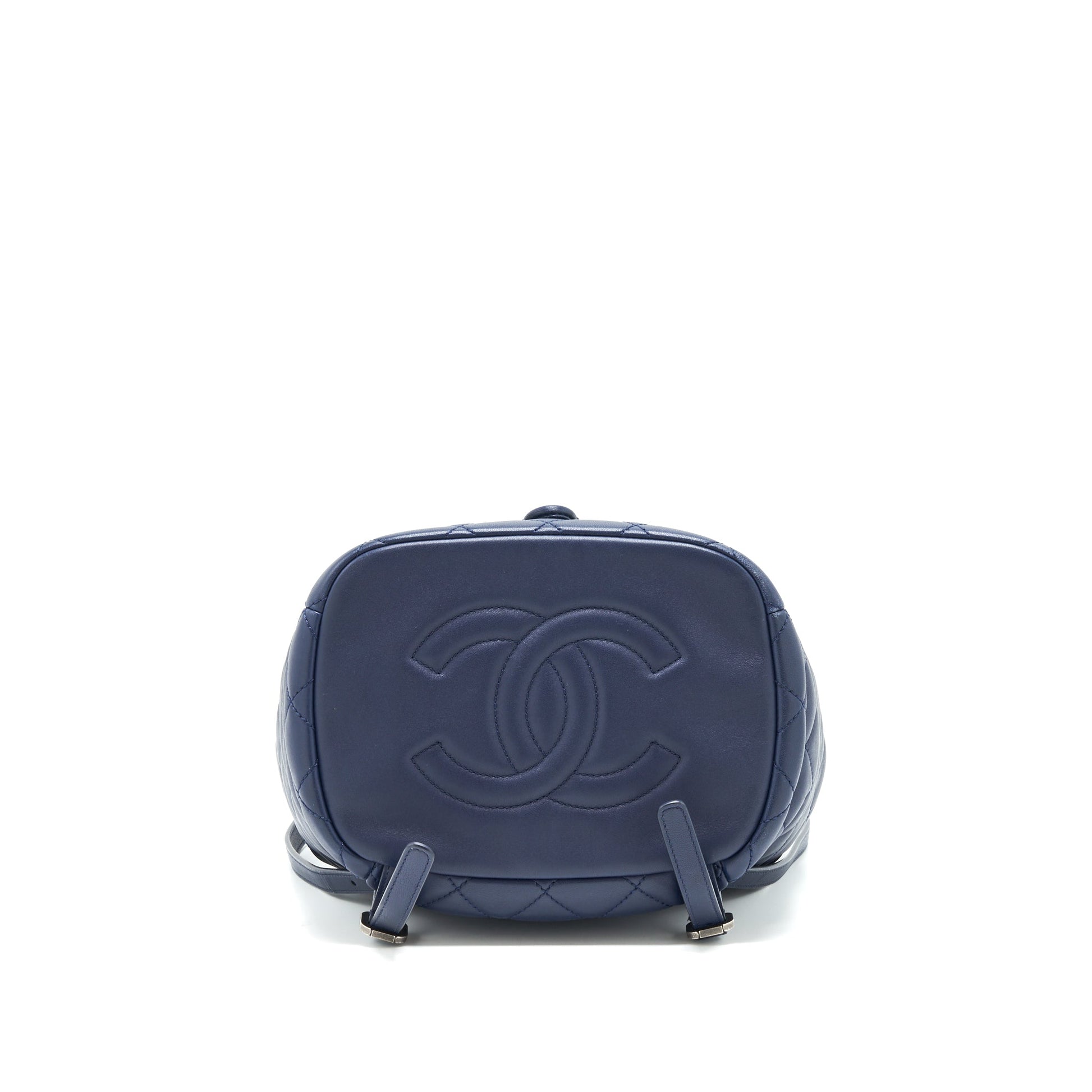 Chanel Quilted Backpack Navy Blue Ruthenium SHW