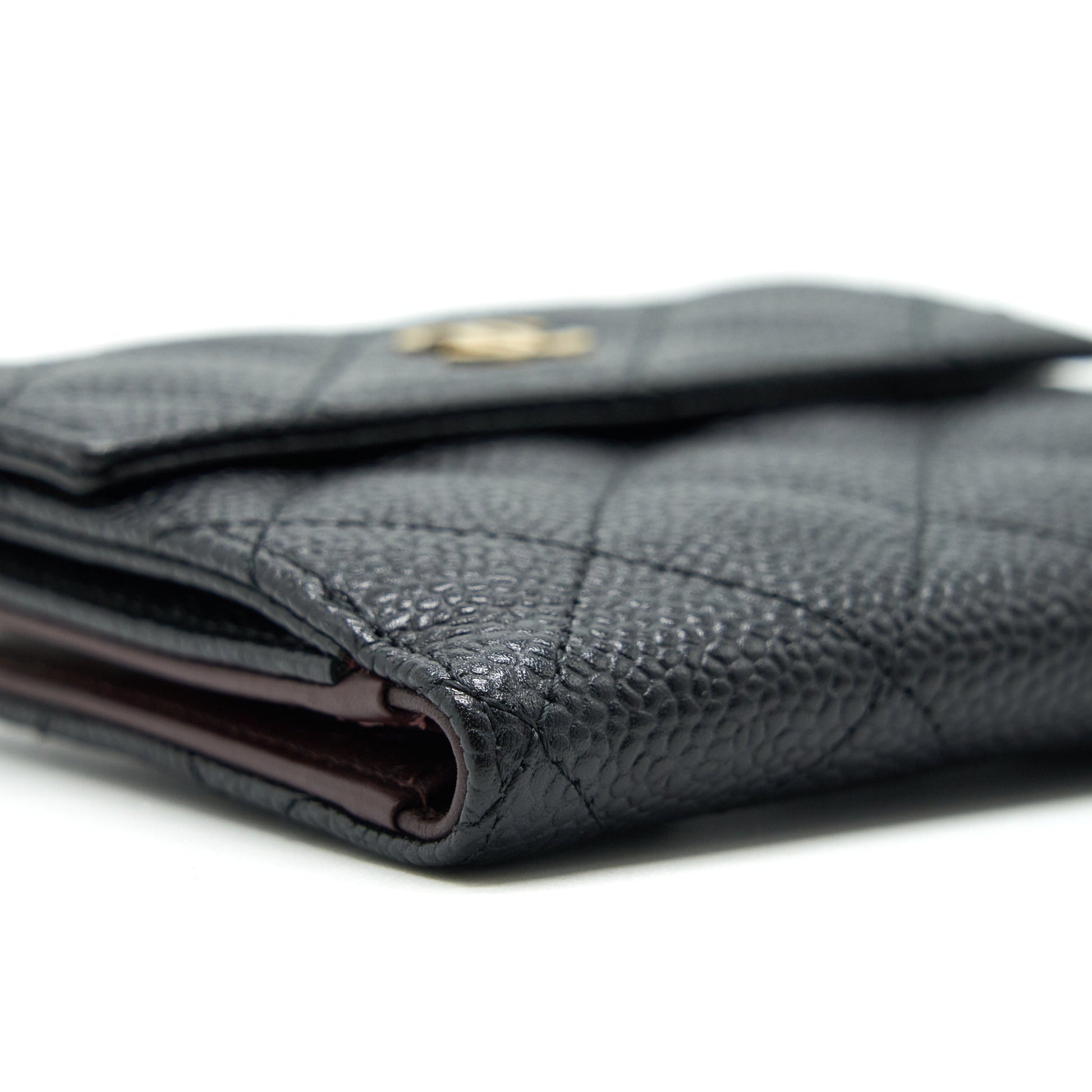 CHANEL Quilted Caviar Small Wallet Black GHW