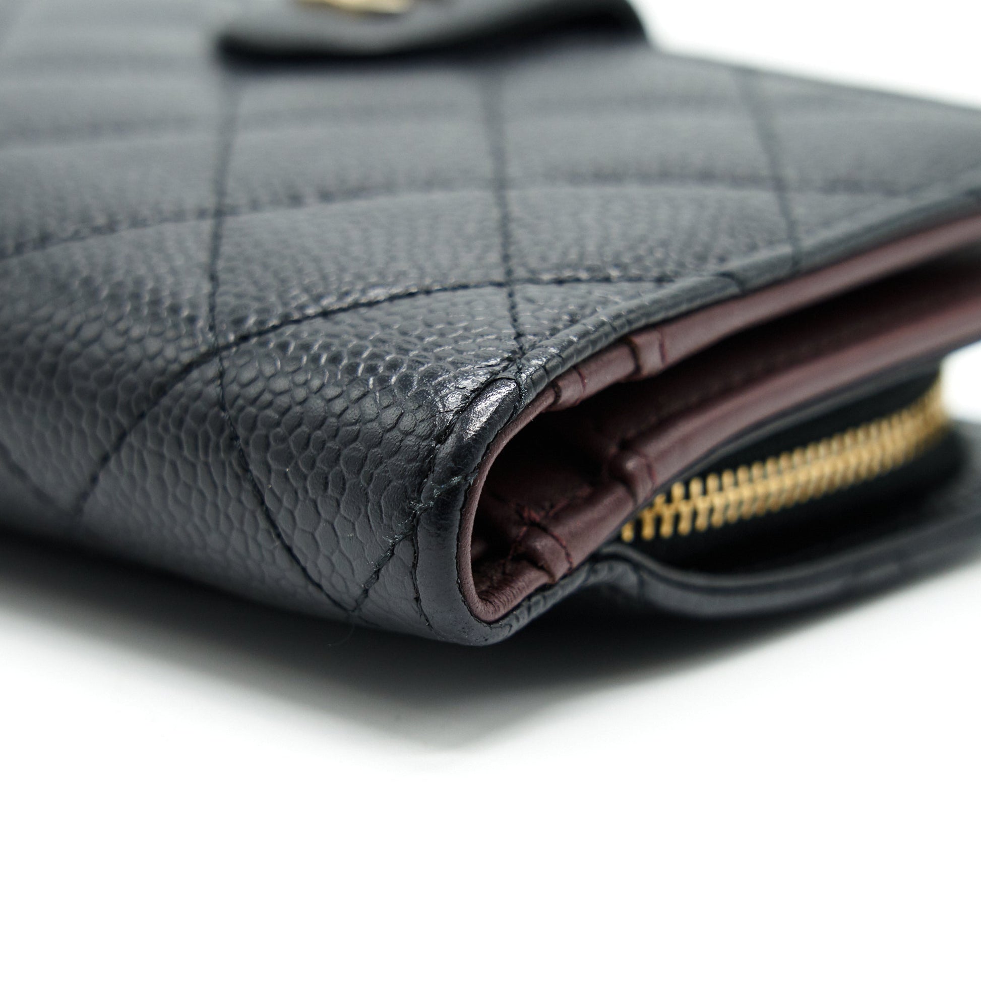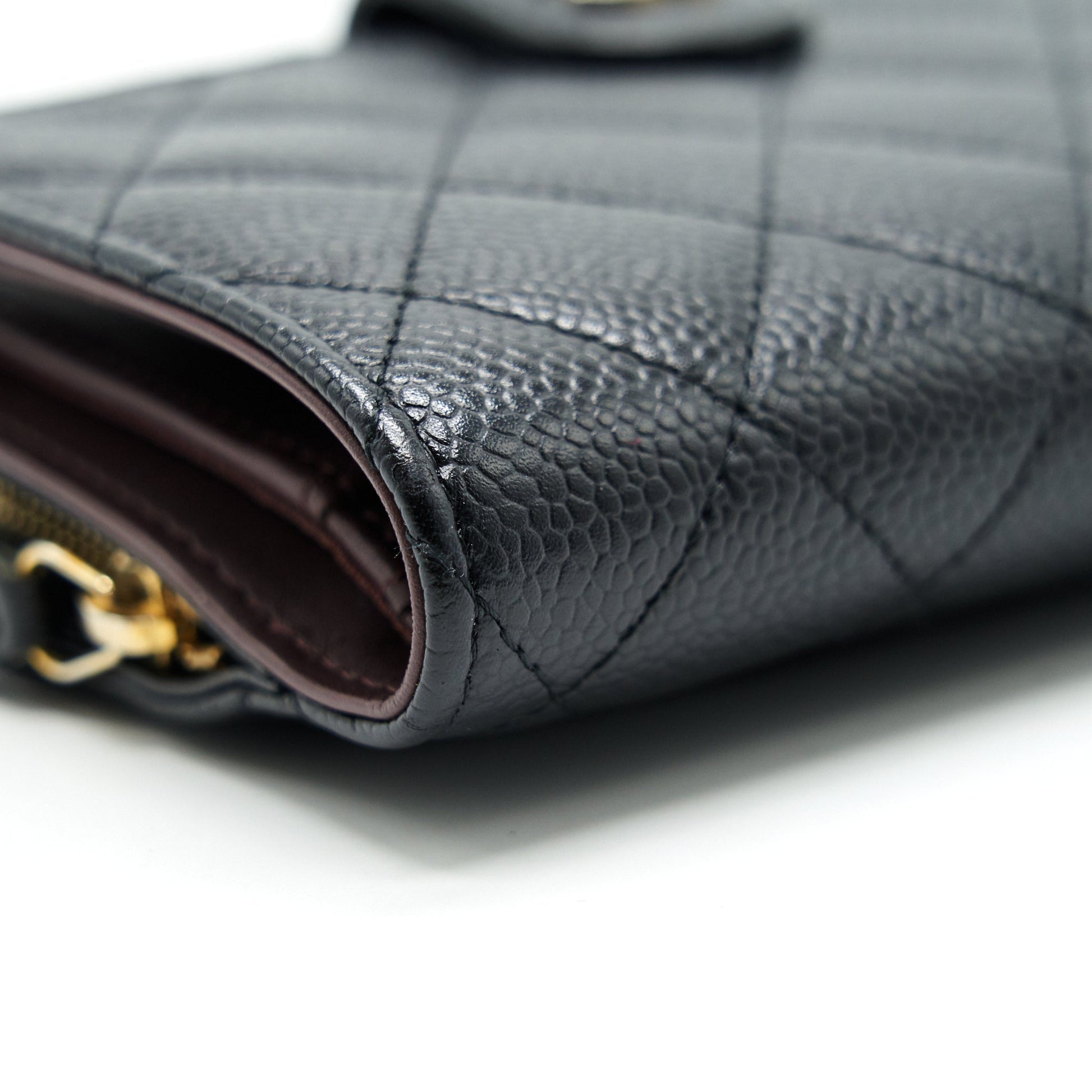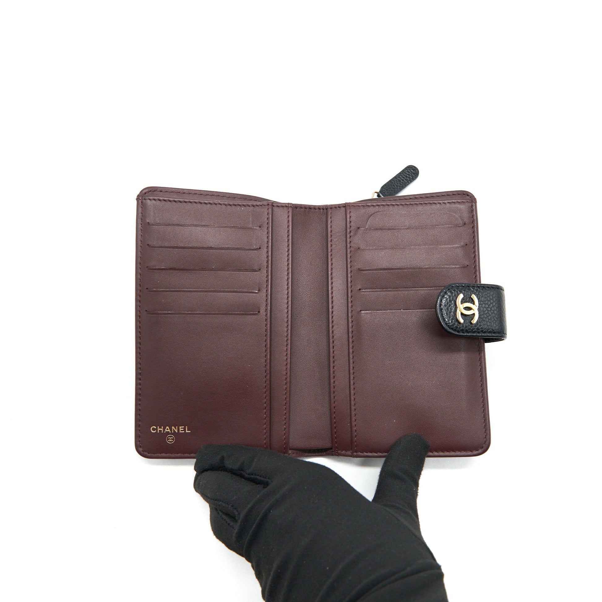 Chanel Quilted CC Bifold Caviar Wallet Black GHW
