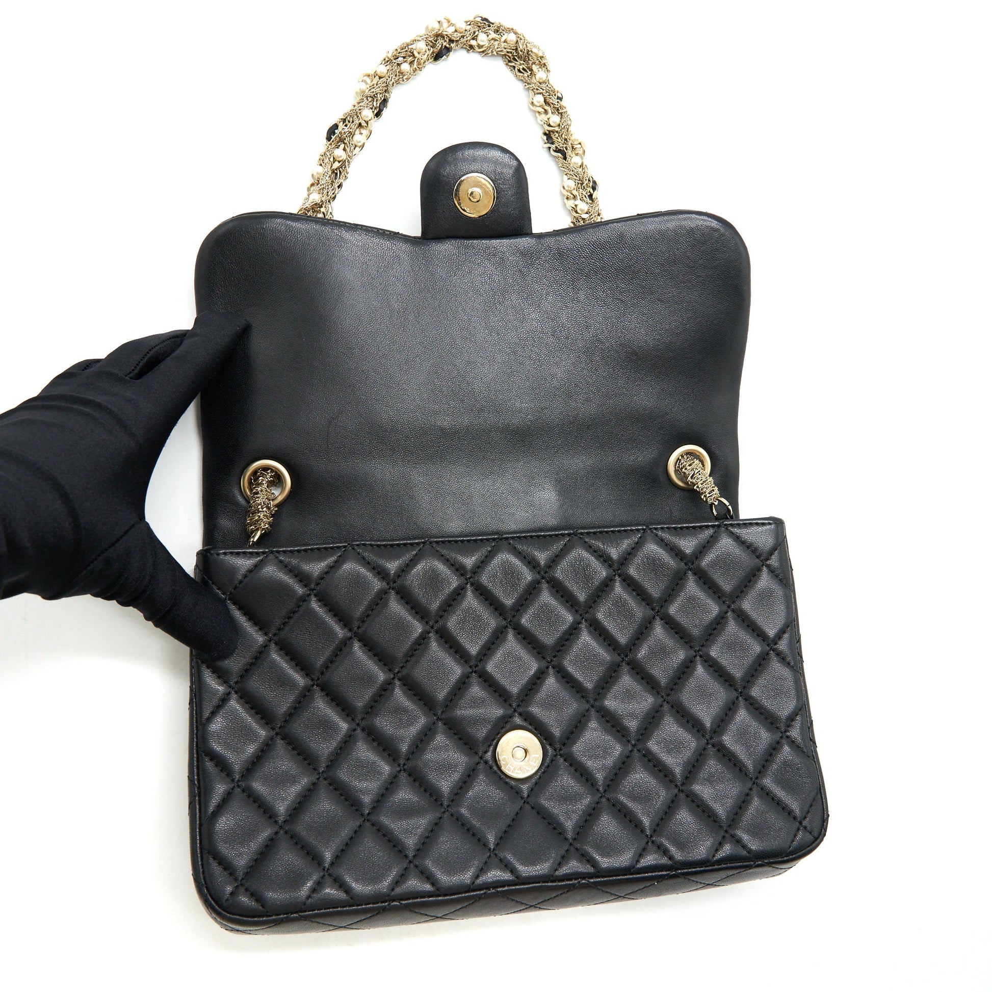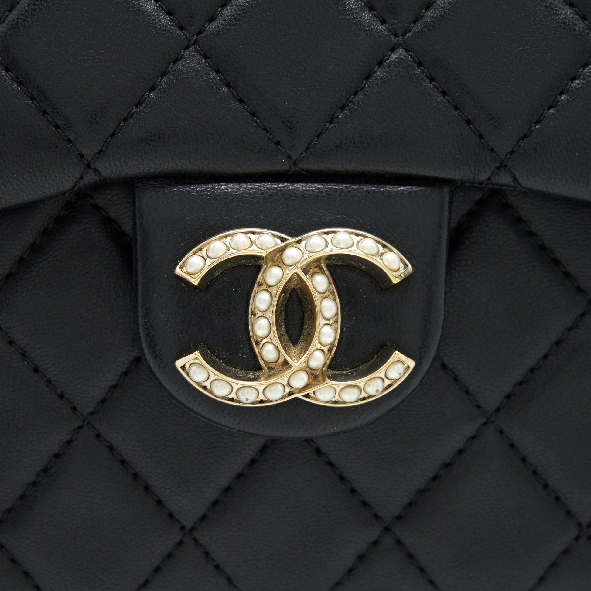 Chanel Quilted CC Pearl Logo Shoulder Flap Bag with Chain