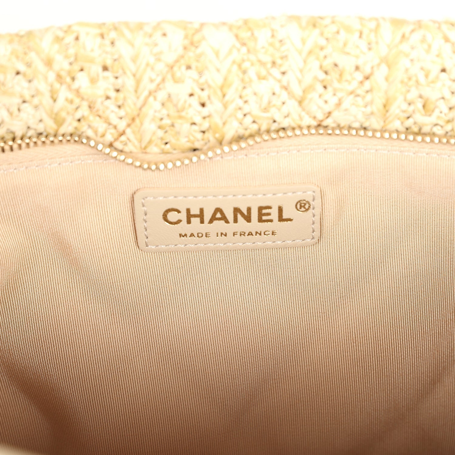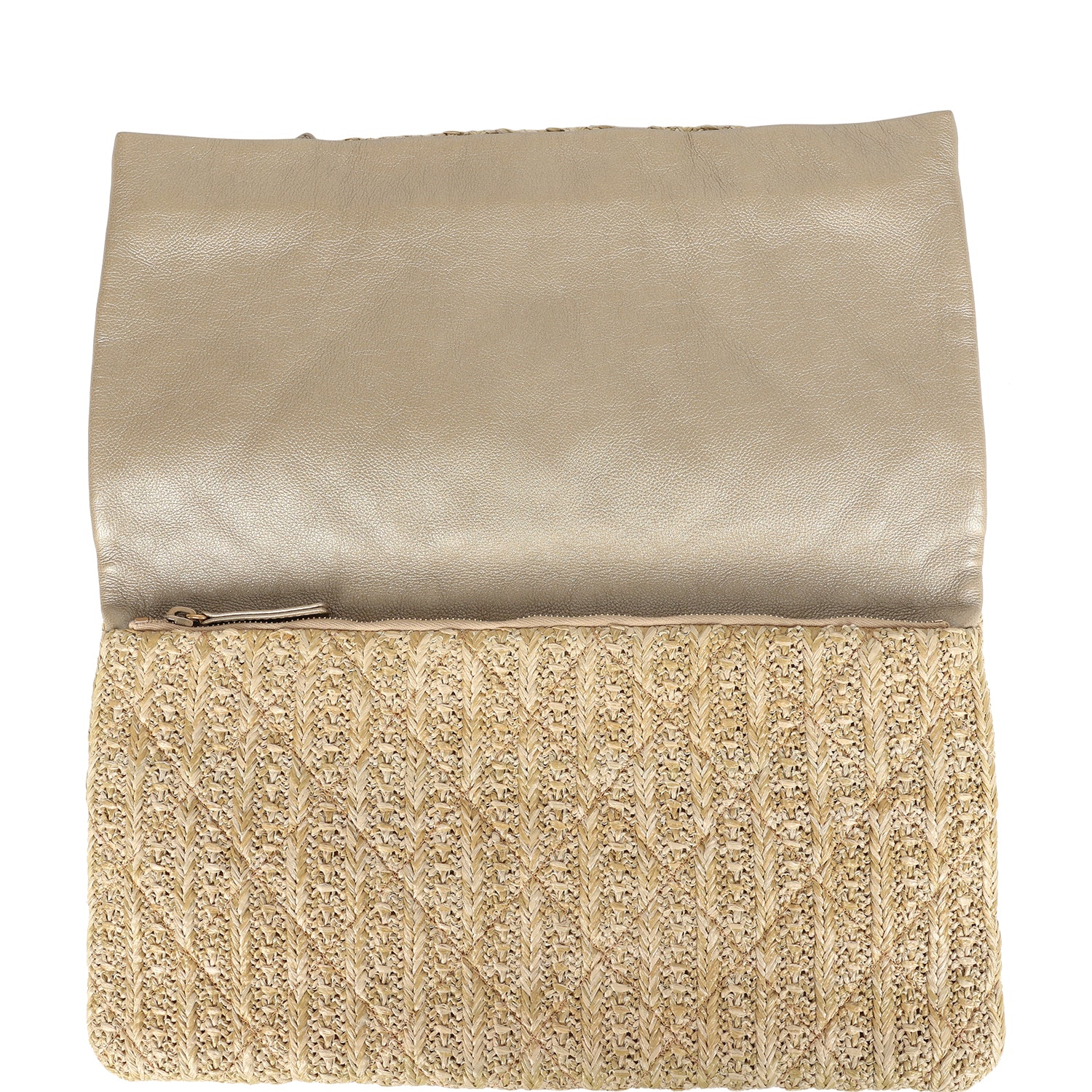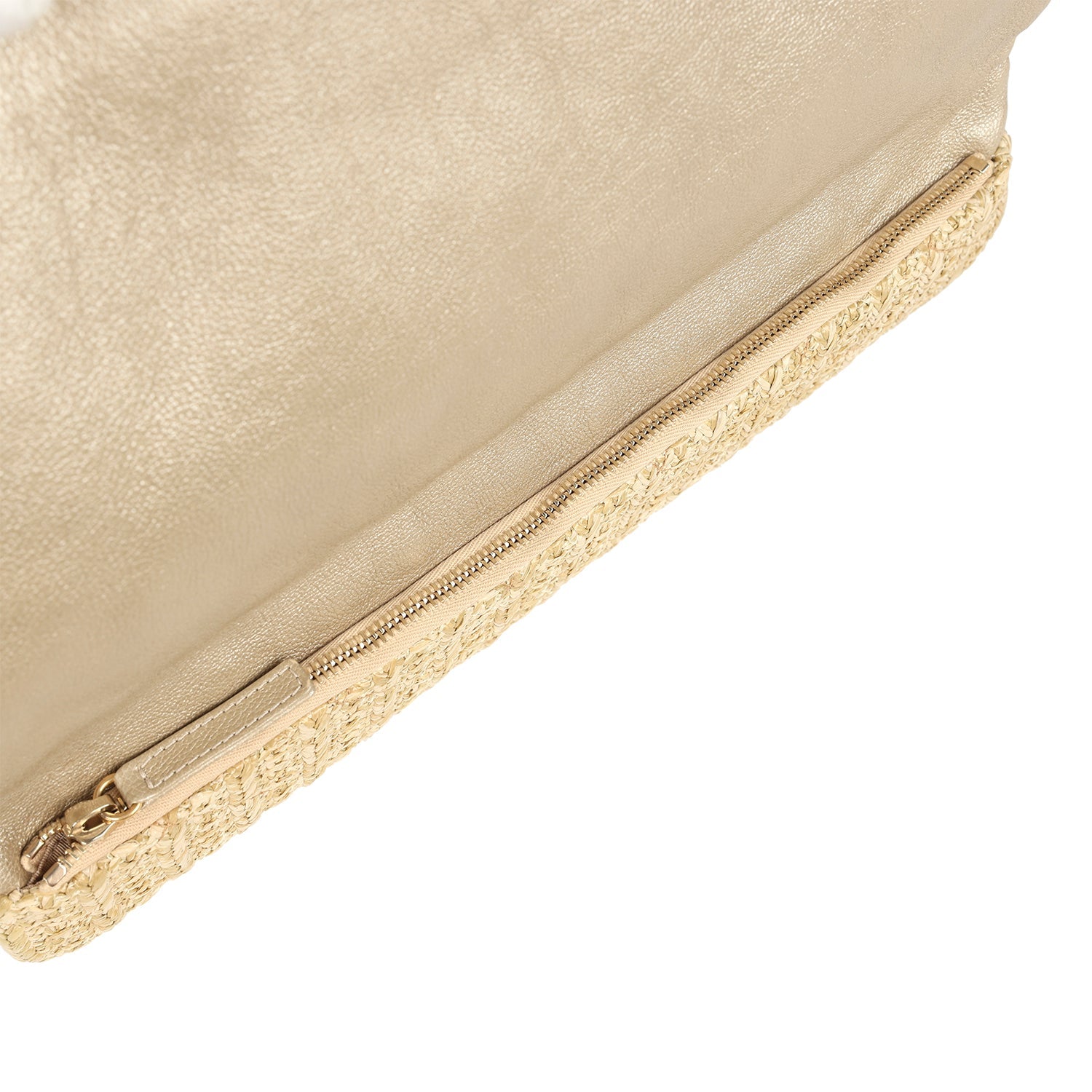 Chanel CC Woven Clutch Gold Natural Raffia Antique Gold Hardware
