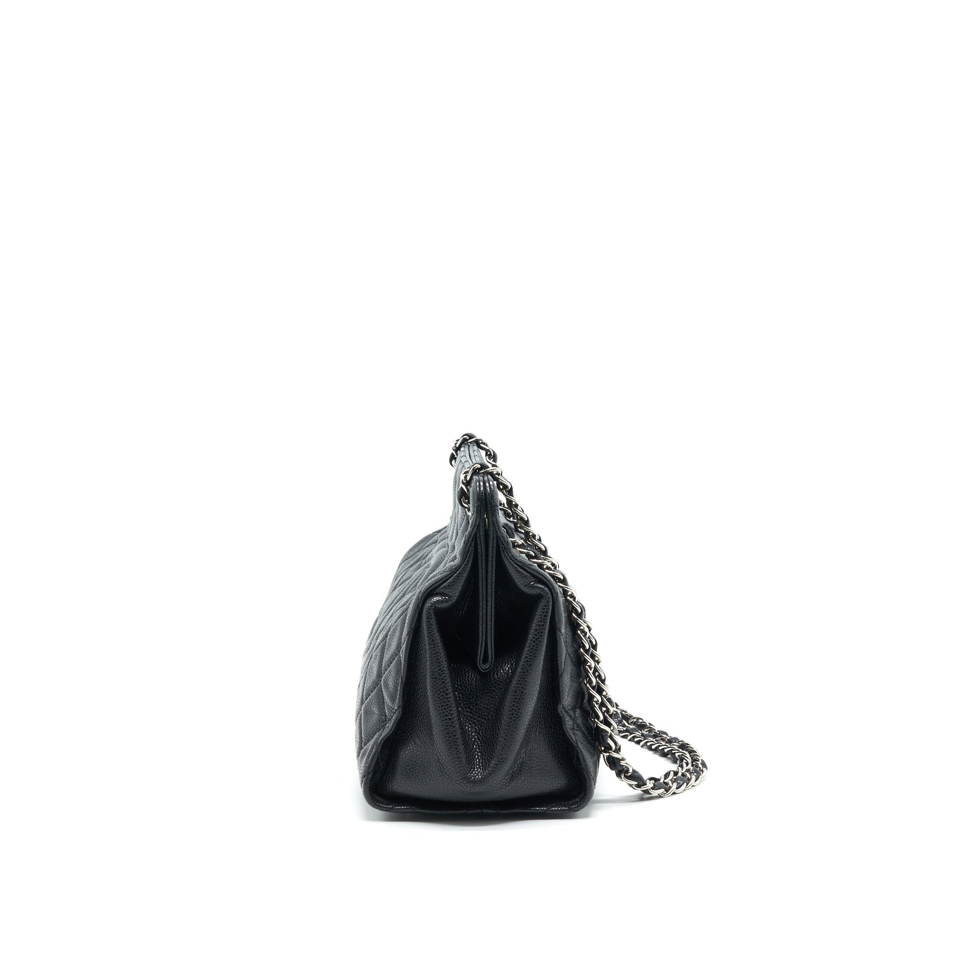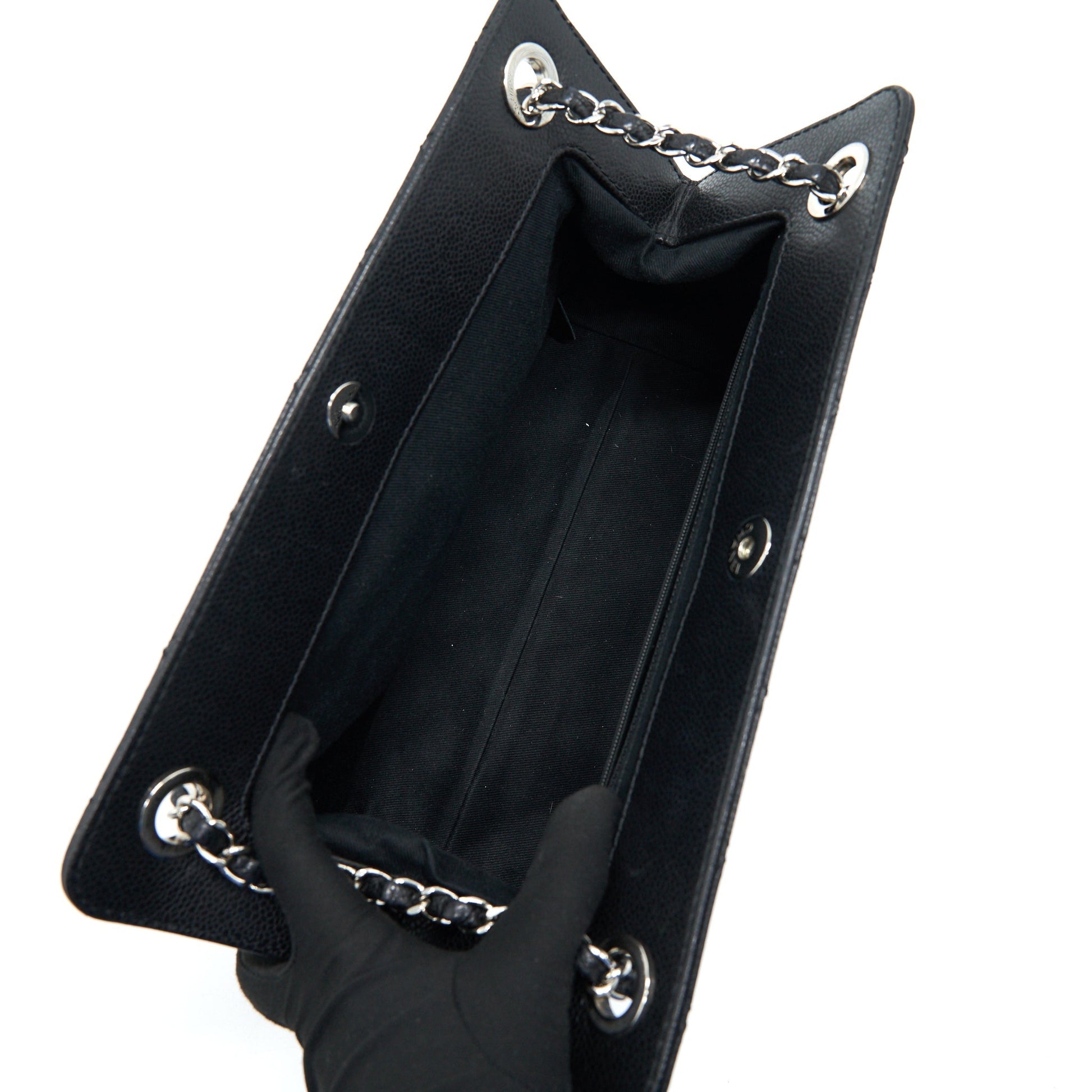 CHANEL QUILTED LEATHER TOTE BAG WITH CHAIN IN CARVIAR BLACK SHW