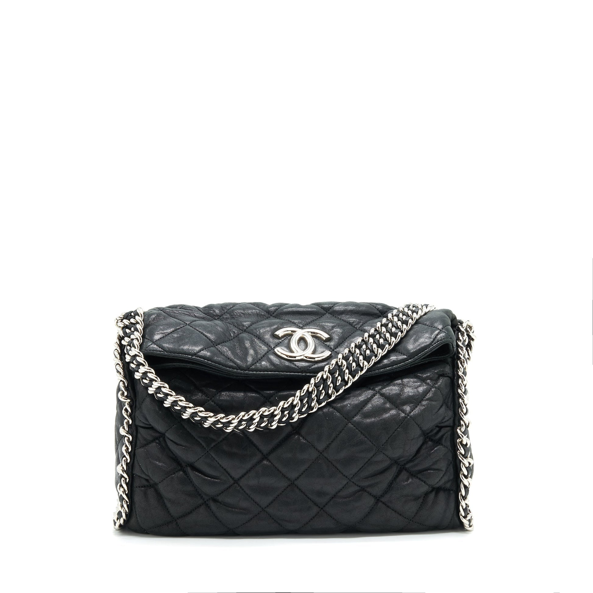 Chanel quilted leather with Chain Shoulder Bag Black SHW