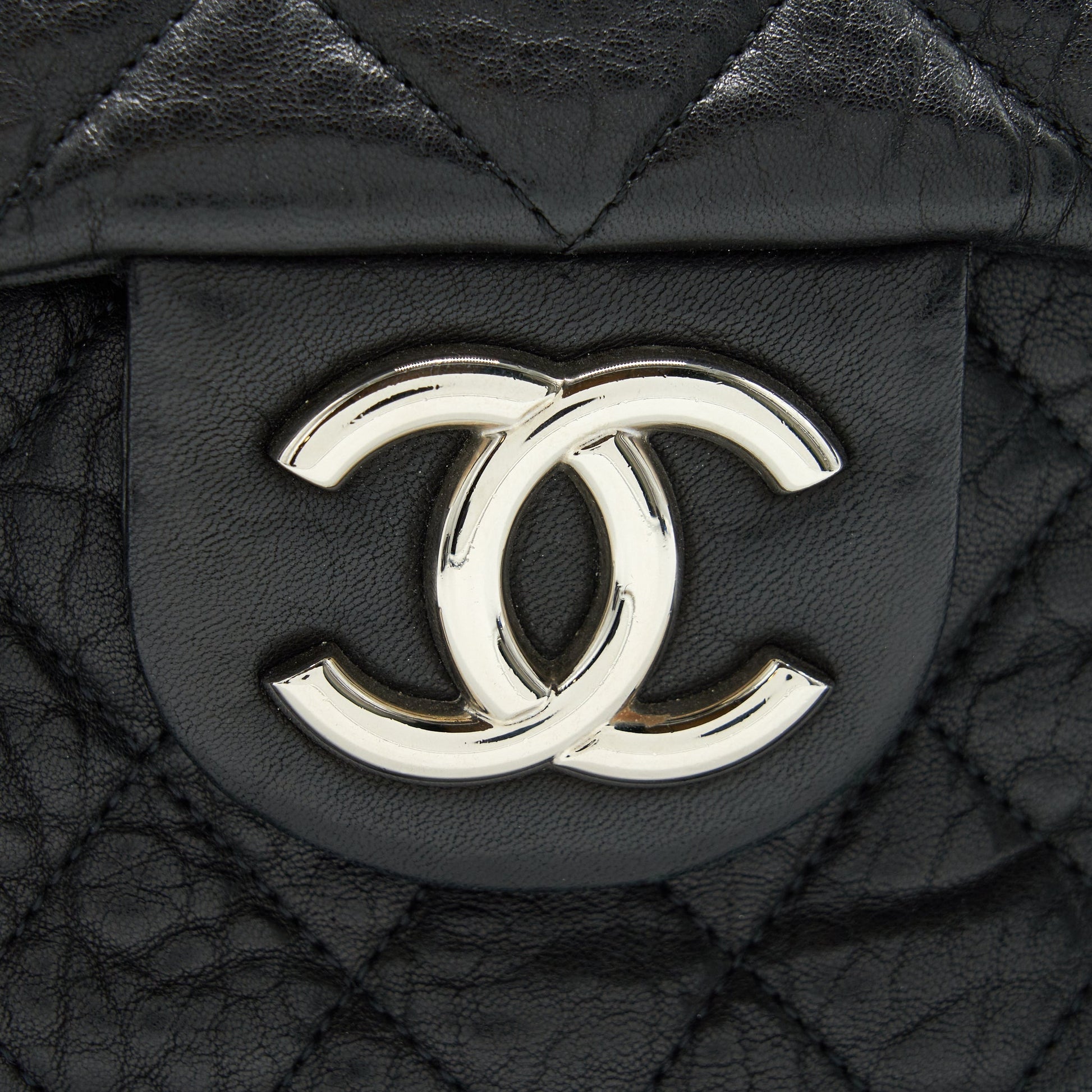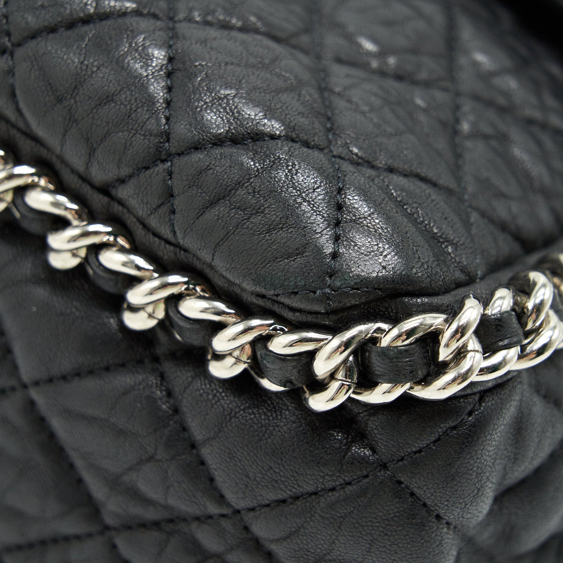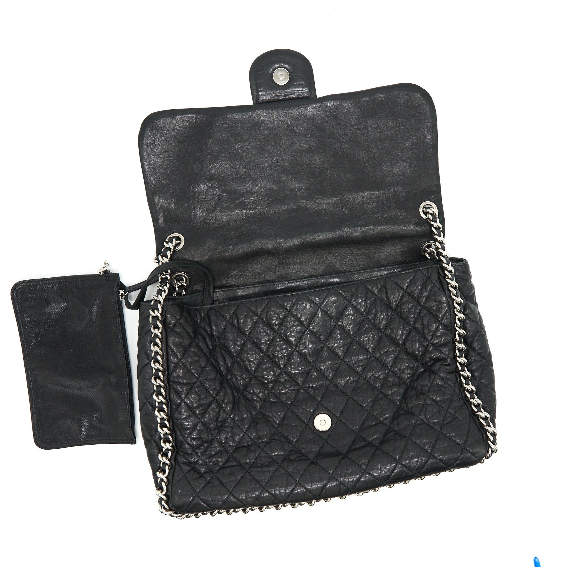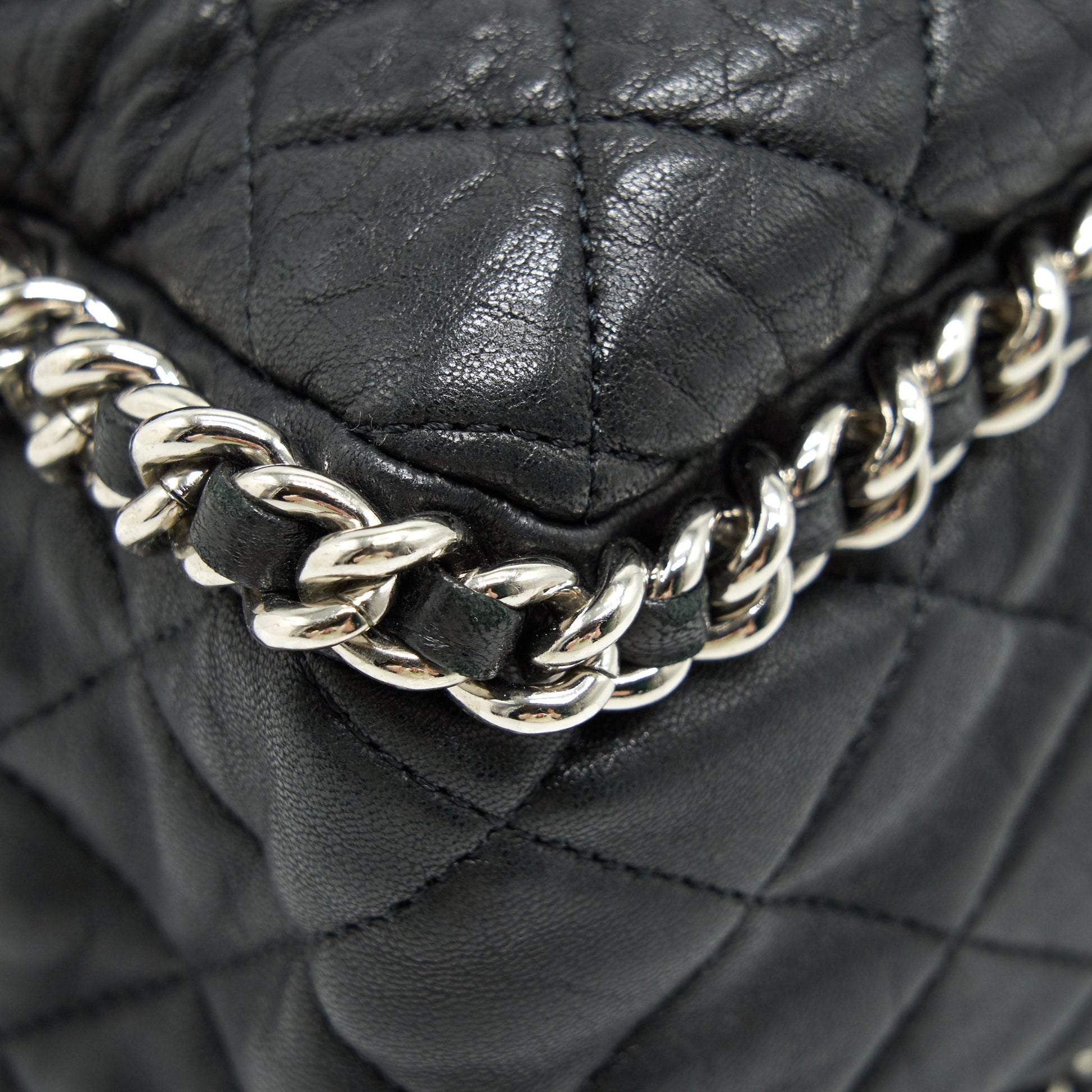 Chanel Quilted Leather With Chain Shoulder Bag XL Black SHW
