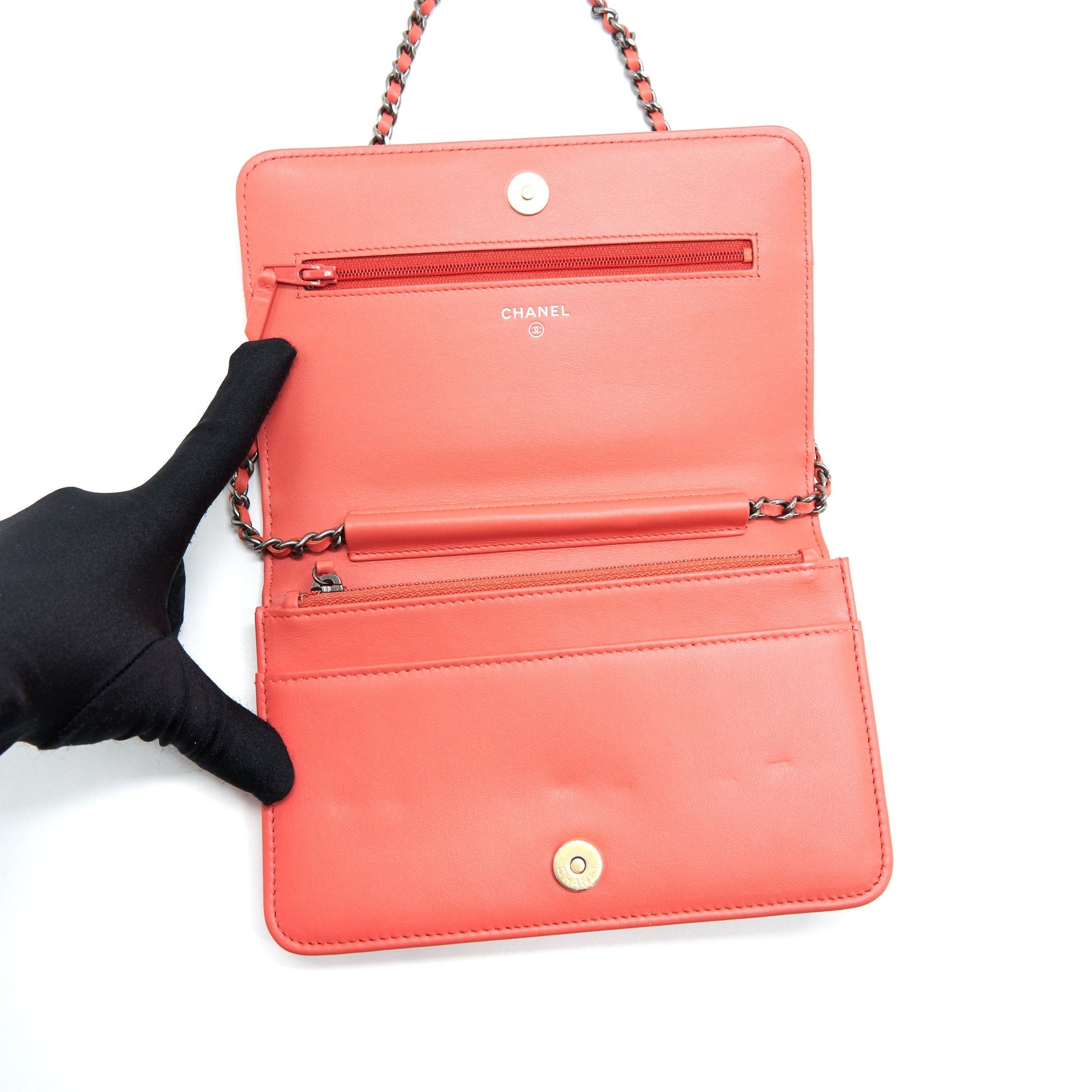Chanel Wallet On Chain Coral Pink Double Colour Hardware