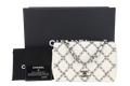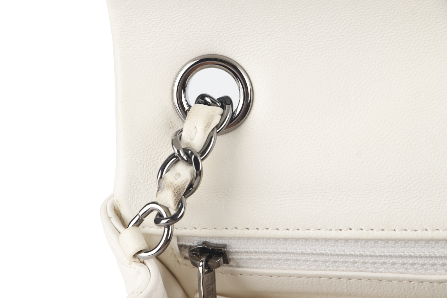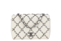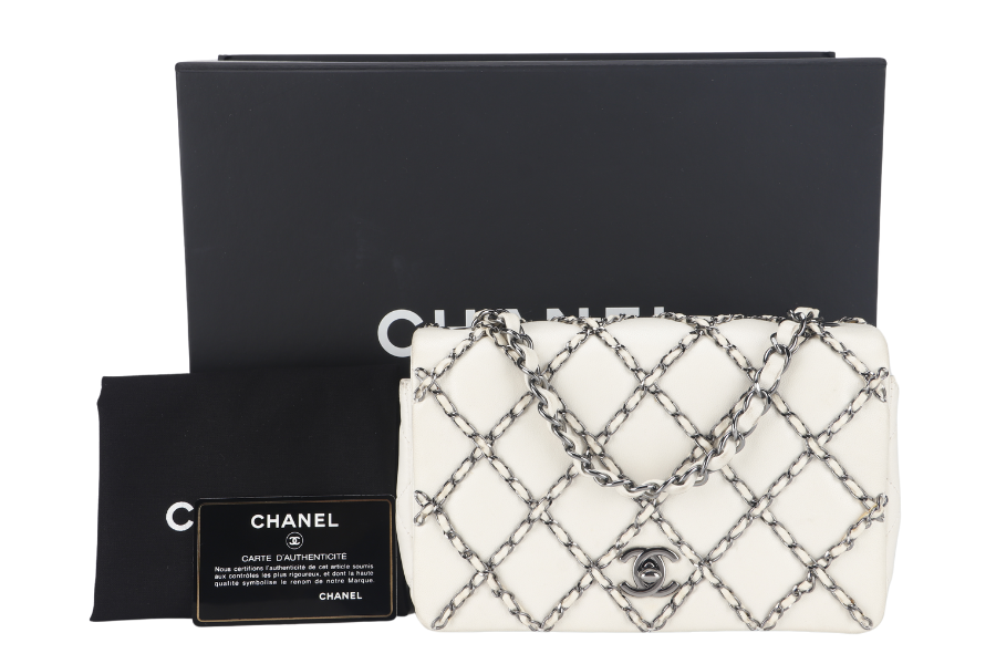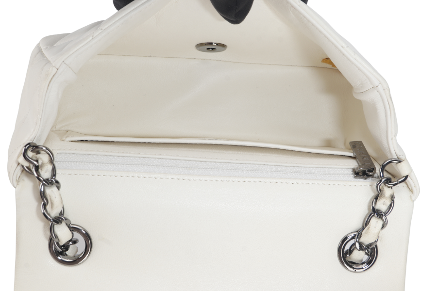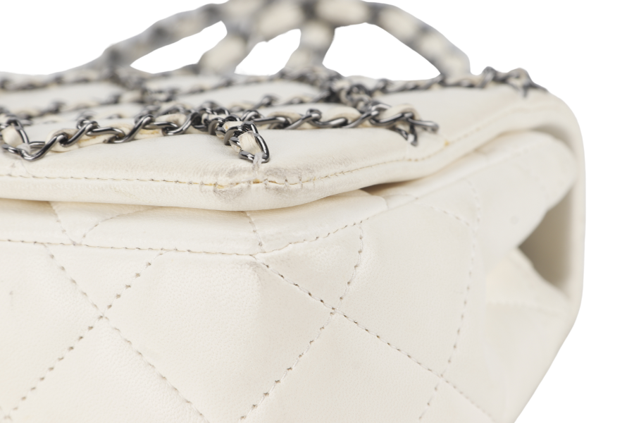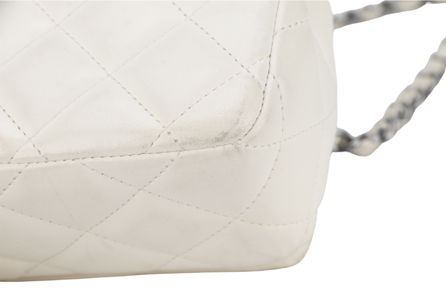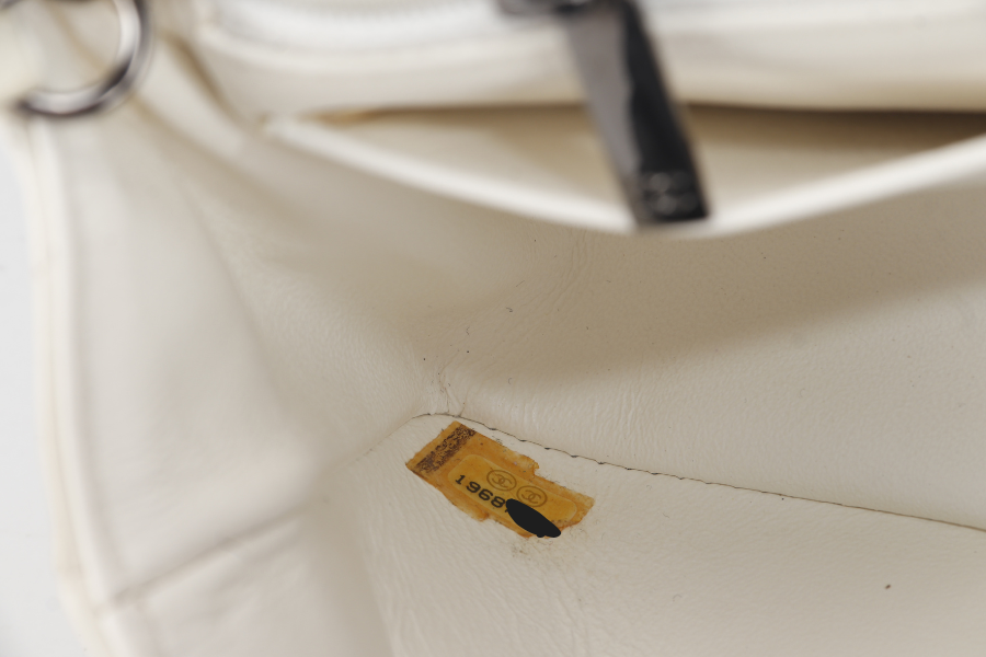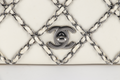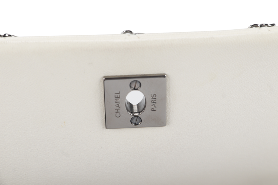 CHANEL QUILTING ENCHAINED FLAP BAG (1968xxxx) WHITE LAMBSKIN LEATHER SILVER HARDWARE WITH , DUST COVER AND BOX