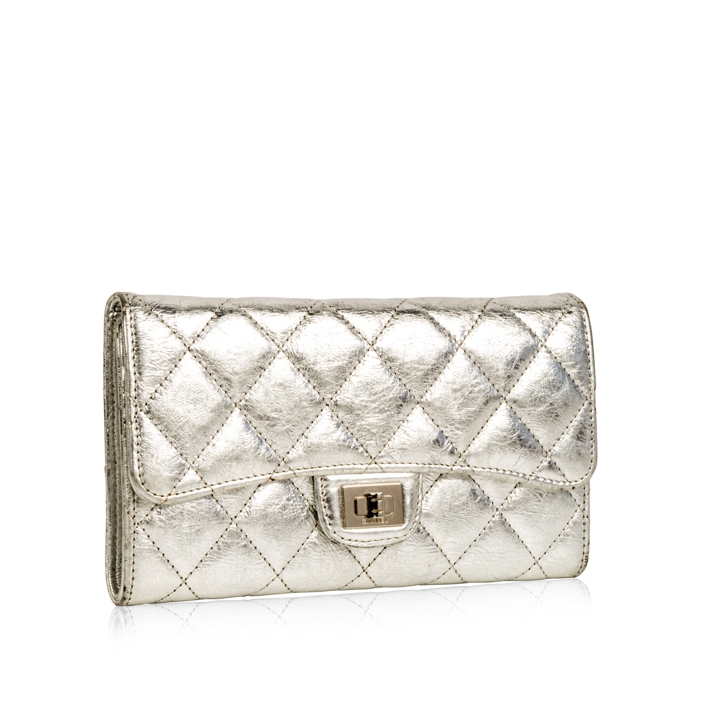 An absolute must-have for any woman with a love for luxury and a soft spot for Chanel, this stunning 2.55 Bi-fold wallet is the ideal accessory to compliment your handbag. Crafted from distressed metallic calfskin leather, this bi-fold wallet is spacious enough to hold all your cards, bills, change and those little bits of rubbish that always end up living in your wallet. A timepiece that will never go out of style, this classic wallet is a well-worthy addition to any luxury accessories collection.