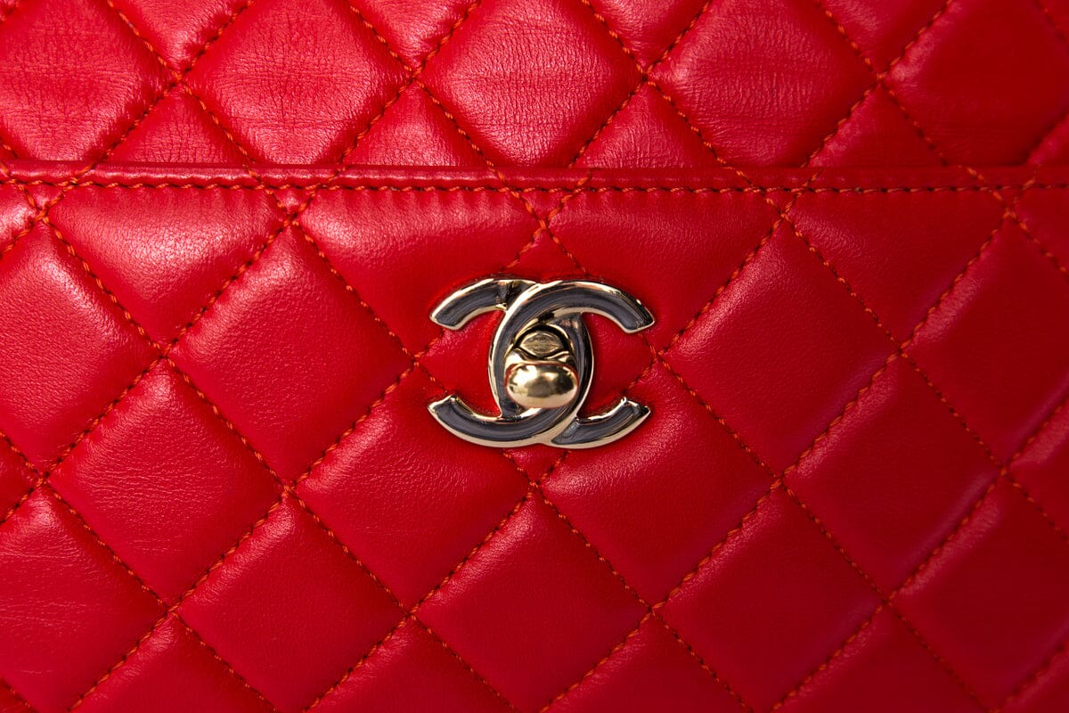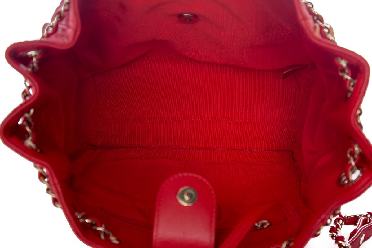 Chanel Red Quilted Drawstring Lambskin GHW Handbag comes with dust bag. This item is in very good condition.
