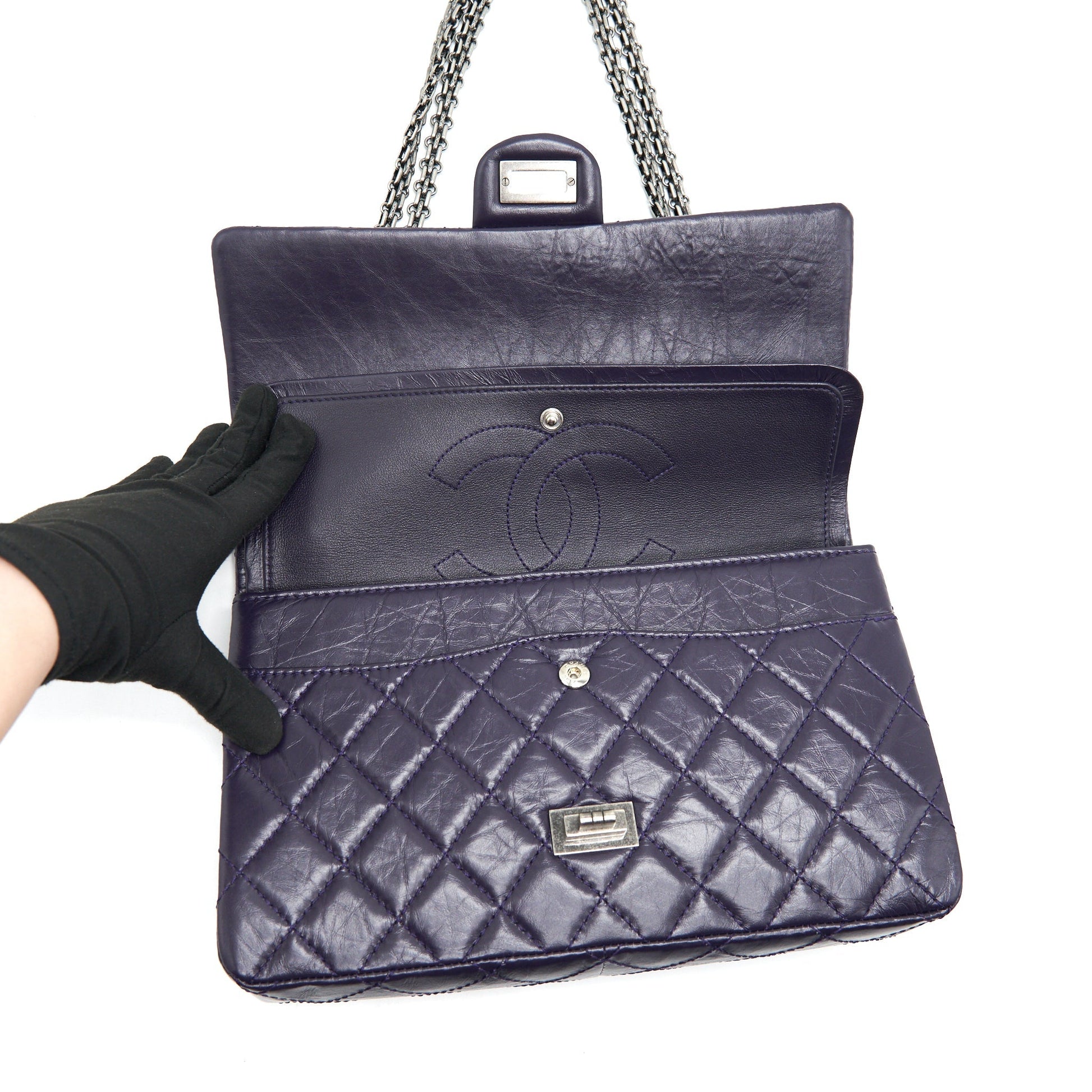 Chanel Reissue 226 in Dark Purple with silver ruthenium hardware