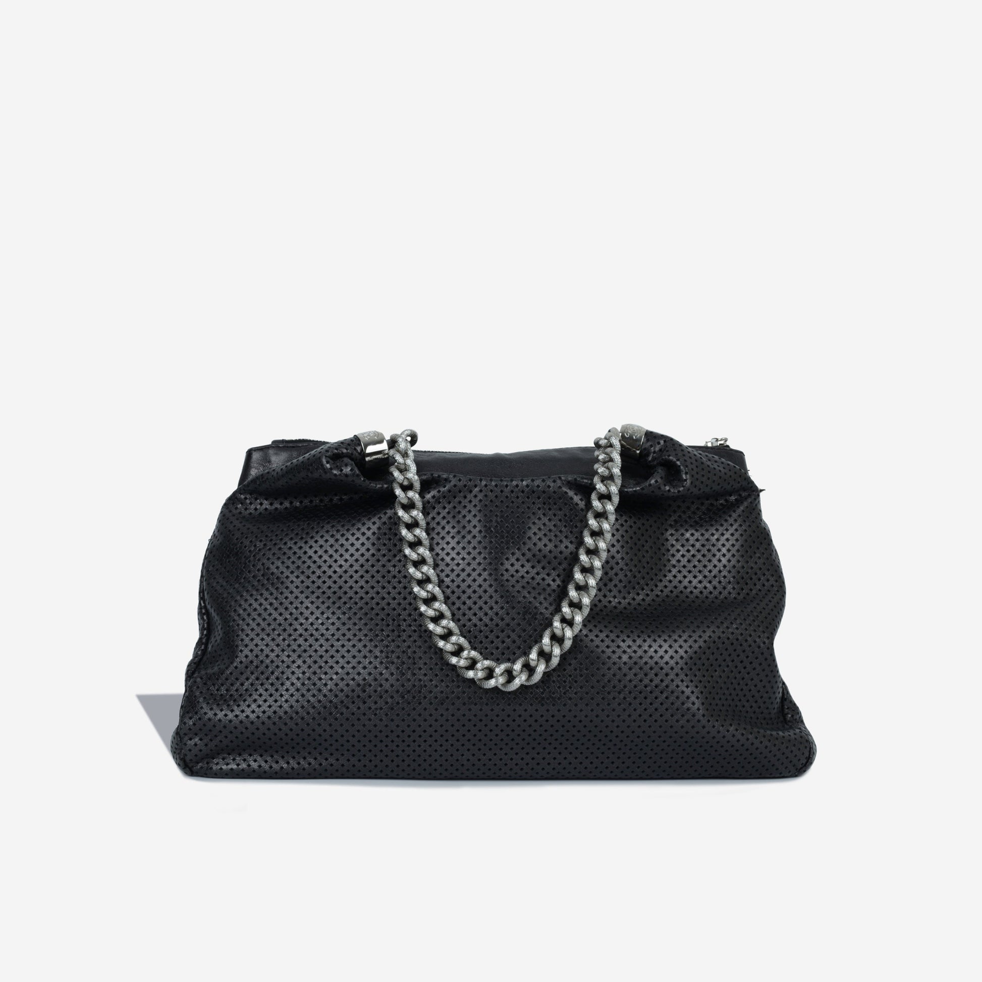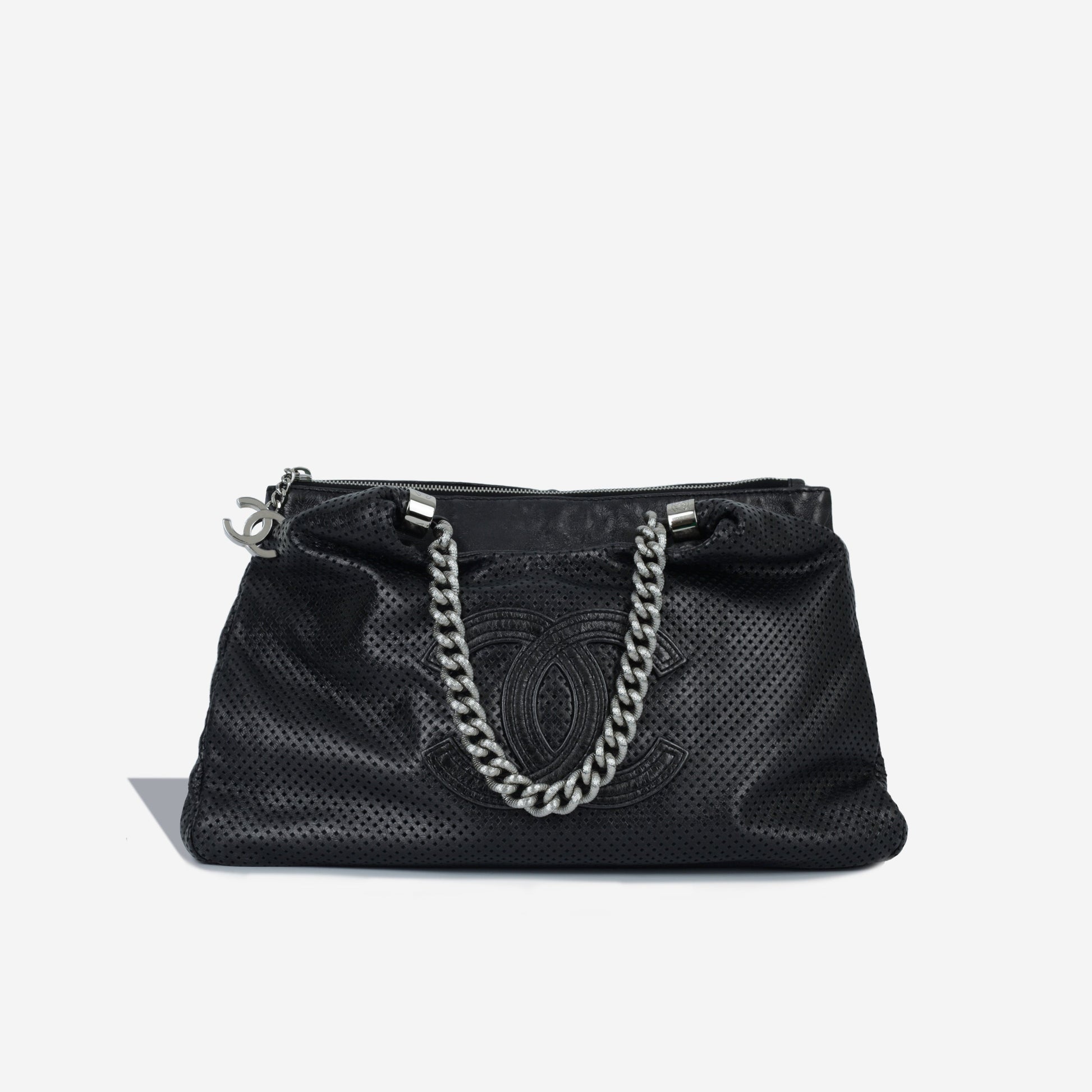 This Rodeo Drive Hobo tote is crafted from shimmery perforated leather and embellished with silver hardware. The front is adorned with a stitched CC logo and finished with a CC charm central zipper. The thick chain handles can be carried or worn over the shoulder.