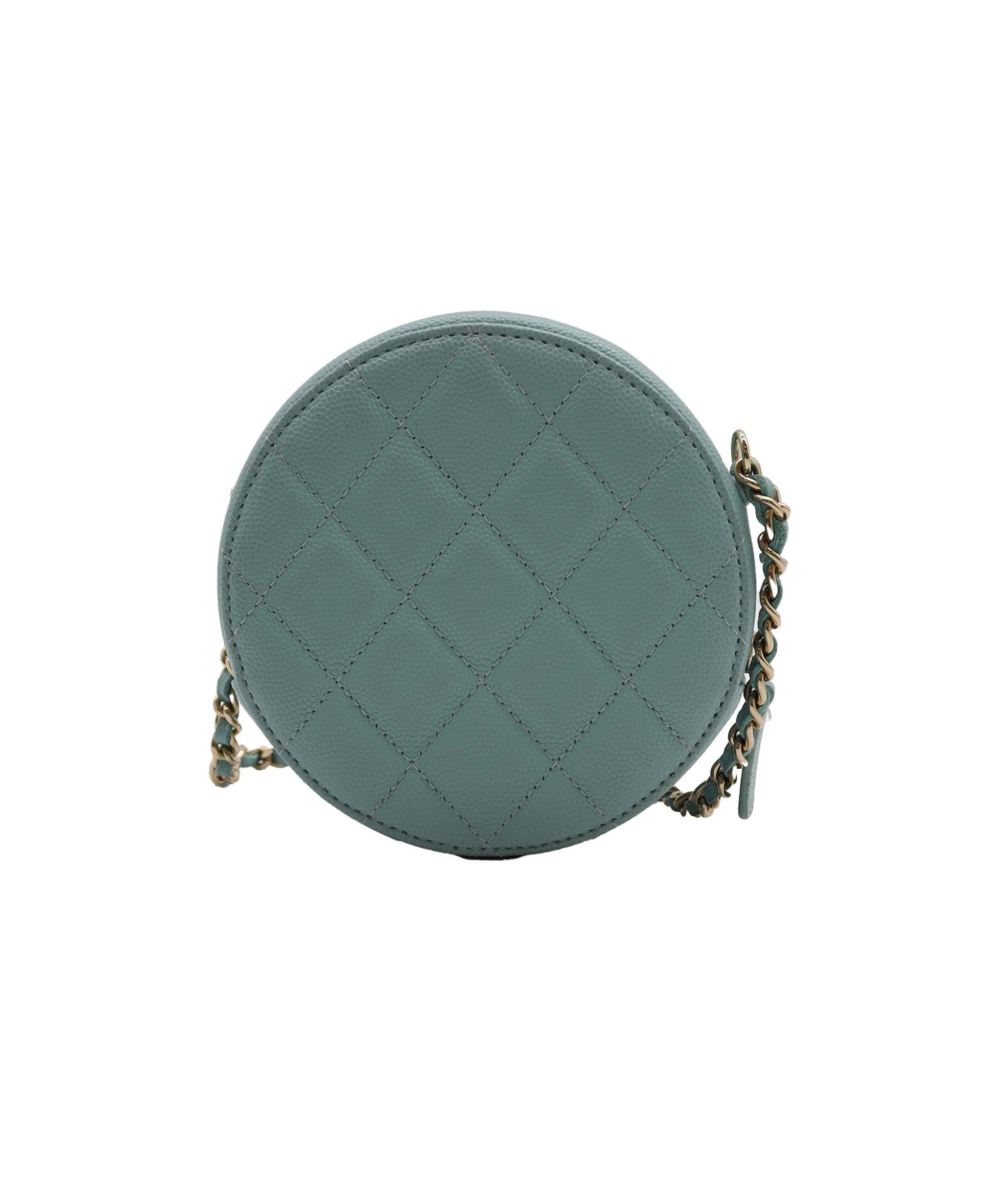 Shop this beautiful Chanel caviar Round light blue mini Bag at Luxury Promise today!