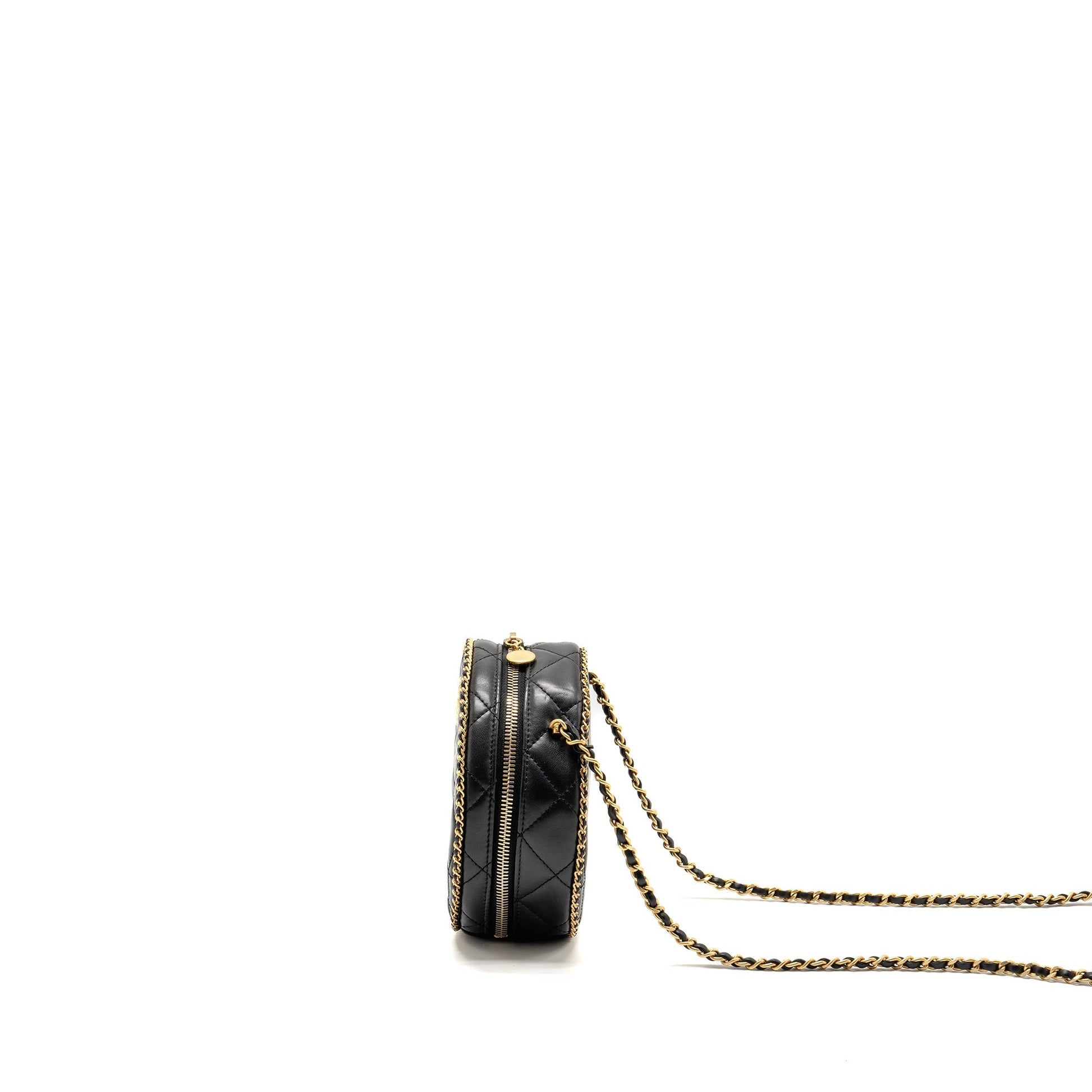 CHANEL Round Vanity With Chain Lambskin Black GHW (Microchip)