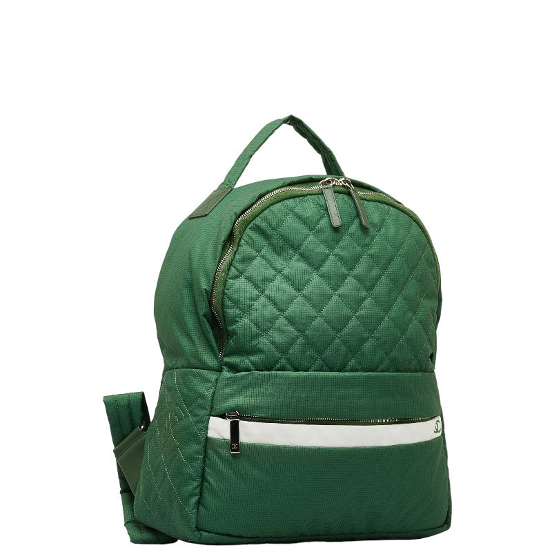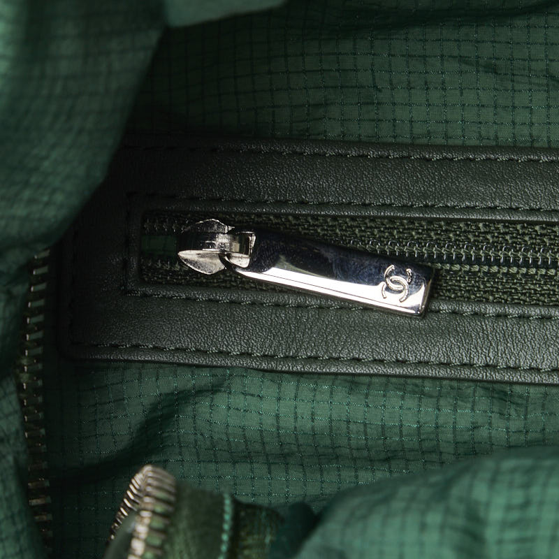 Chanel Rucksack Backpack Green Nylon Leather Chanel