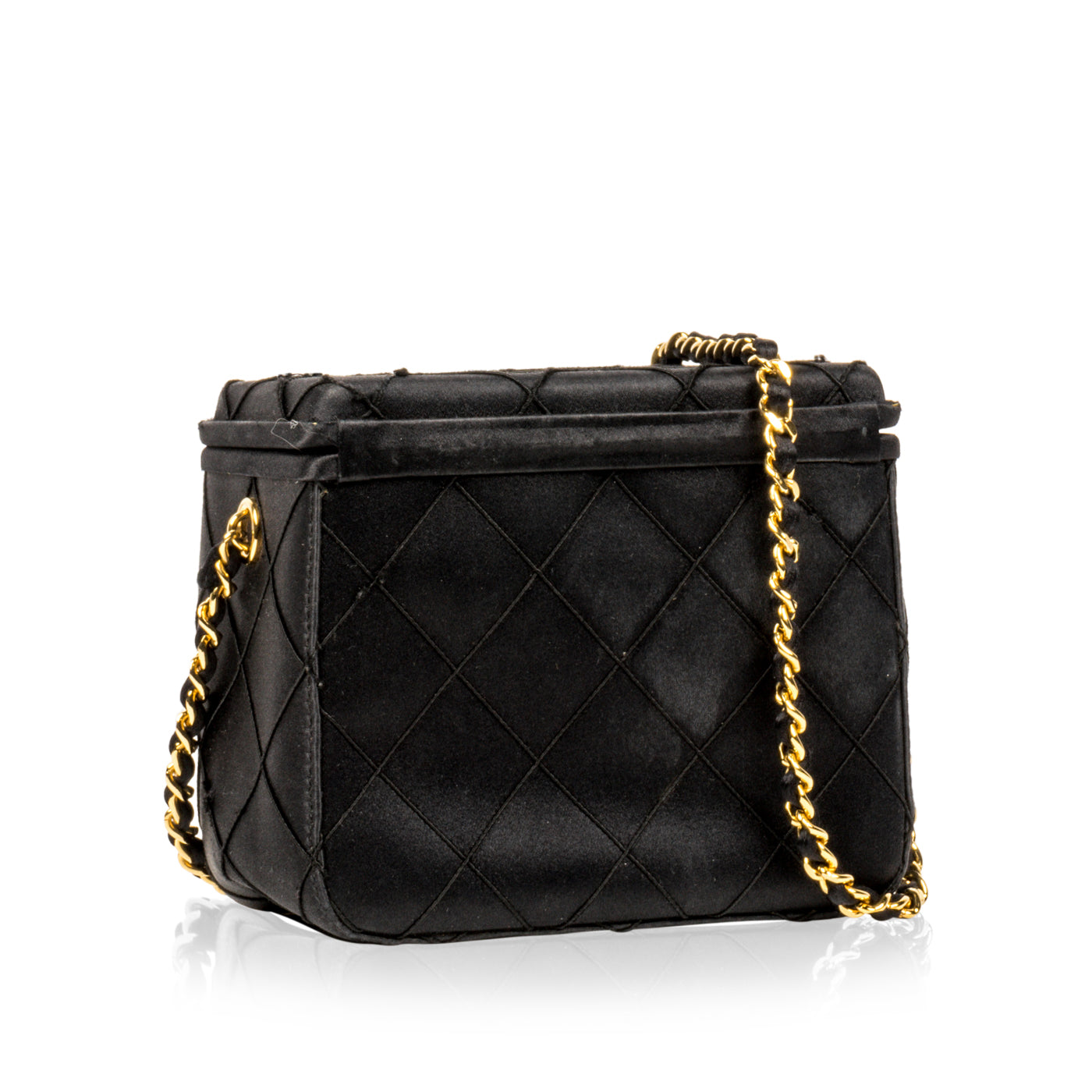 Carefully crafted in black satin and accentuated by gold-tone hardware, this stunning Chanel bag is the perfect accessory to accompany you to any formal occasion. Whether you pair this gorgeous little baby with a ballgown or a silk blouse and your favourite skirt, this vintage evening bag is the ideal accessory to compliment your look. A true must-have for any Chanel enthusiast with a love for vintage luxury, this satin mini bag is effortlessly chic, stylish and sophisticated. Discreet and understated, this bag exudes a true “if you know, you know” aesthetic. Your new best friend, this vintage bag is one you’ll never fall out of love with. A well-worthy addition to any luxury handbag collection, this little satin Chanel is simply a need.