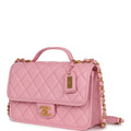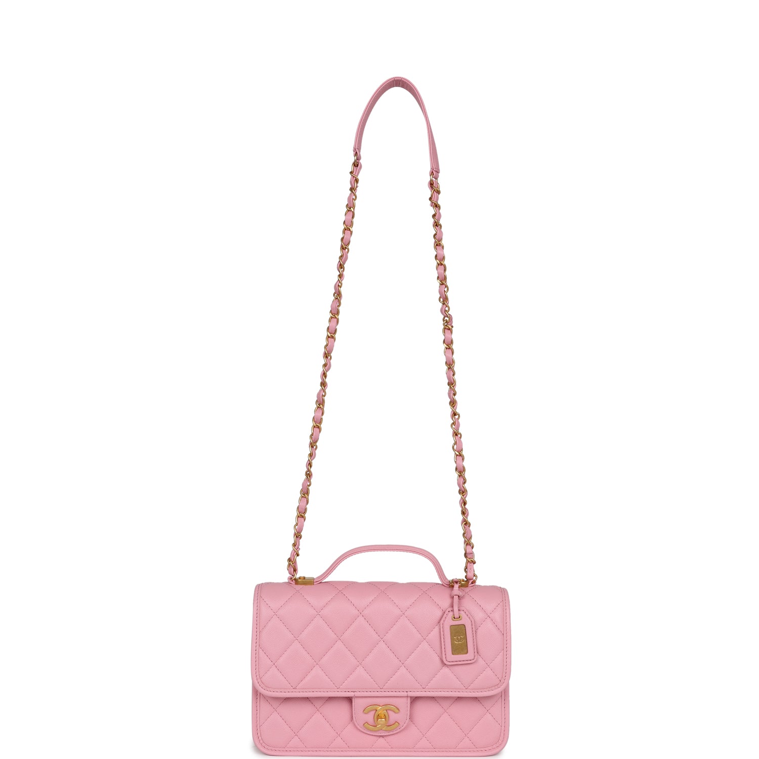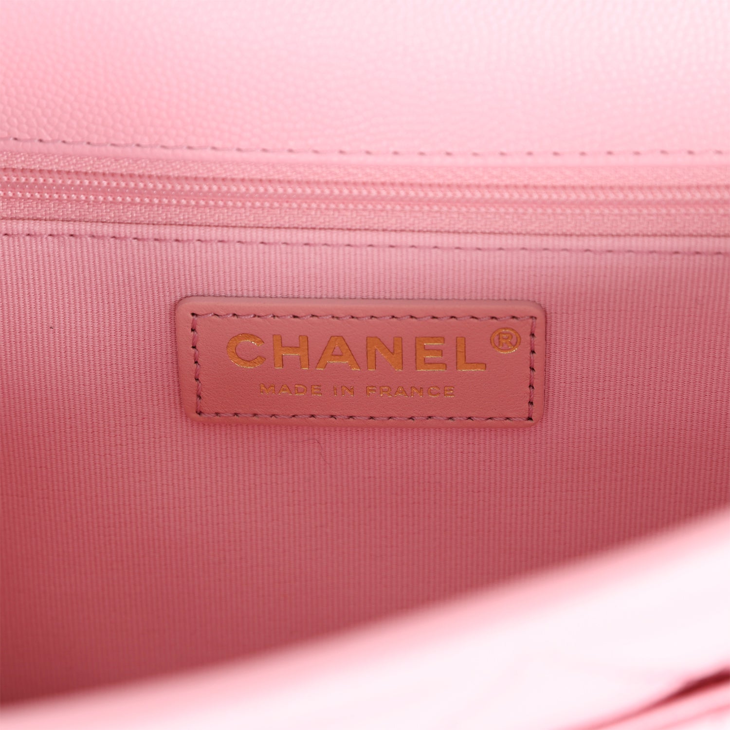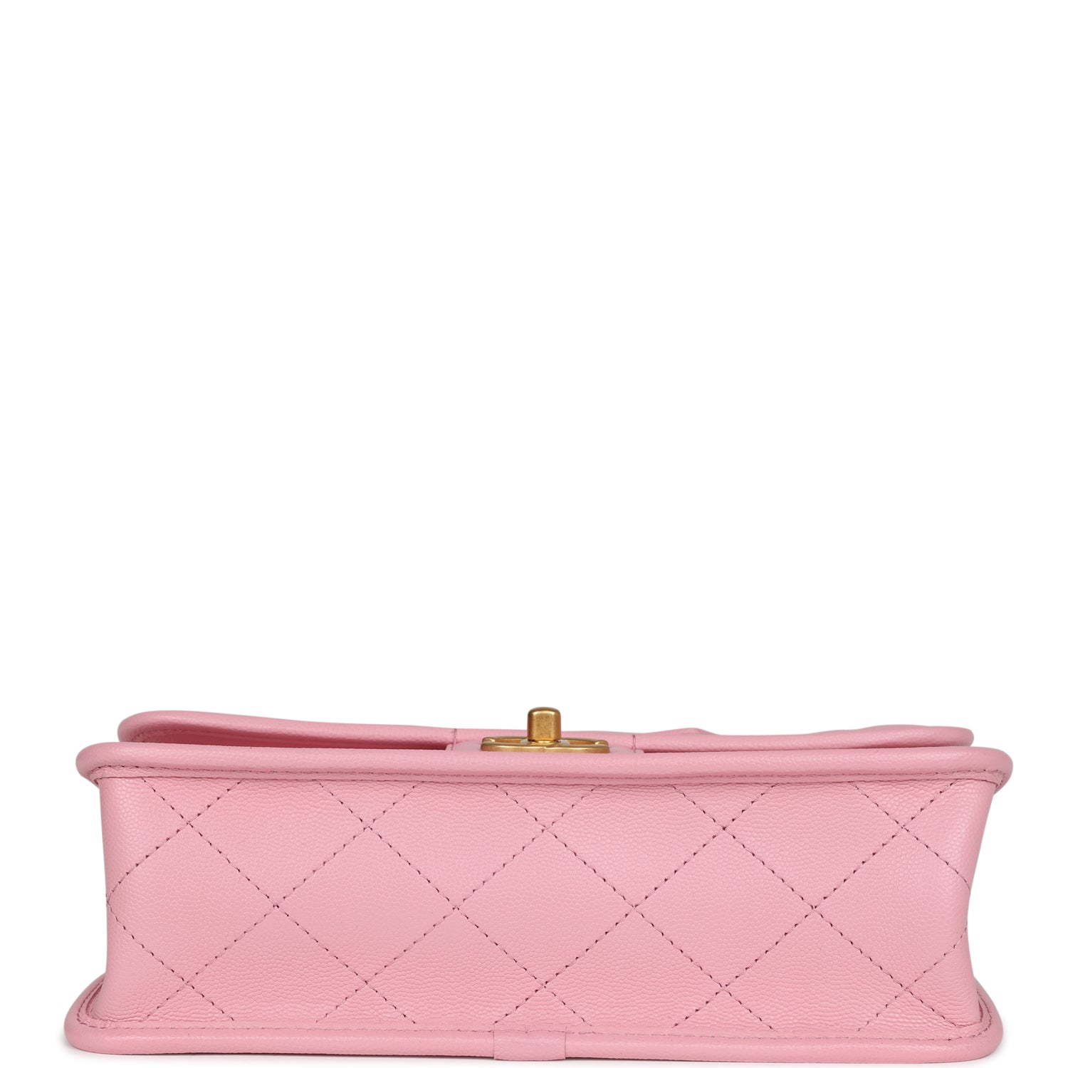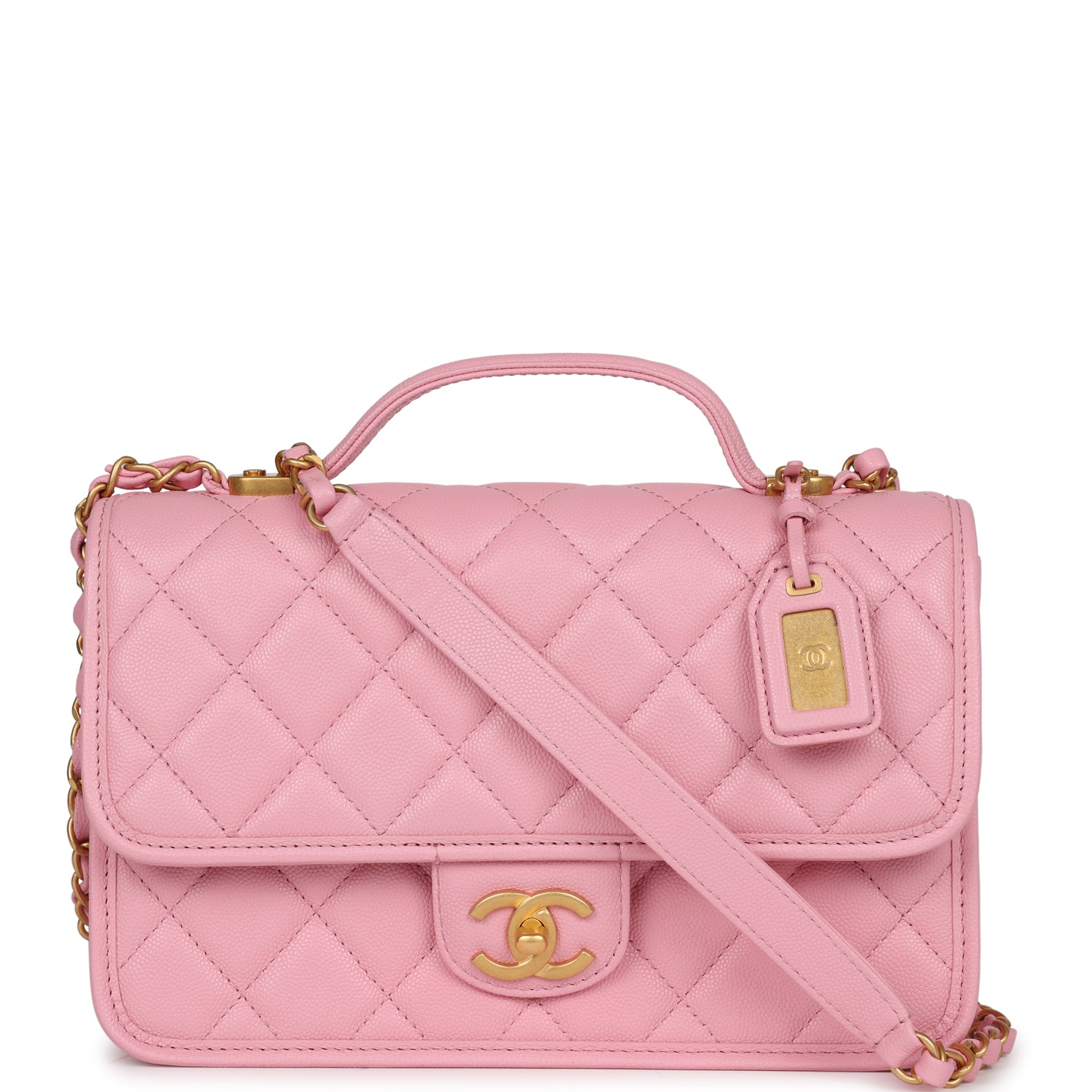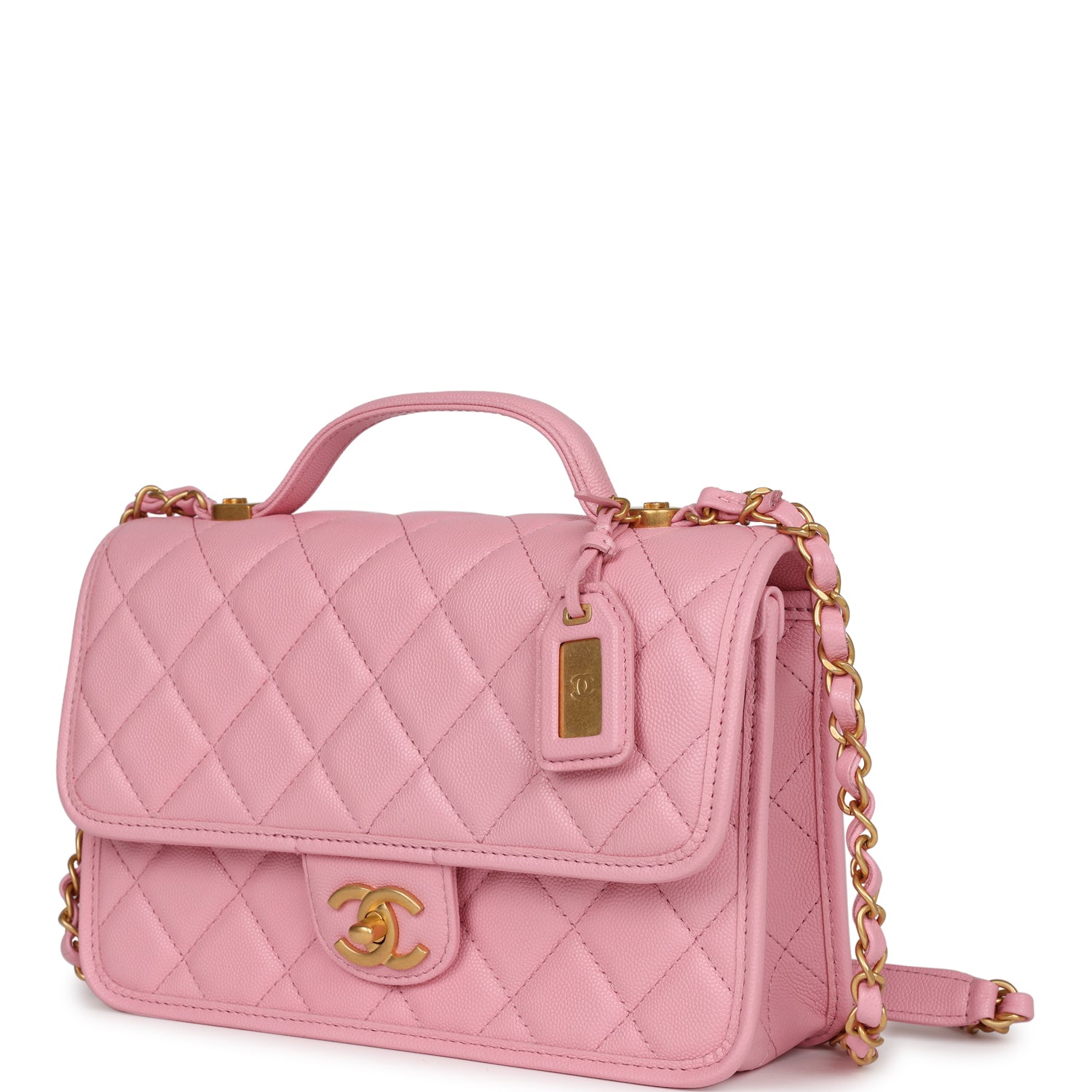 Chanel School Memory Top Handle Flap Bag Pink Caviar Antique Gold Hardware